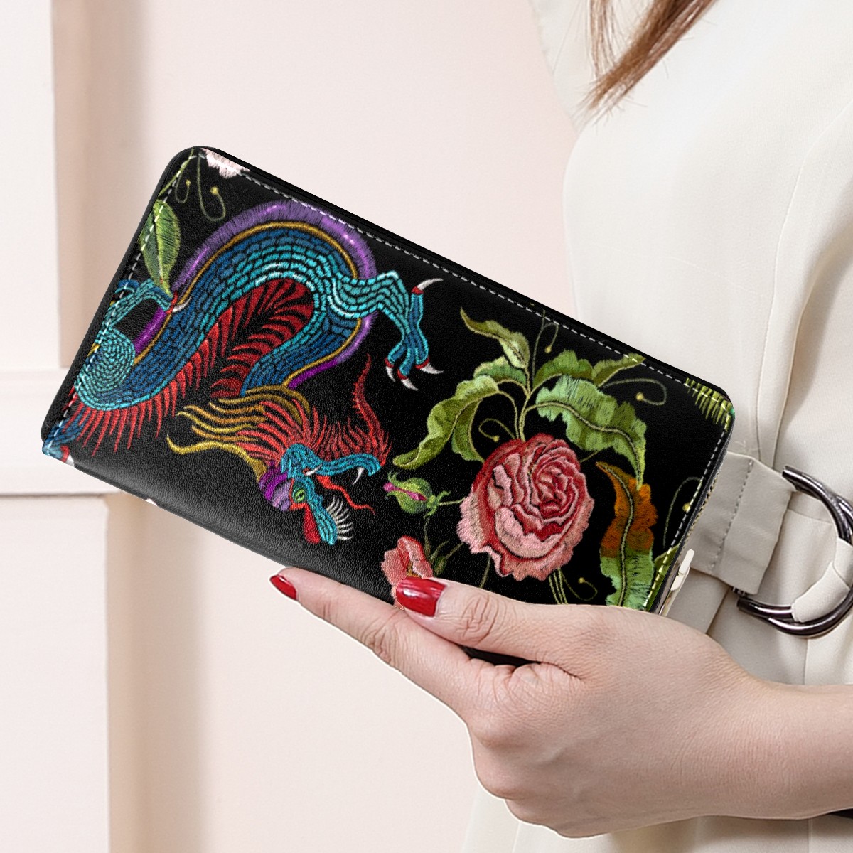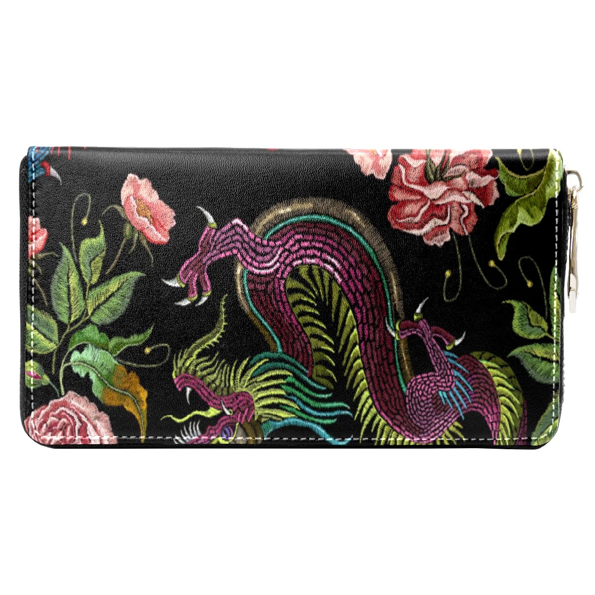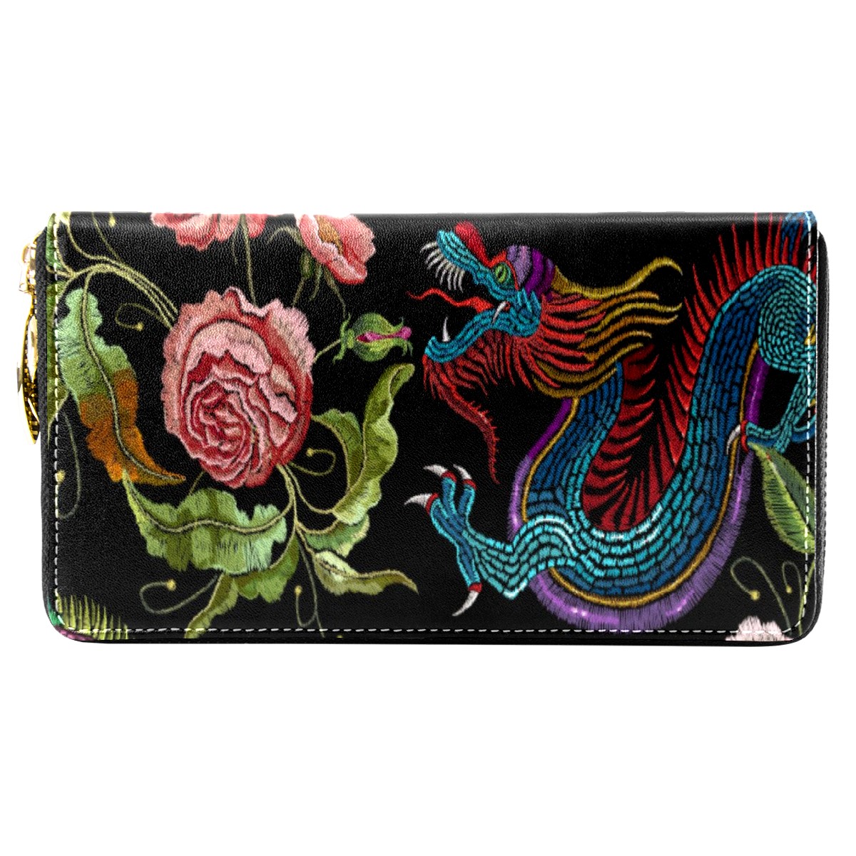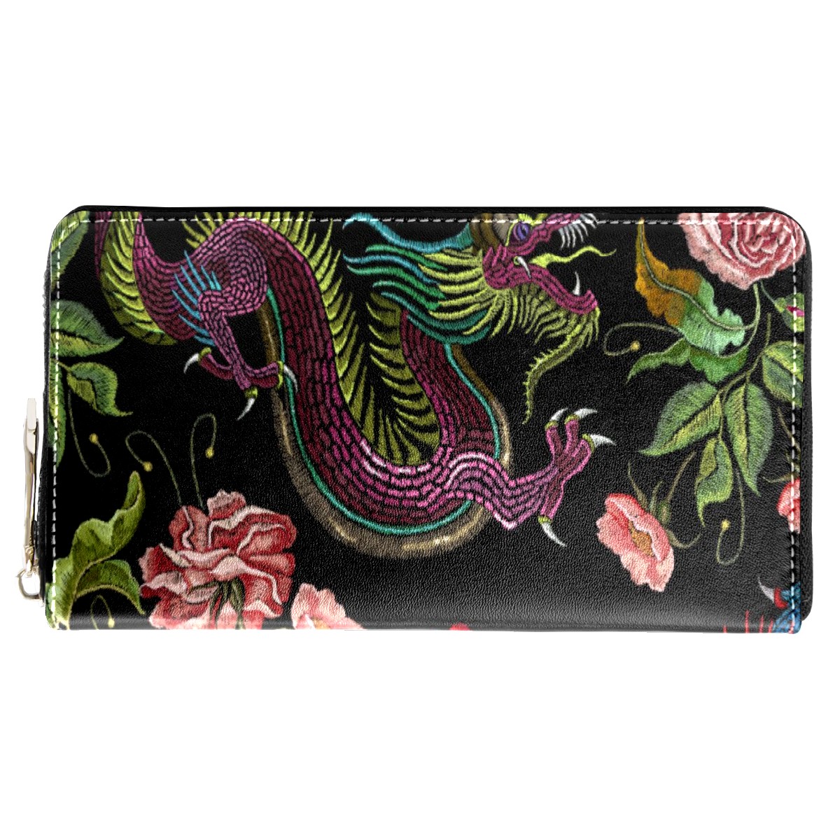 Women Wallet Traditional Chinese Dragon Long Zipper Ladies Cute Clutch Leather Wallets Card Holder Purse Hand Bag Organizer