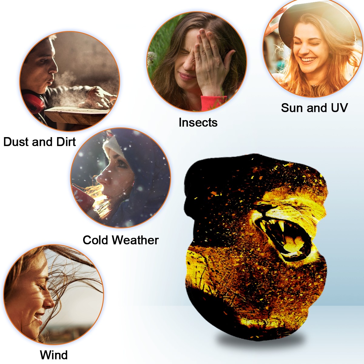 Neck Gaiter Golden Gilter Lion Animal Male Fierce Face Mask Balaclava Bandana Dust Face Protector Headband Scarf Headwear for Outdoor Activities Cycling Travel