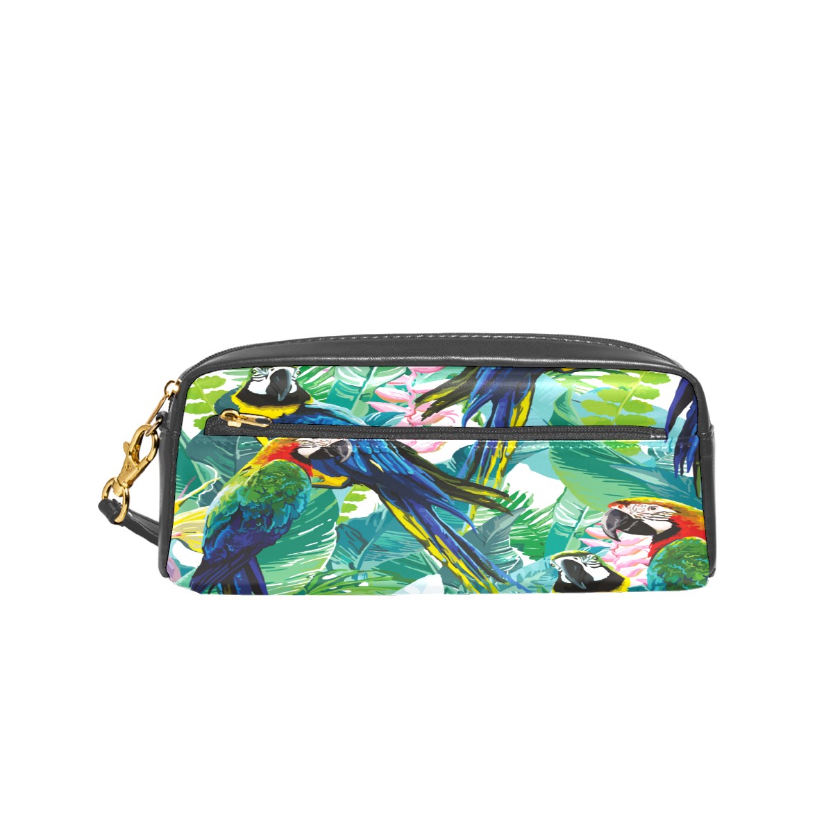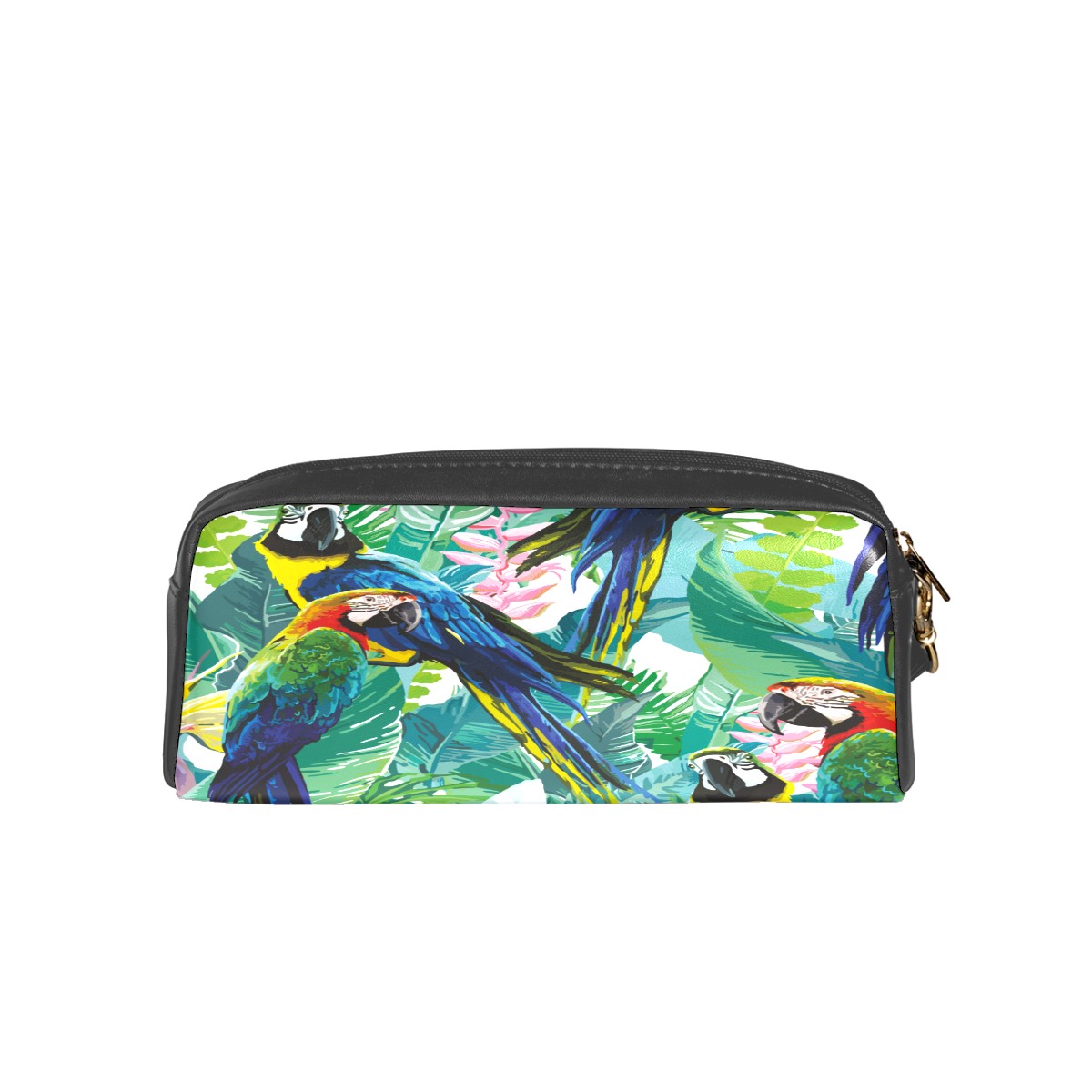 Four Respite Parrots Large Capacity Leather Pencil Case Aesthetic Pencil Pouch,Cute Portable Pencil Case with Zipper and a Easy Grip Handle & Loop for Boys Girls Students Adults