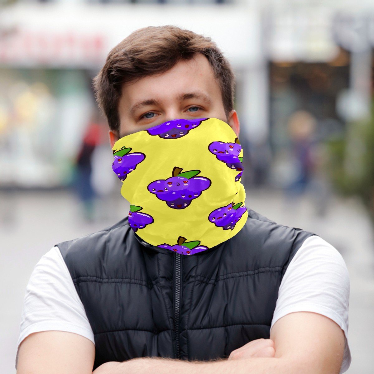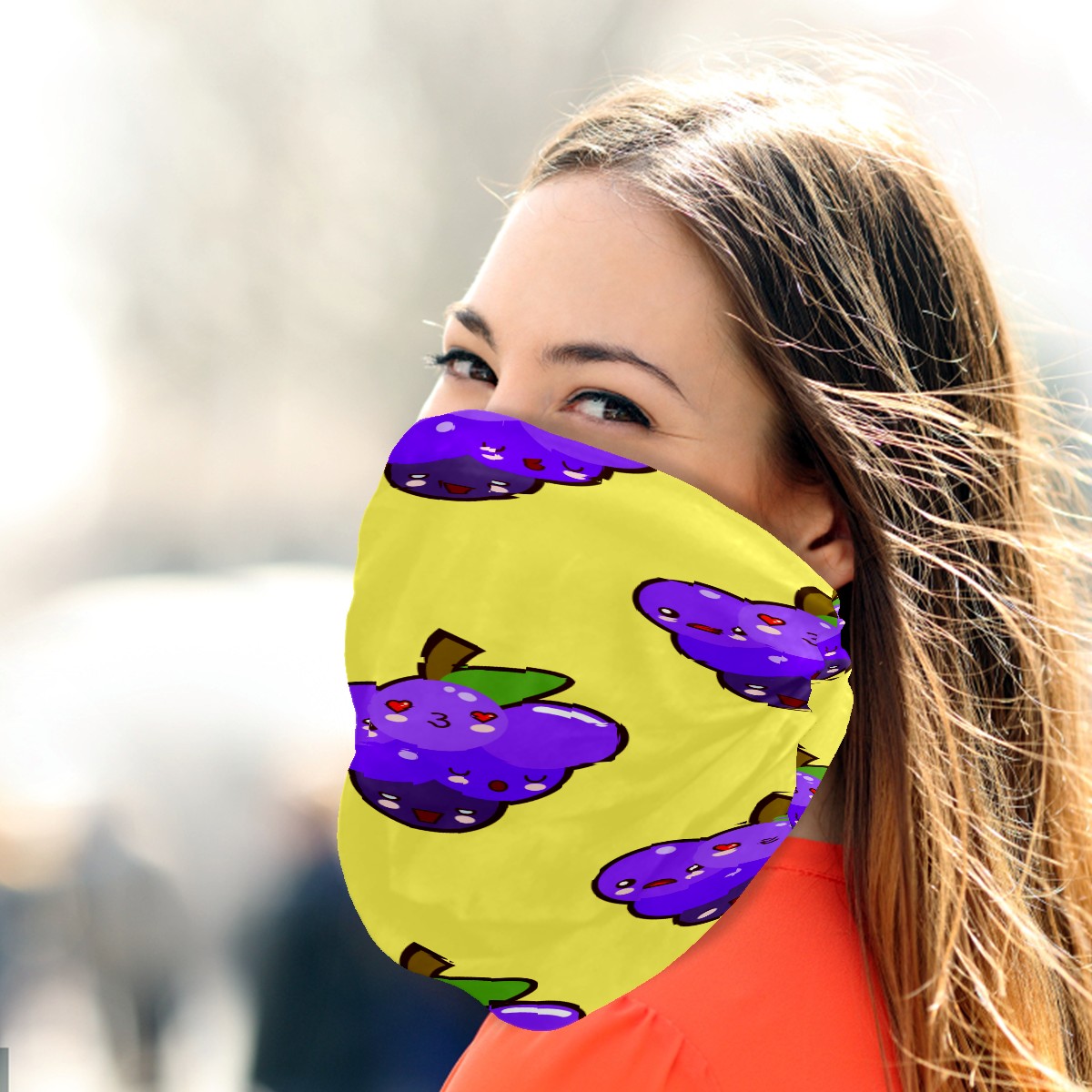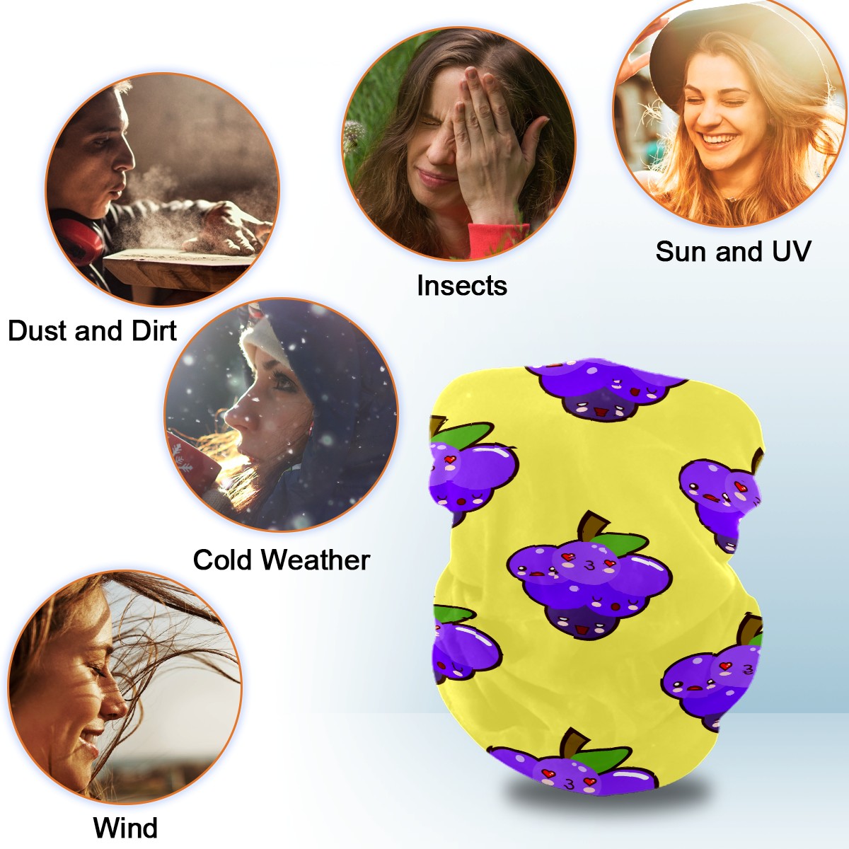 Neck Gaiter Purple Kissing Grapes Pattern Yellow Face Mask Balaclava Bandana Dust Face Protector Headband Scarf Headwear for Outdoor Activities Cycling Travel
