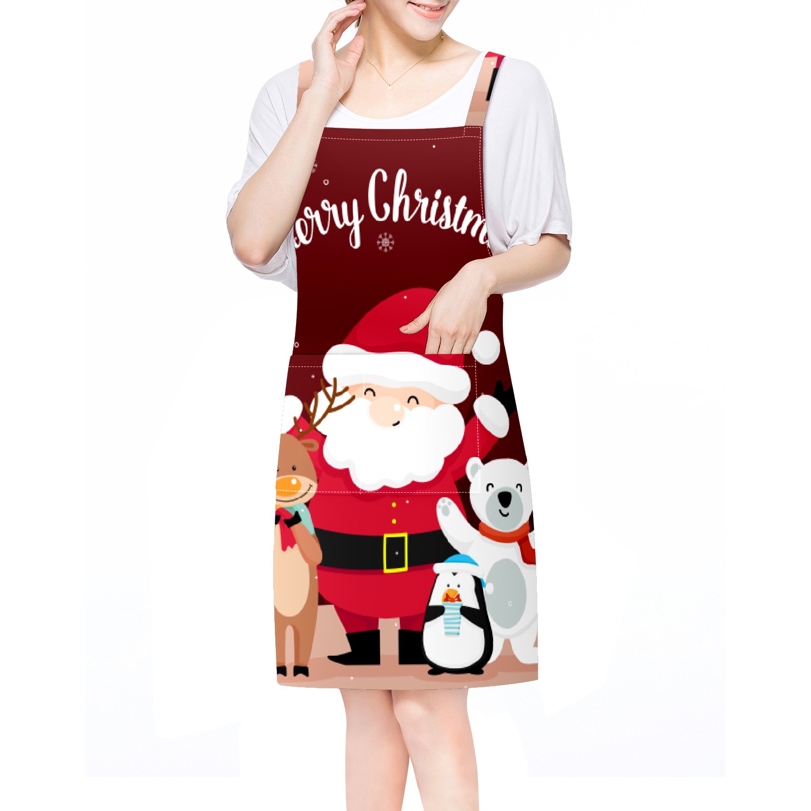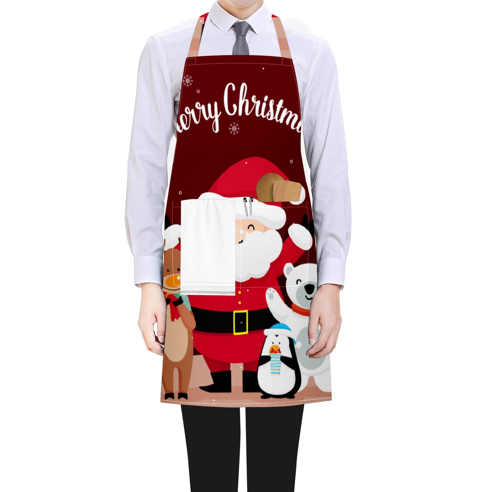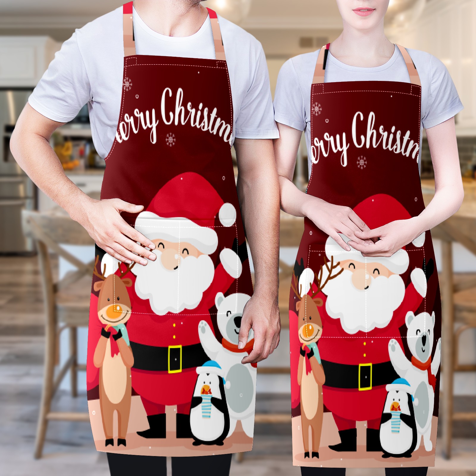 Introducing the perfect addition to your Christmas festivities - the Christmas apron! This festive apron features a fun and playful Christmas design with a variety of cartoon characters that will add some holiday cheer to your kitchen or party. Measuring at 32 x 27 inches, this apron is perfect for cooking, baking, hosting, or even working at a restaurant. The durable fabric makes it easy to clean and maintain, so you can use it year after year. Designed by Genhuyiz, this Christmas apron is perfect for decorating your home or for giving as a gift to your family and friends. Whether you are hosting a Christmas party or simply want to get into the holiday spirit while cooking in the kitchen, this apron is a must-have. Don't let cooking or hosting stress you out during the holiday season. Put on this festive and fun Christmas apron, and let it bring a smile to your face as you spread some holiday cheer. Get ready to impress your guests by adding this apron to your Christmas collection now!