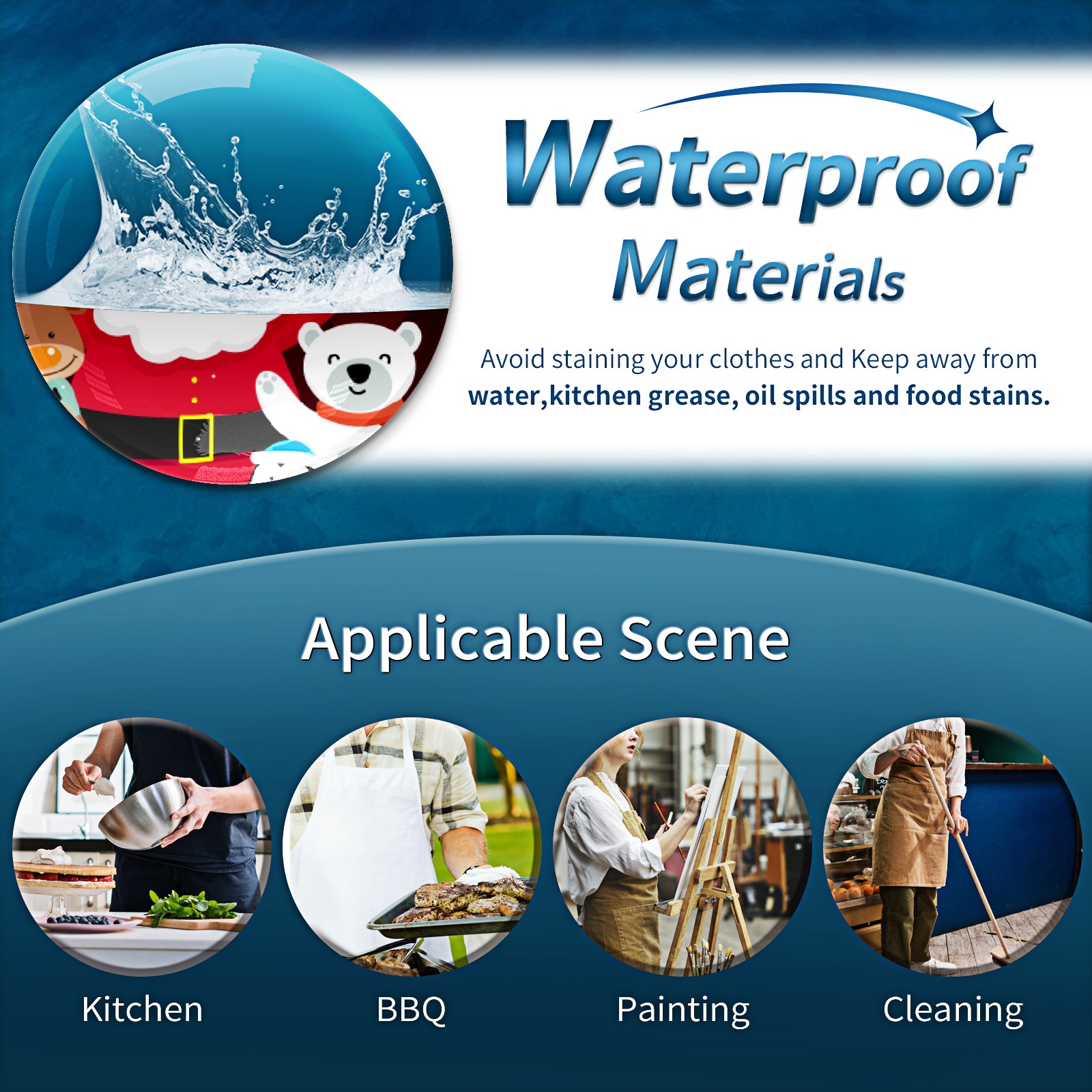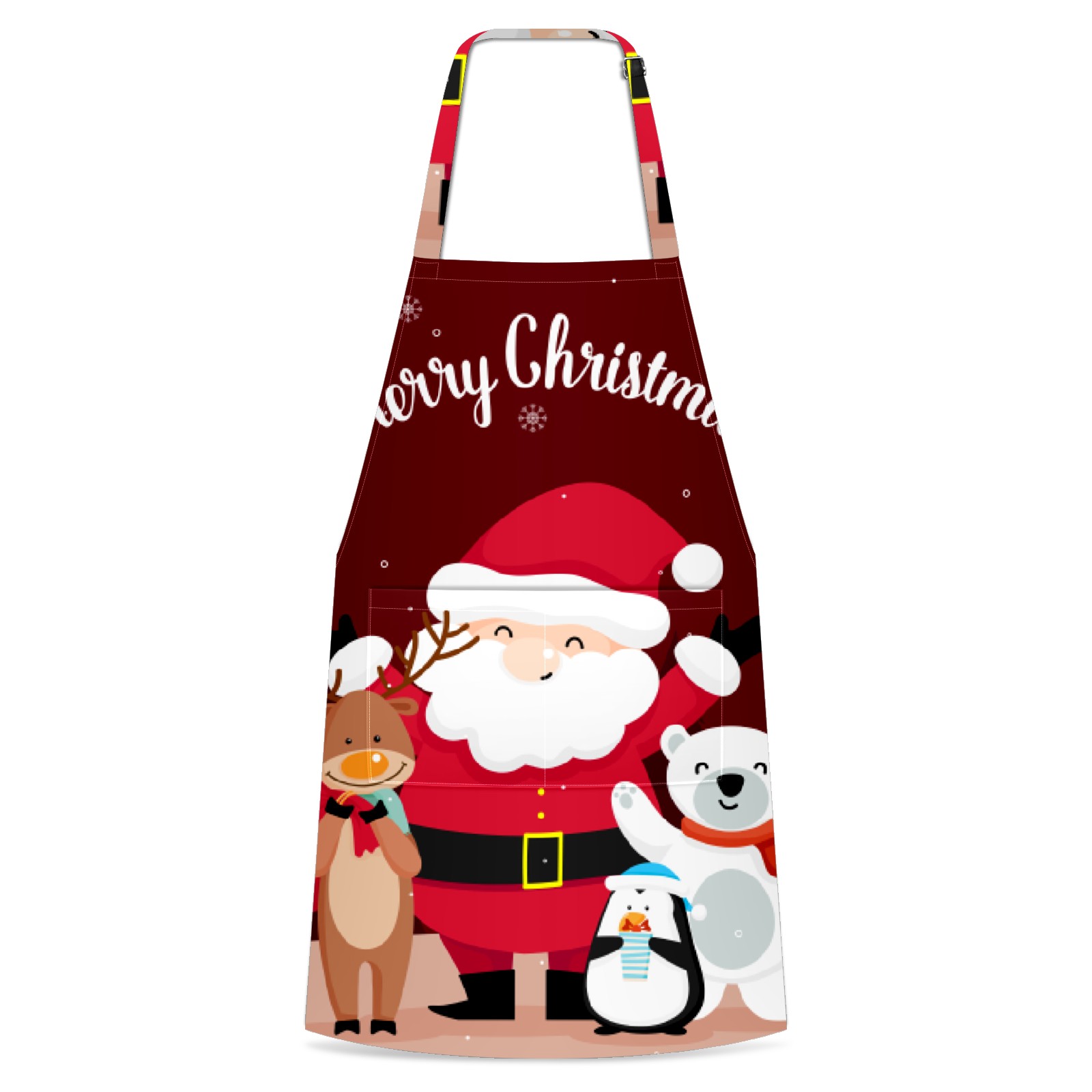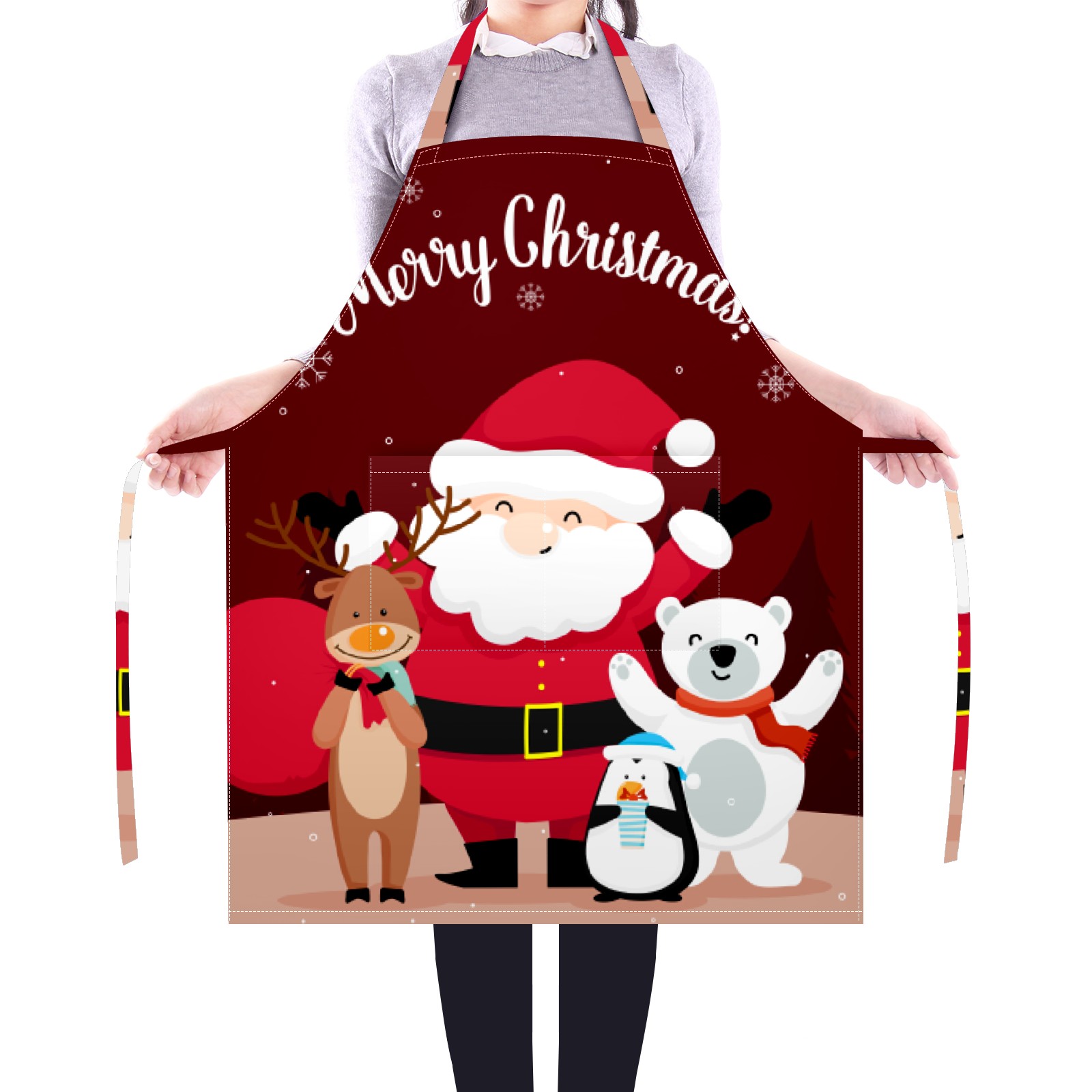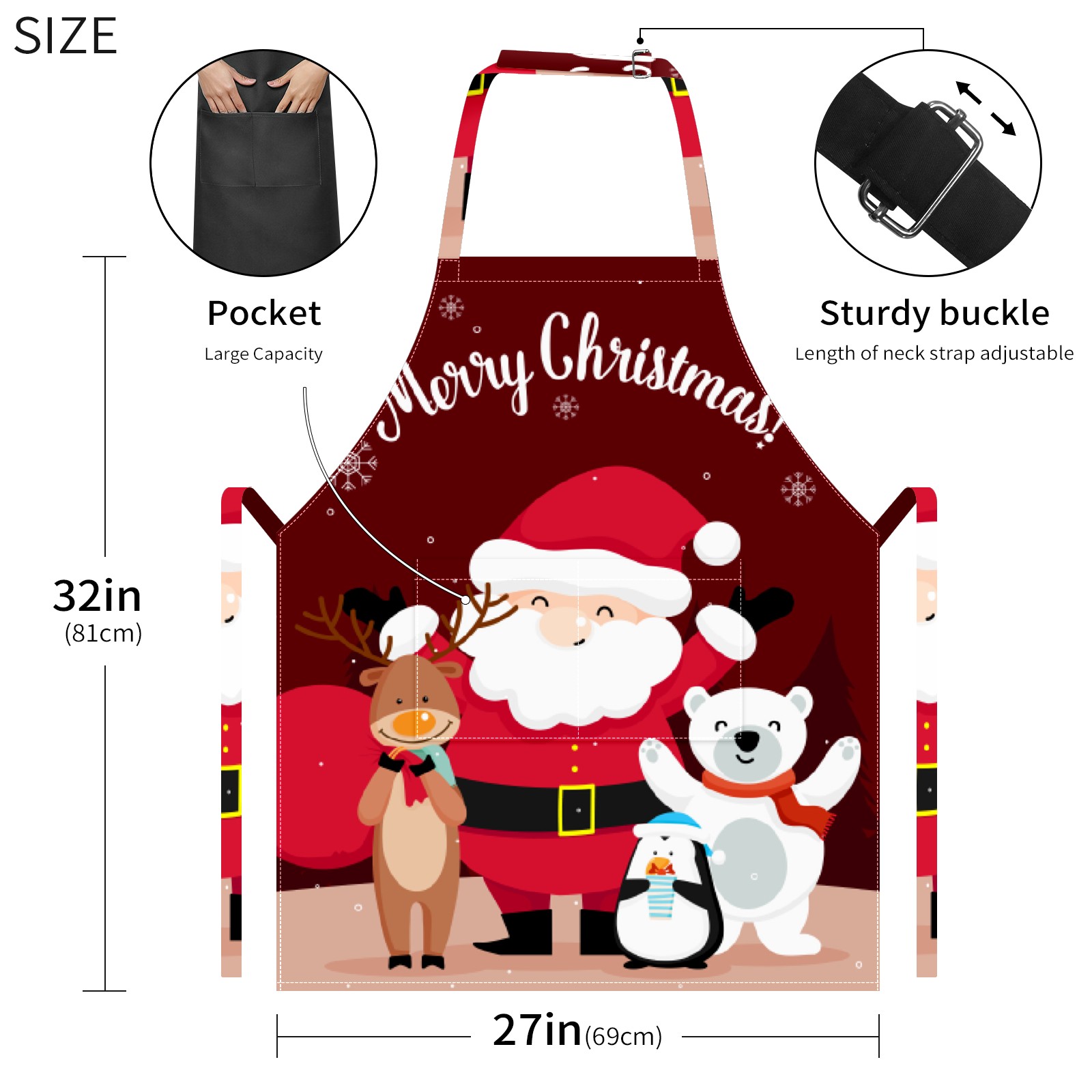 Introducing the perfect addition to your Christmas festivities - the Christmas apron! This festive apron features a fun and playful Christmas design with a variety of cartoon characters that will add some holiday cheer to your kitchen or party. Measuring at 32 x 27 inches, this apron is perfect for cooking, baking, hosting, or even working at a restaurant. The durable fabric makes it easy to clean and maintain, so you can use it year after year. Designed by Genhuyiz, this Christmas apron is perfect for decorating your home or for giving as a gift to your family and friends. Whether you are hosting a Christmas party or simply want to get into the holiday spirit while cooking in the kitchen, this apron is a must-have. Don't let cooking or hosting stress you out during the holiday season. Put on this festive and fun Christmas apron, and let it bring a smile to your face as you spread some holiday cheer. Get ready to impress your guests by adding this apron to your Christmas collection now!