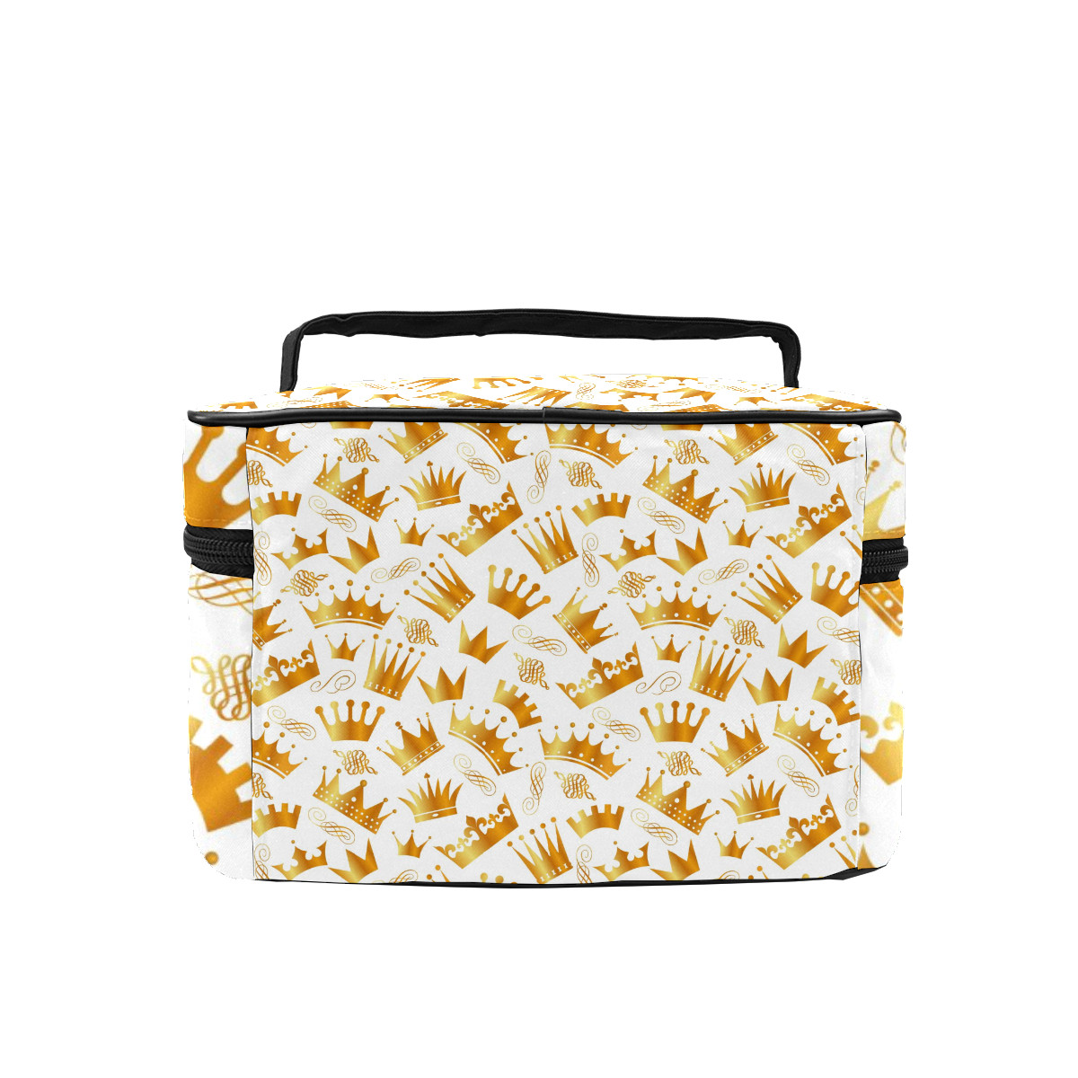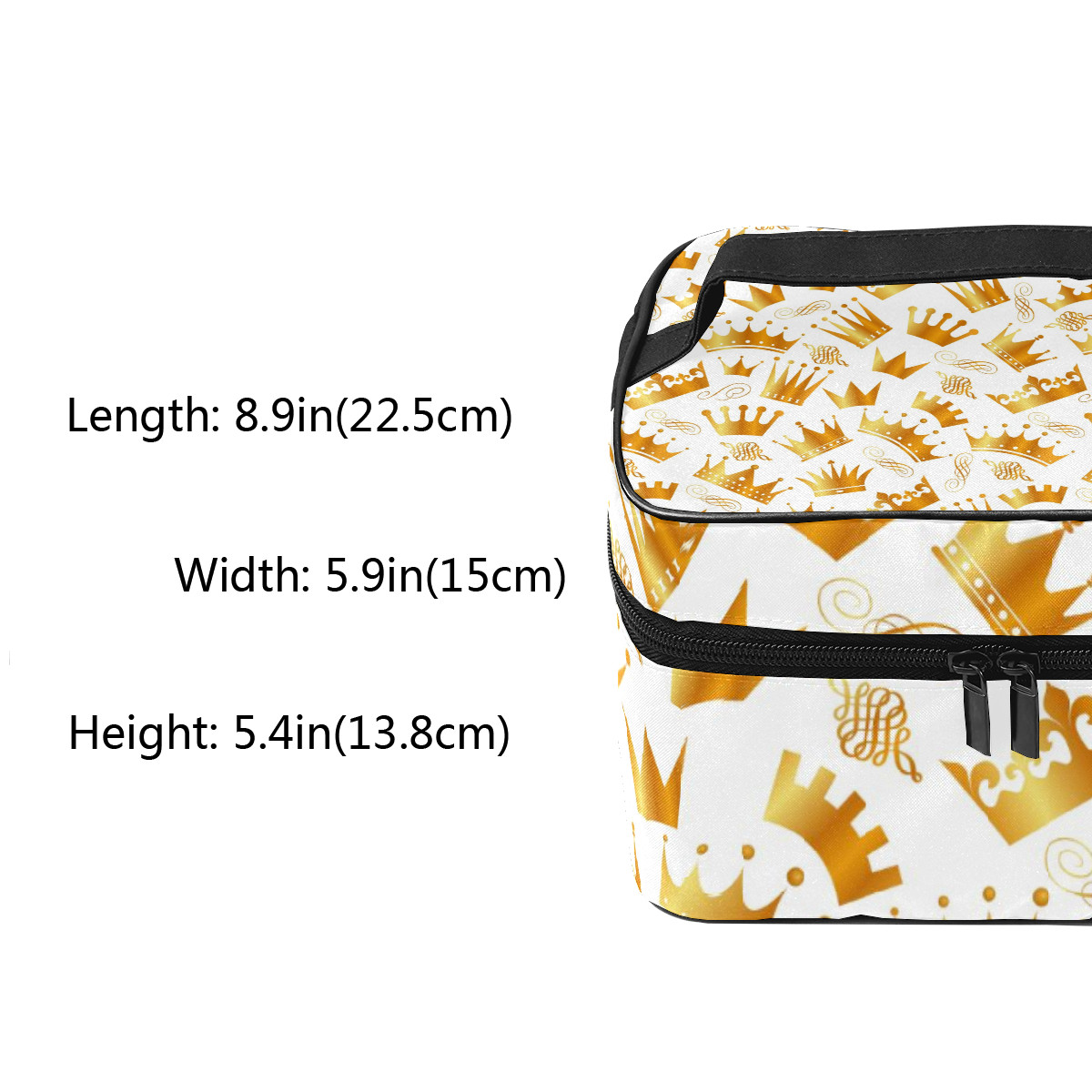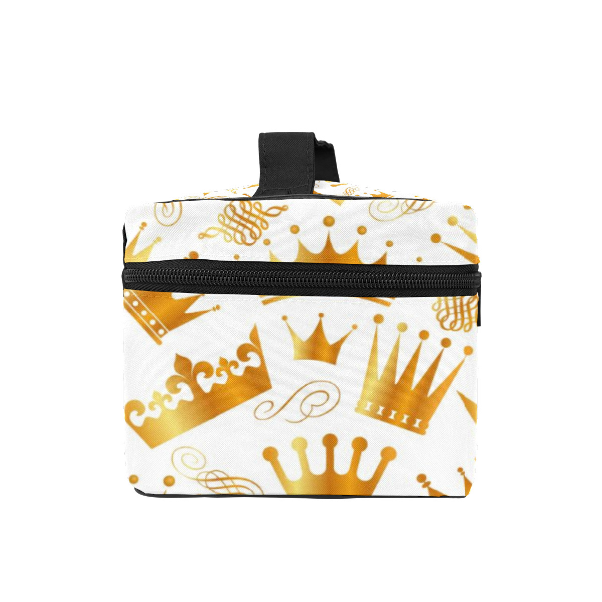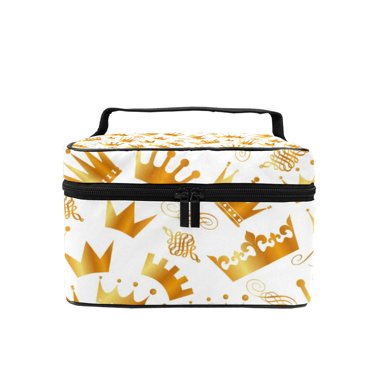 Makeup Cosmetic Bag Golden Queen Princess Crowns Pattern Portable Travel Train Case Toiletry Bags Organizer Multifunction Storage