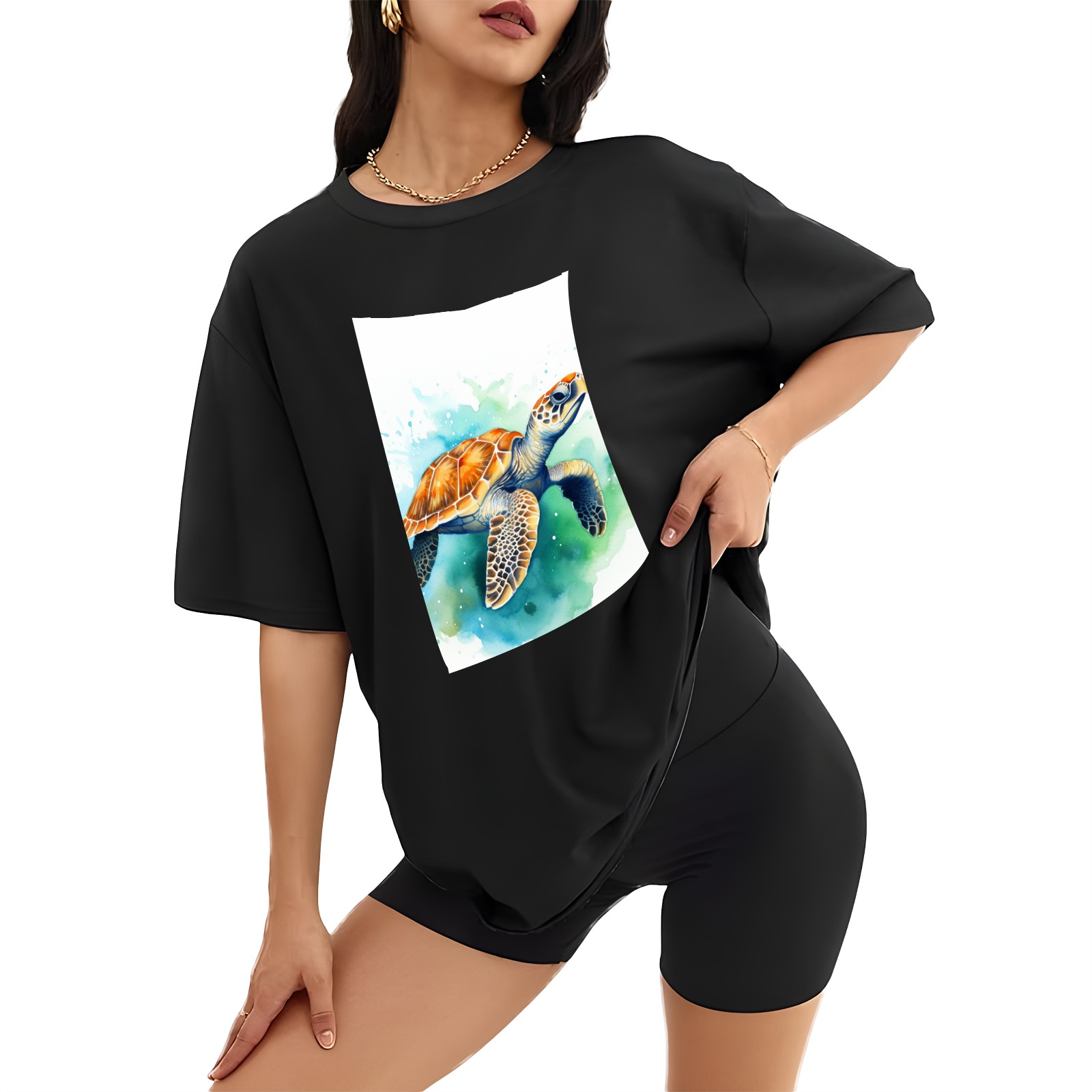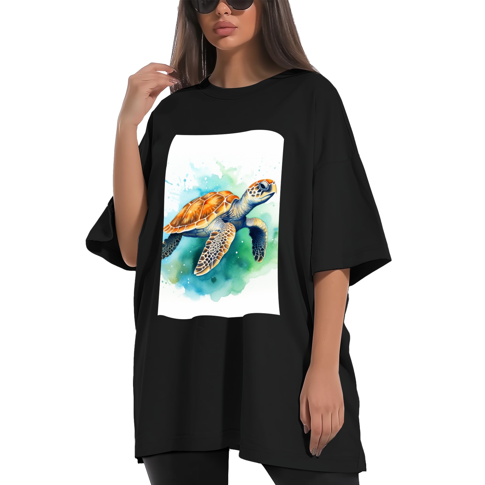 Plus Size Shirt for Women Black Tops for Women Short Sleeves Shirt for Women Turtle (30) T Shirt Crewneck Shirt for Women XS