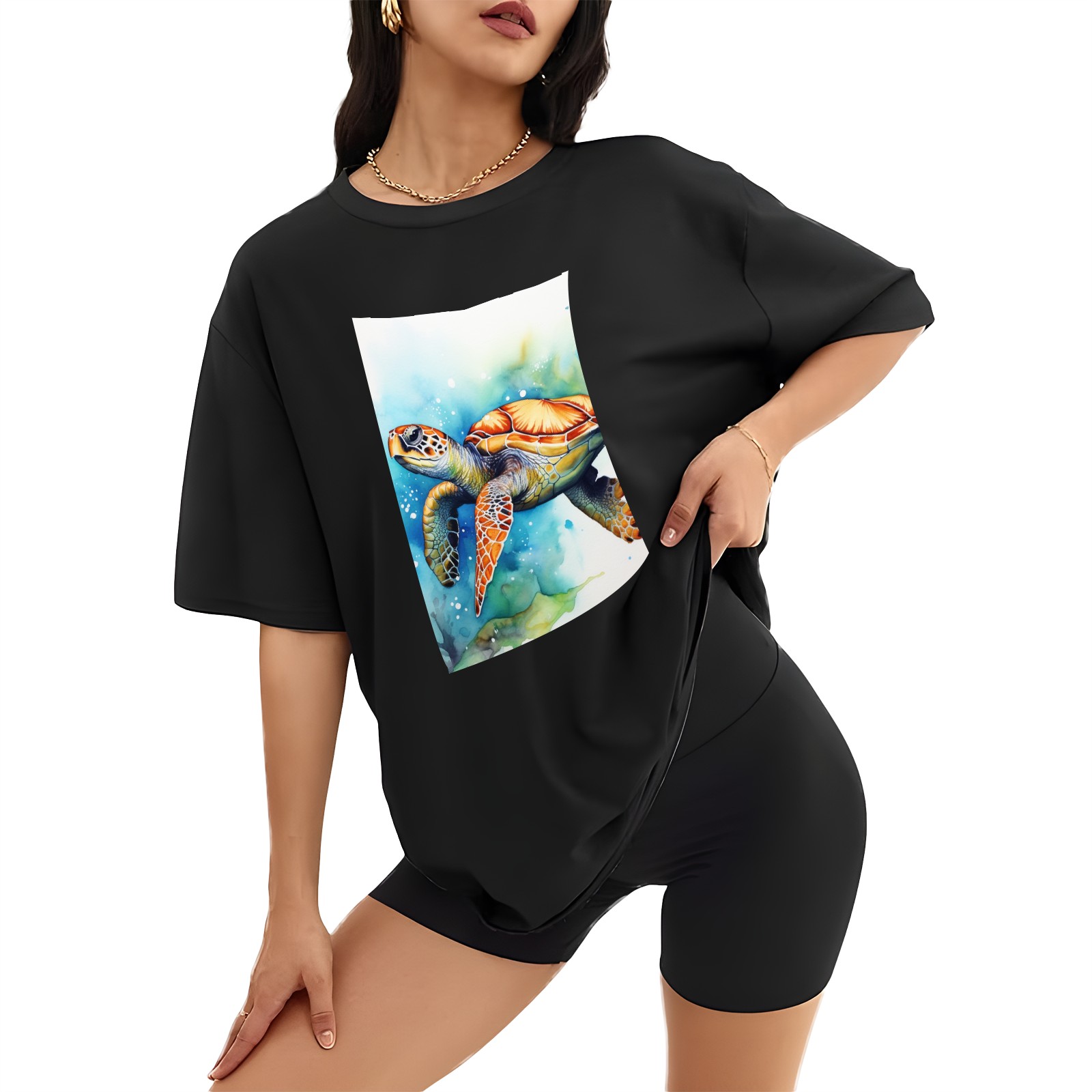 Plus Size Shirt for Women Black Tops for Women Short Sleeves Shirt for Women Turtle (29) T Shirt Crewneck Shirt for Women XS