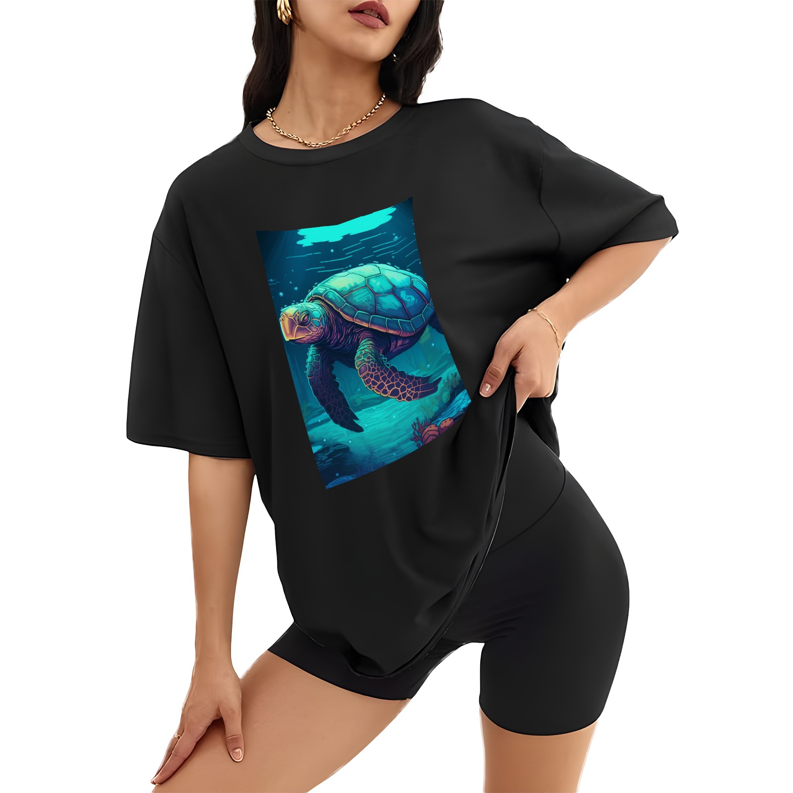 Plus Size Shirt for Women Black Tops for Women Short Sleeves Shirt for Women Turtle (27) T Shirt Crewneck Shirt for Women XS