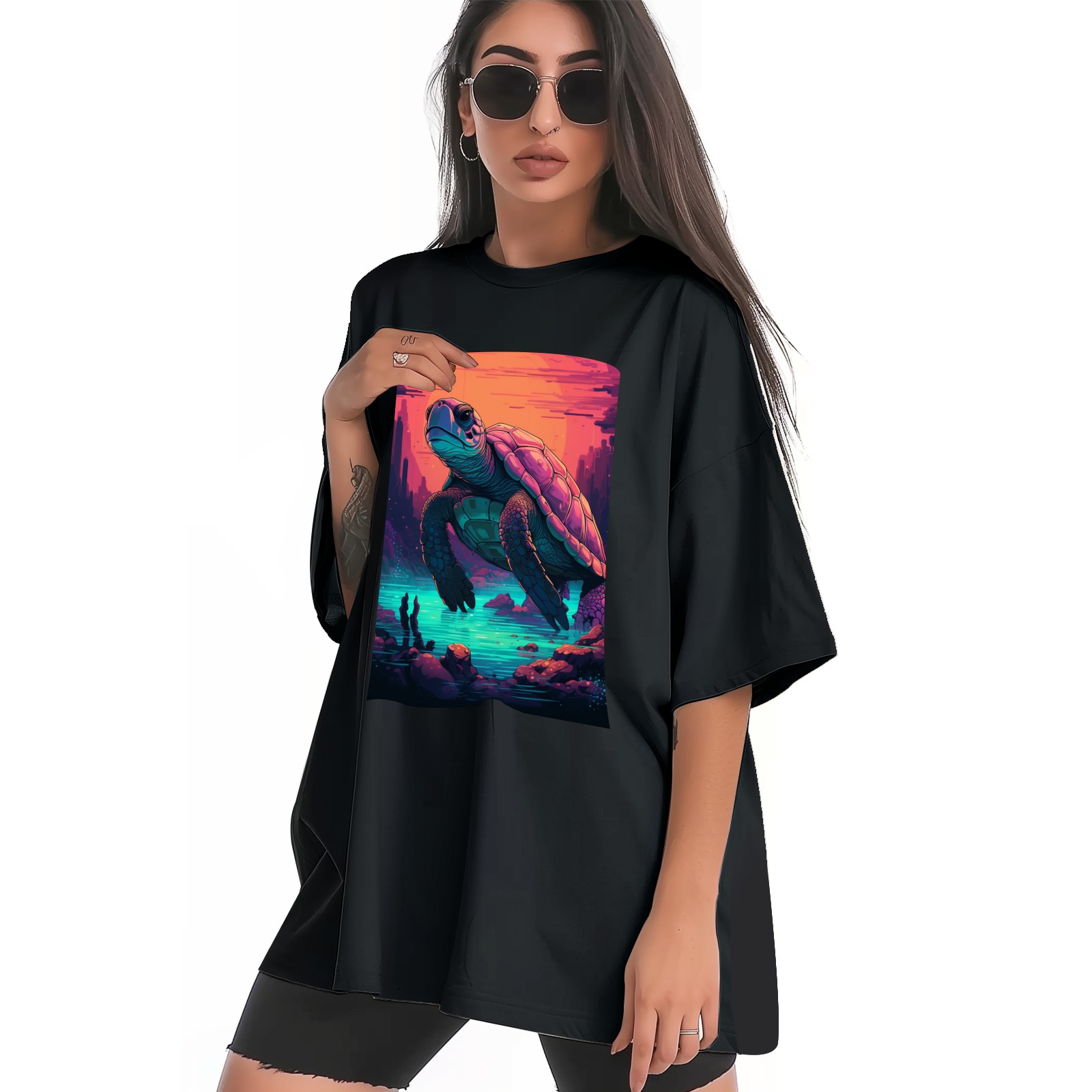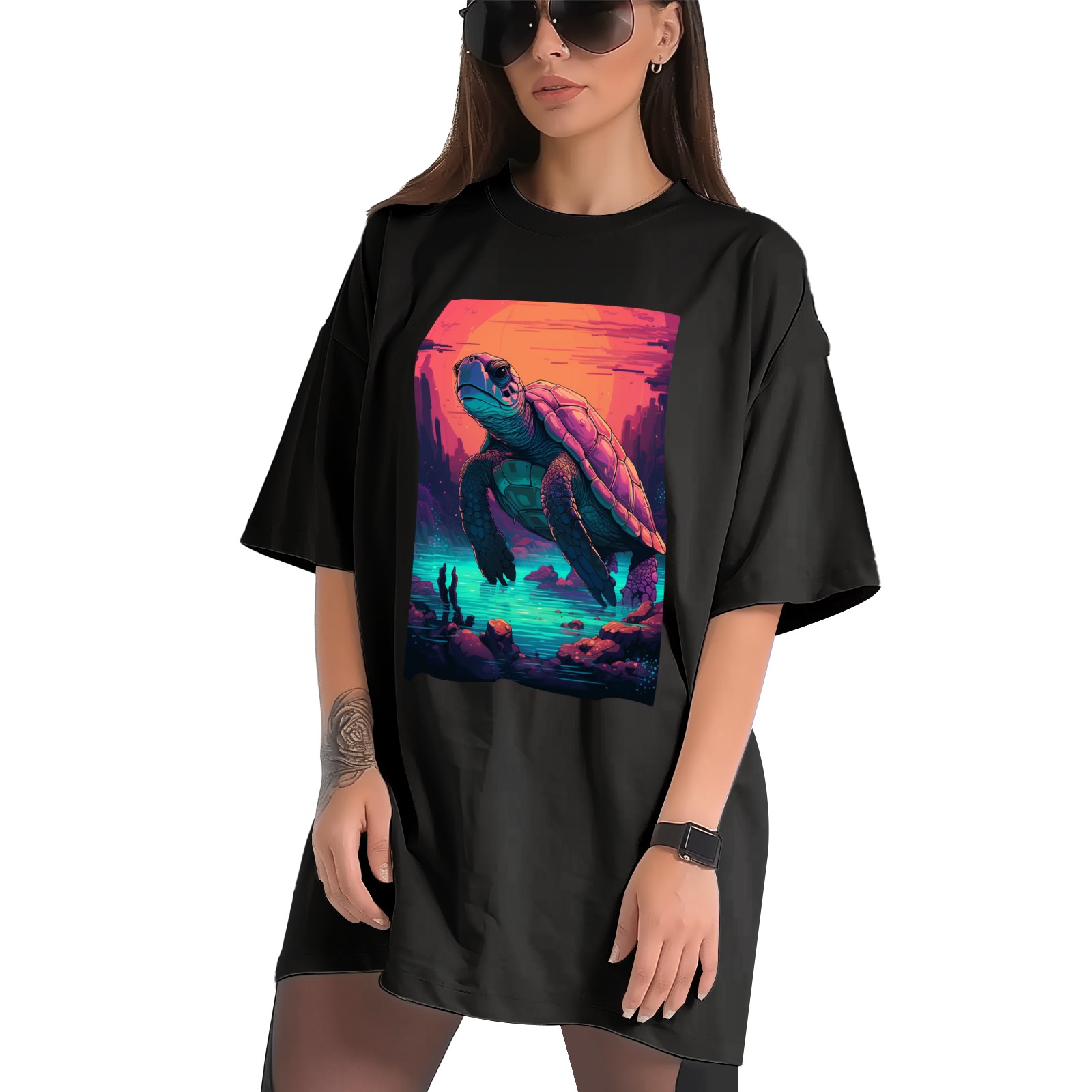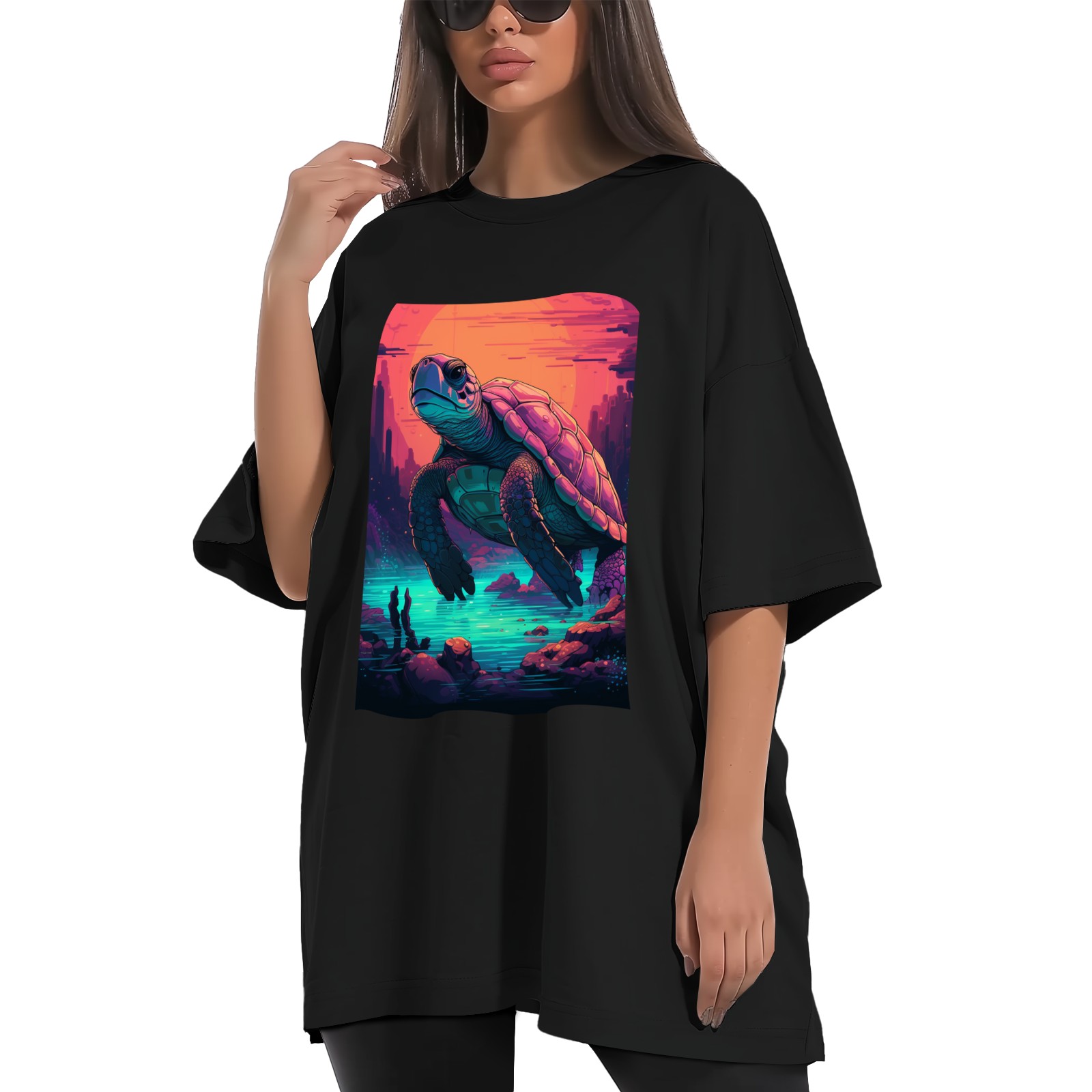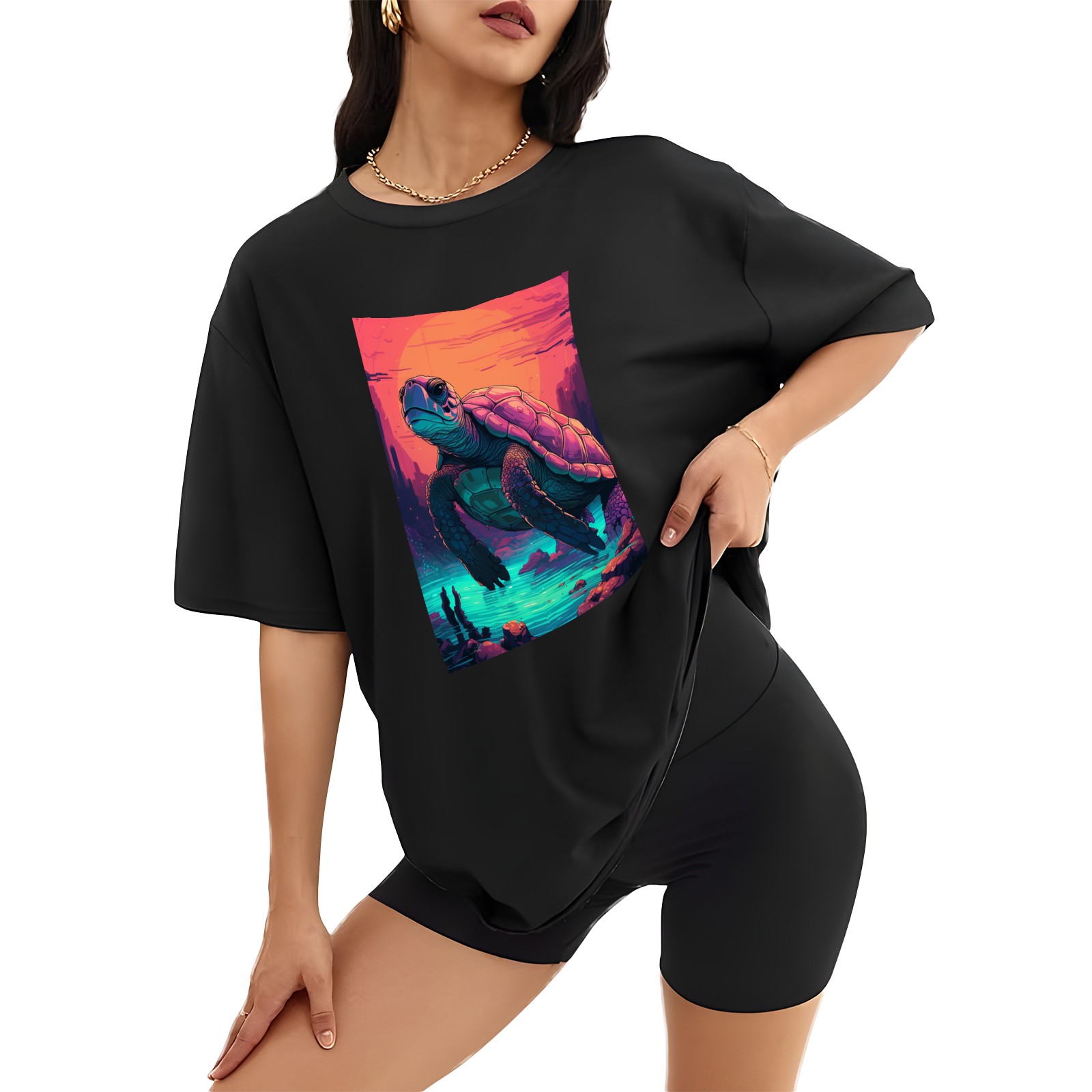 Plus Size Shirt for Women Black Tops for Women Short Sleeves Shirt for Women Turtle (21) T Shirt Crewneck Shirt for Women XS