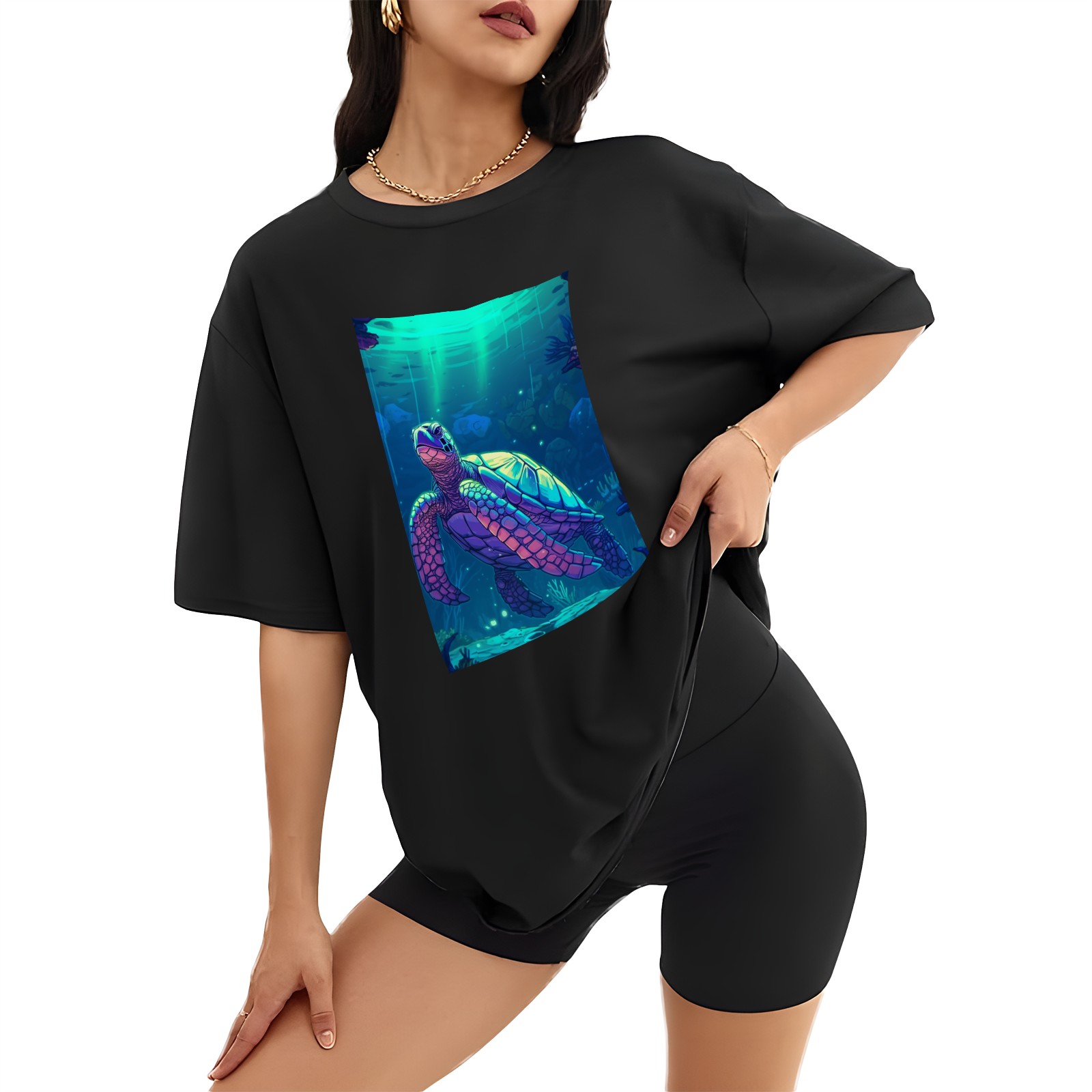 Plus Size Shirt for Women Black Tops for Women Short Sleeves Shirt for Women Turtle (18) T Shirt Crewneck Shirt for Women XS