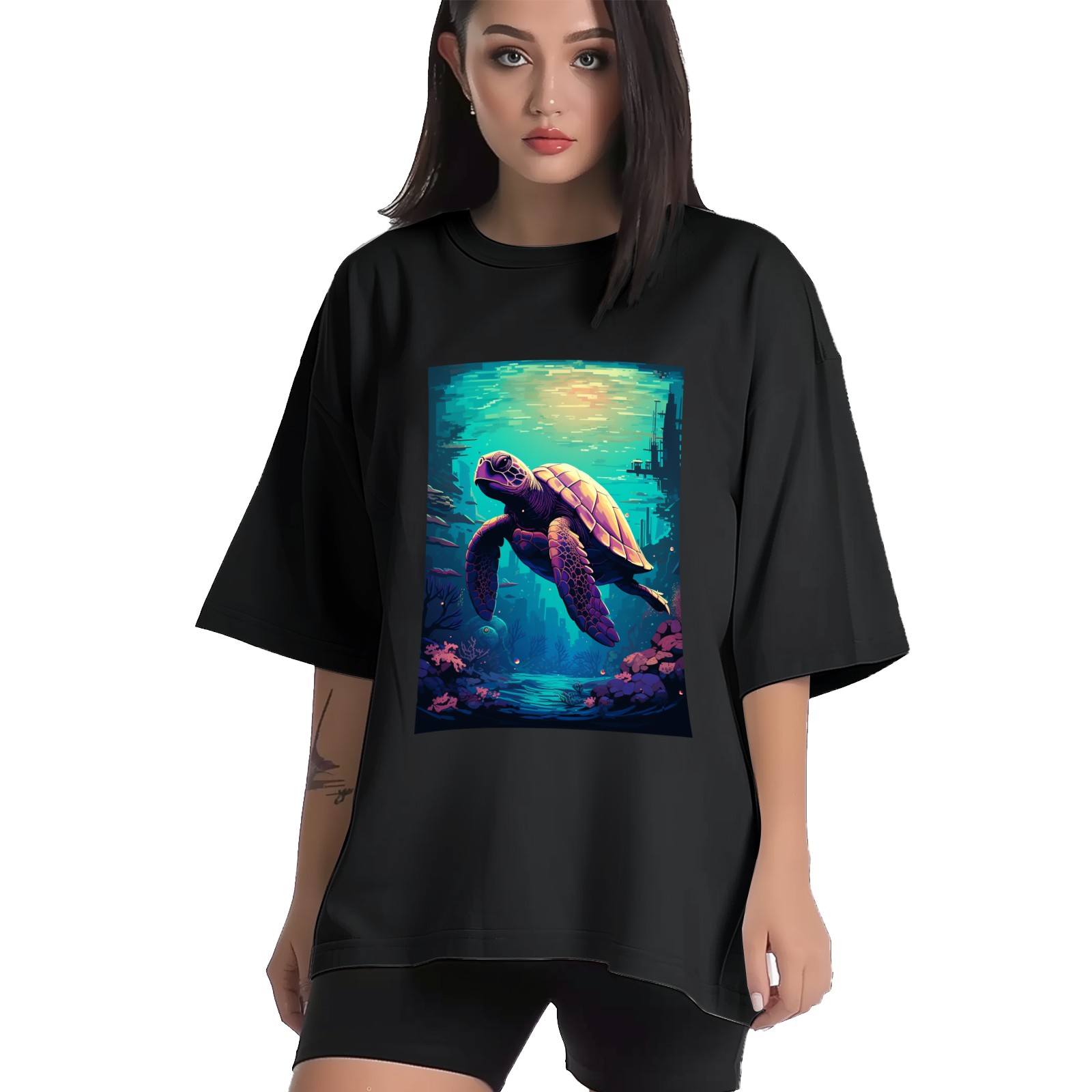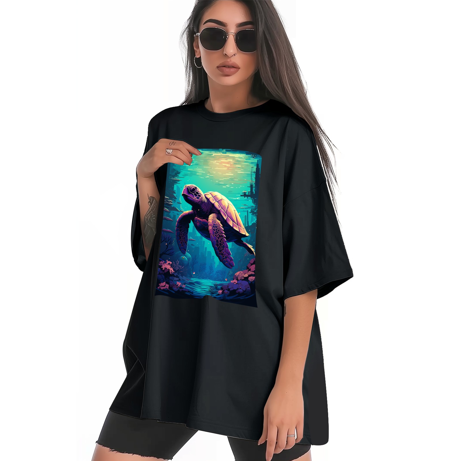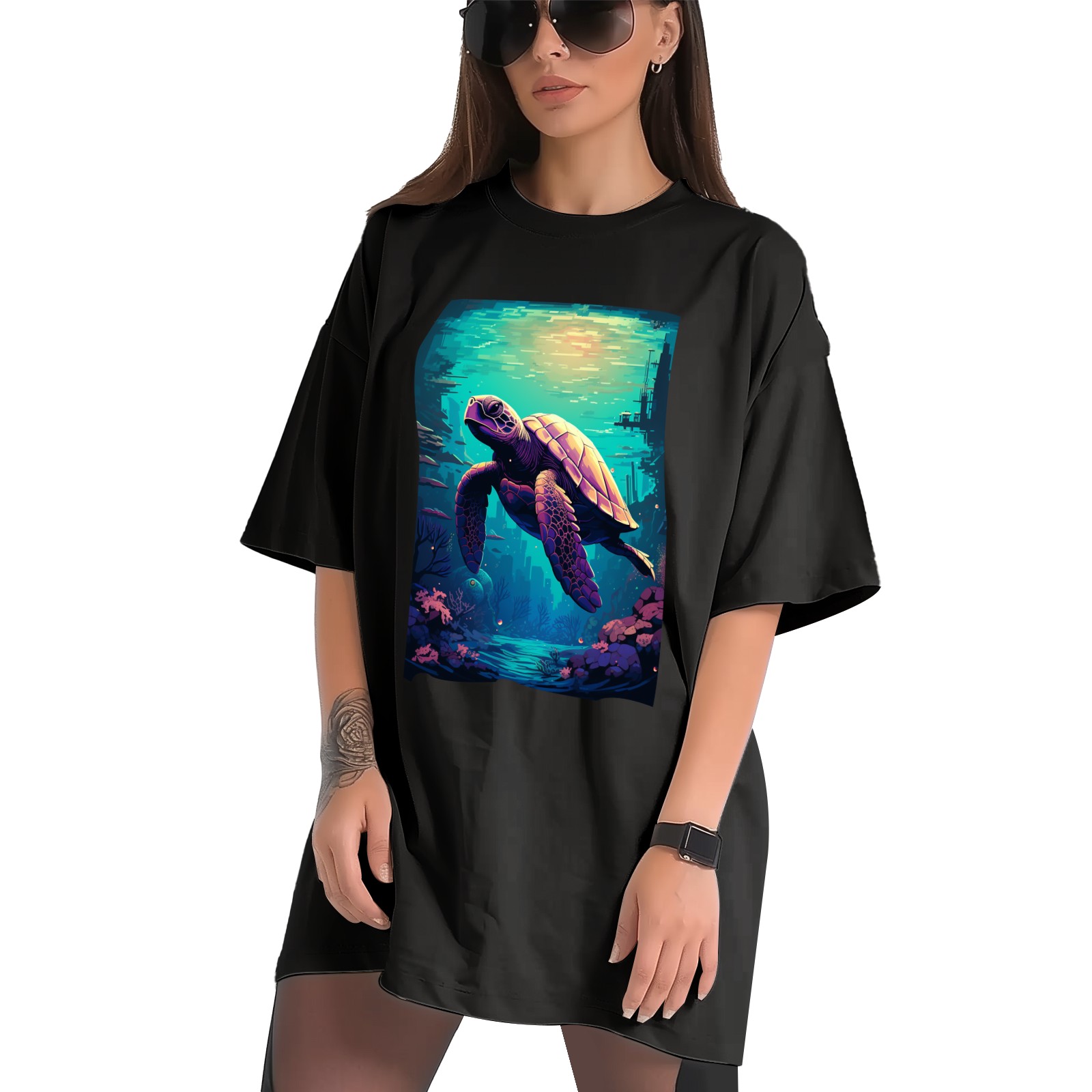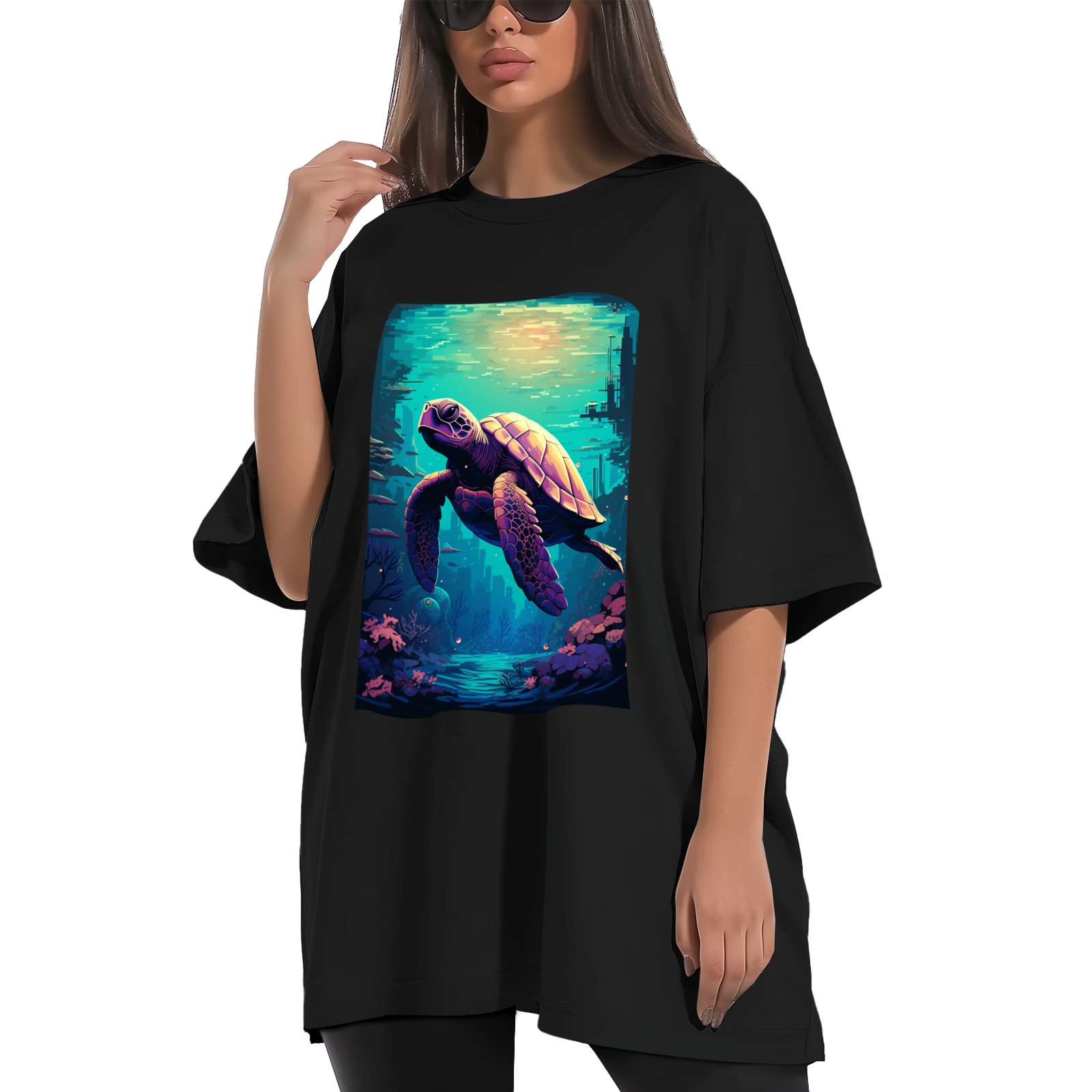 Plus Size Shirt for Women Black Tops for Women Short Sleeves Shirt for Women Turtle (11) T Shirt Crewneck Shirt for Women XS