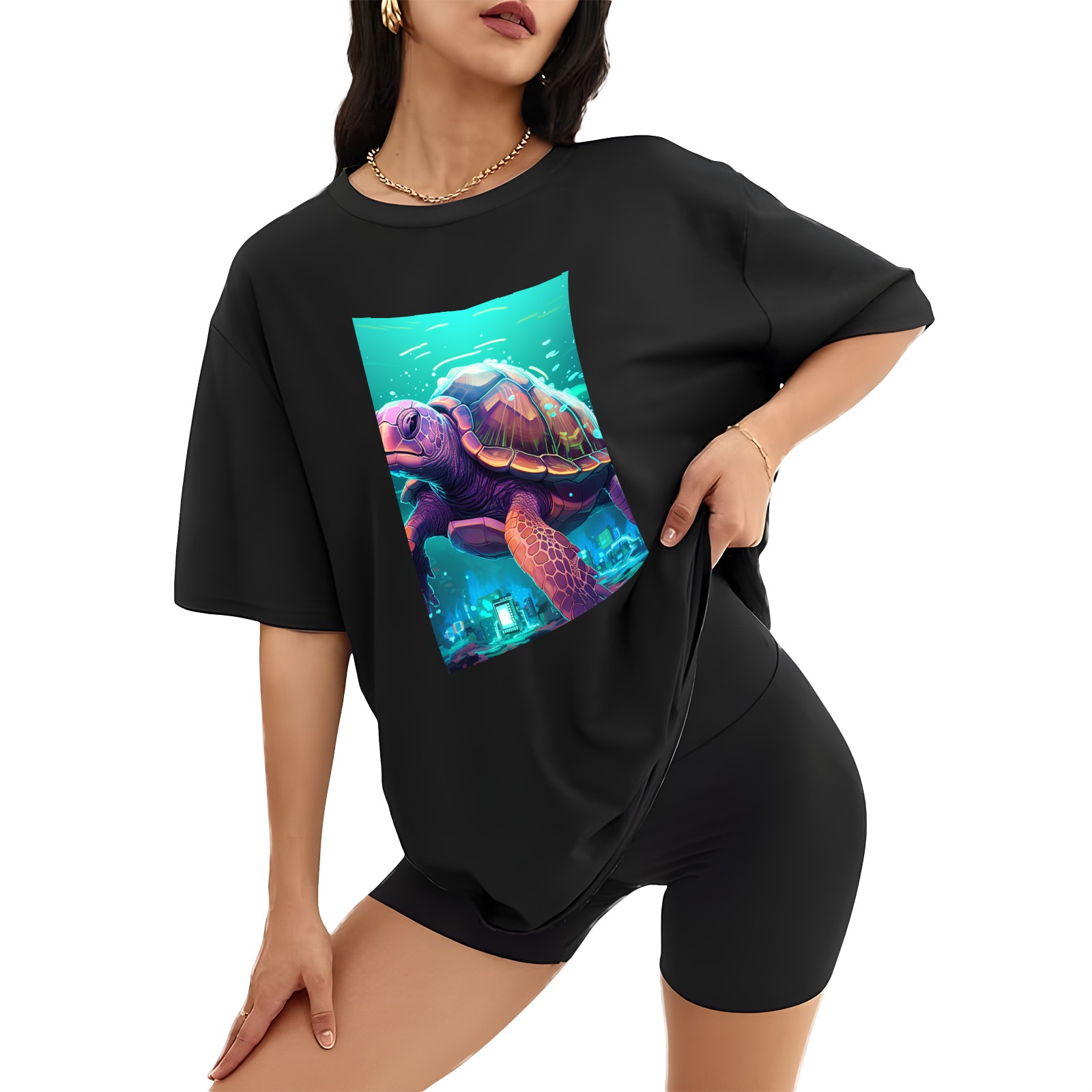 Plus Size Shirt for Women Black Tops for Women Short Sleeves Shirt for Women Turtle (9) T Shirt Crewneck Shirt for Women XS