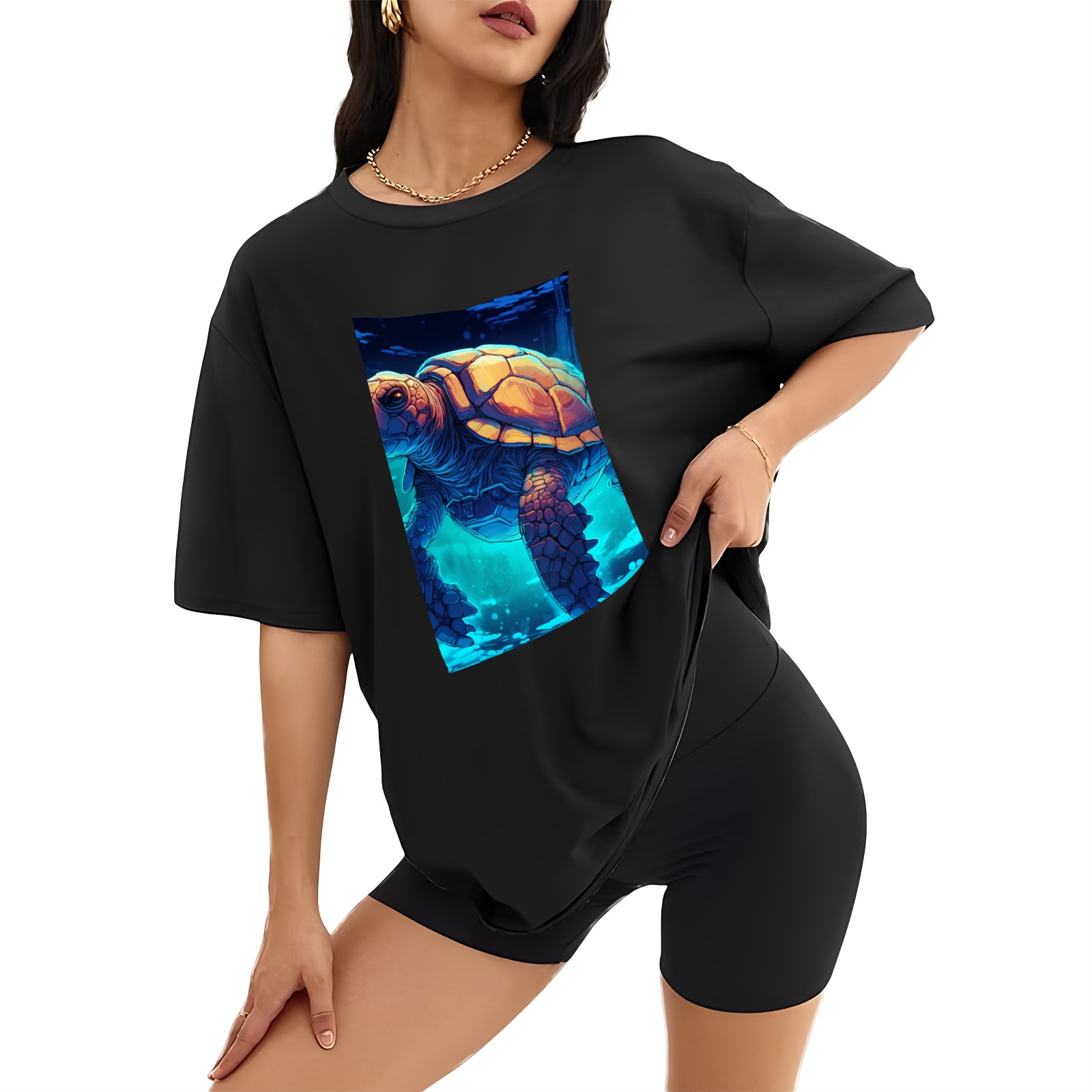 Plus Size Shirt for Women Black Tops for Women Short Sleeves Shirt for Women Turtle (6) T Shirt Crewneck Shirt for Women XS