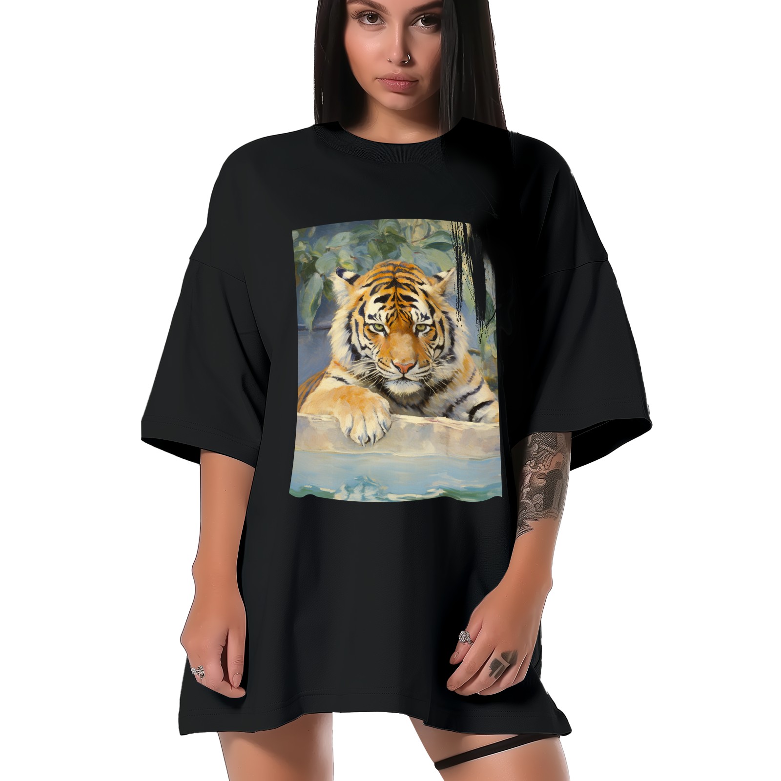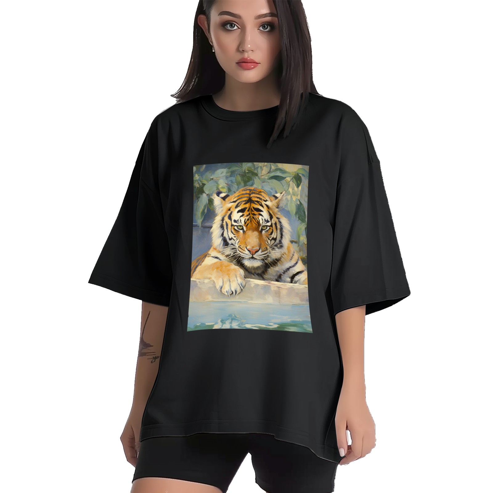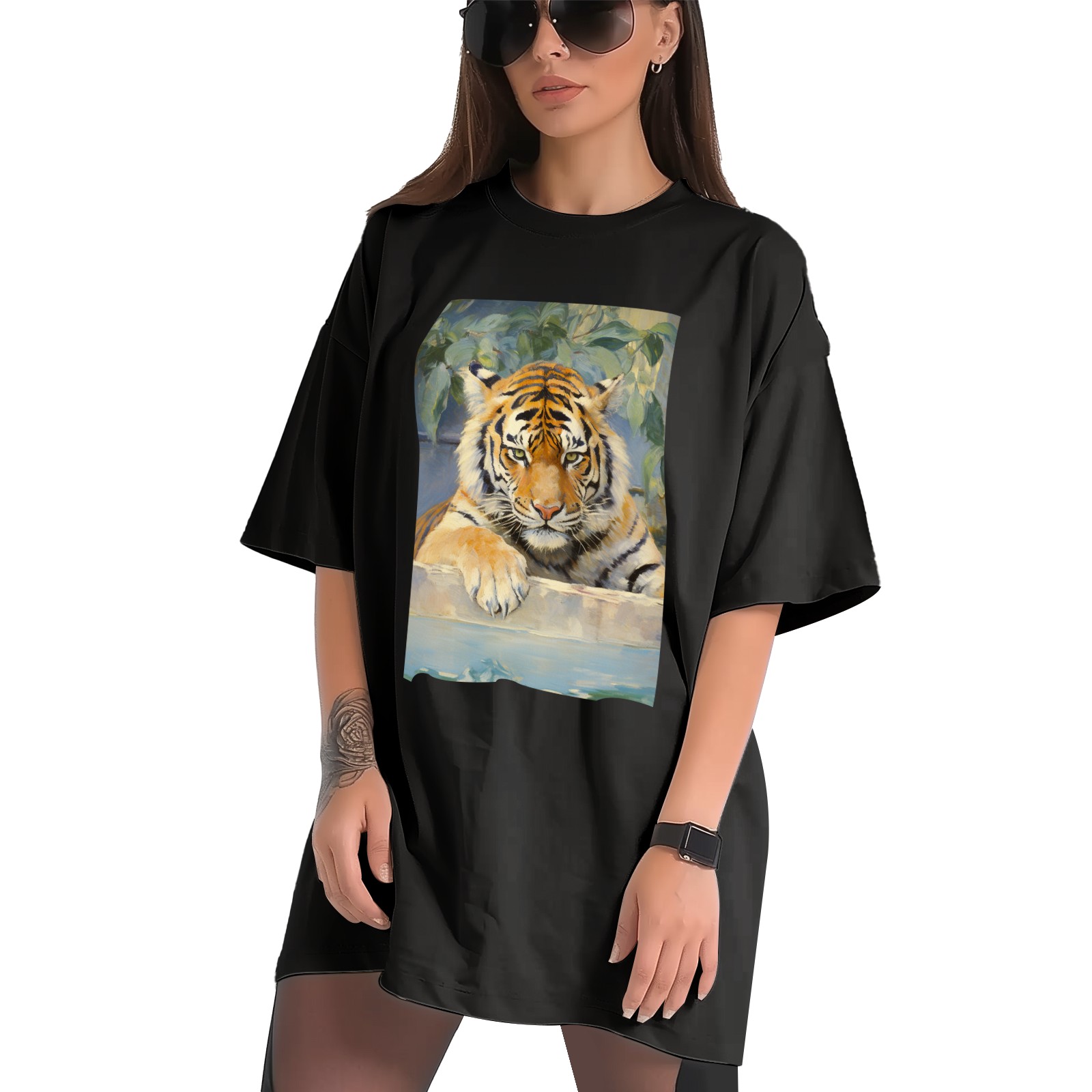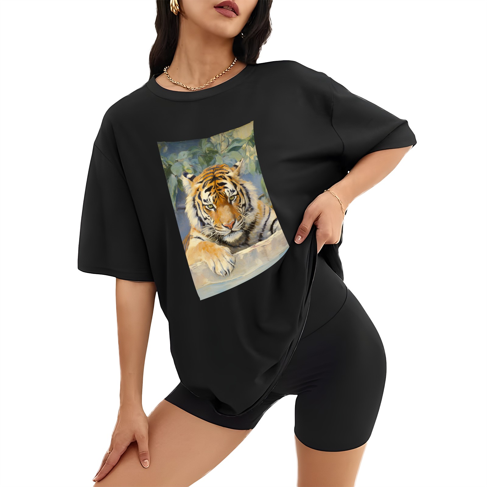 Plus Size Shirt for Women Black Tops for Women Short Sleeves Shirt for Women Tiger (2) T Shirt Crewneck Shirt for Women XS