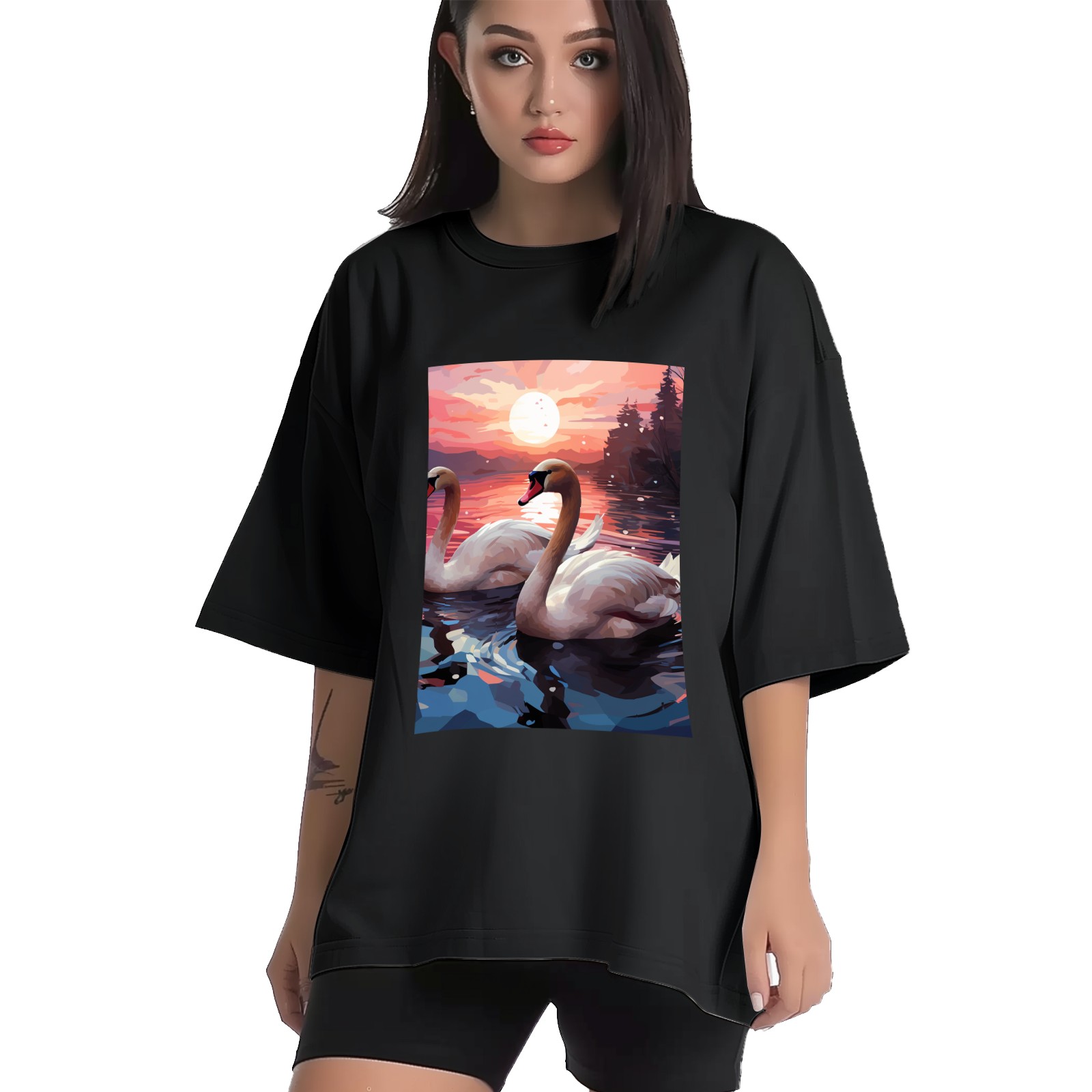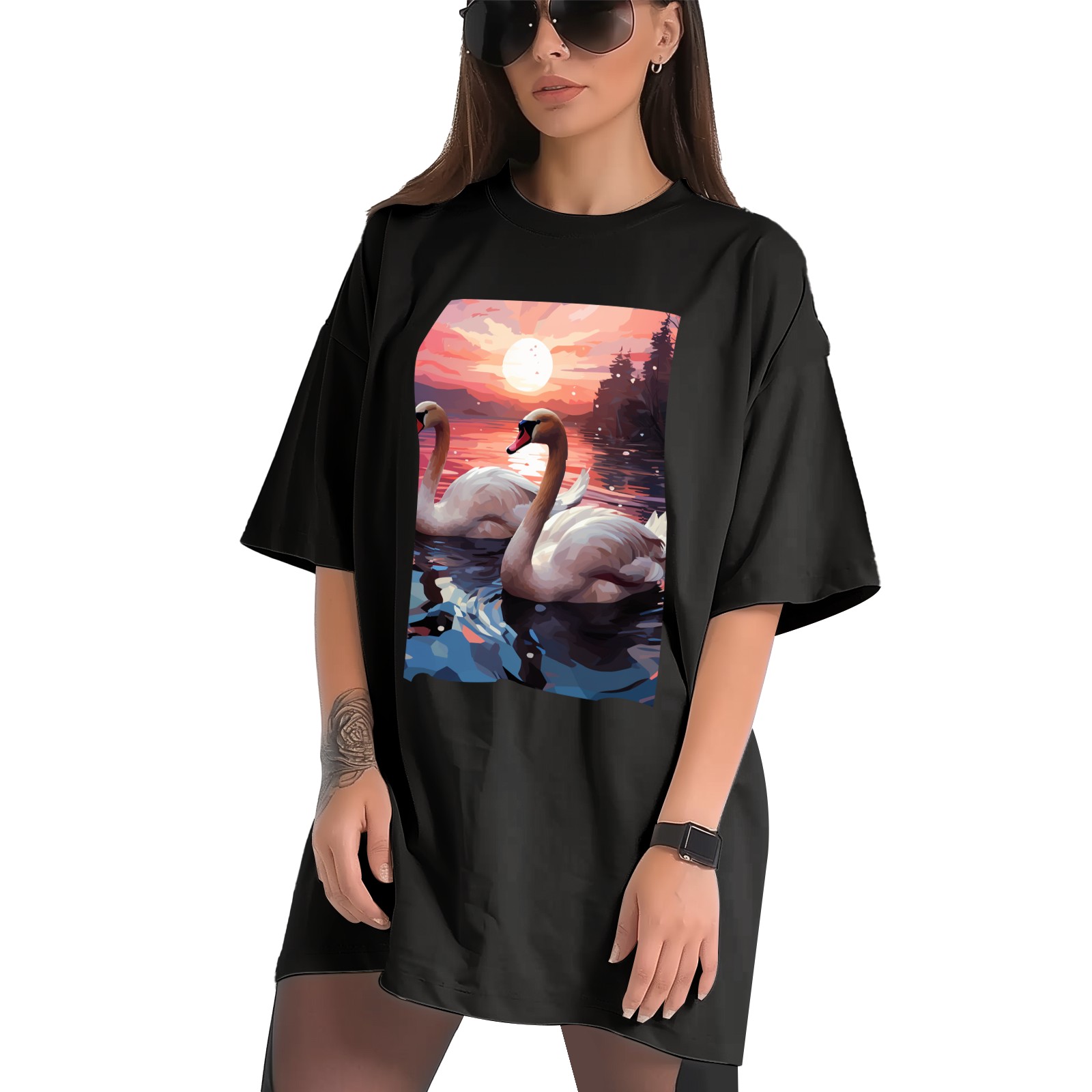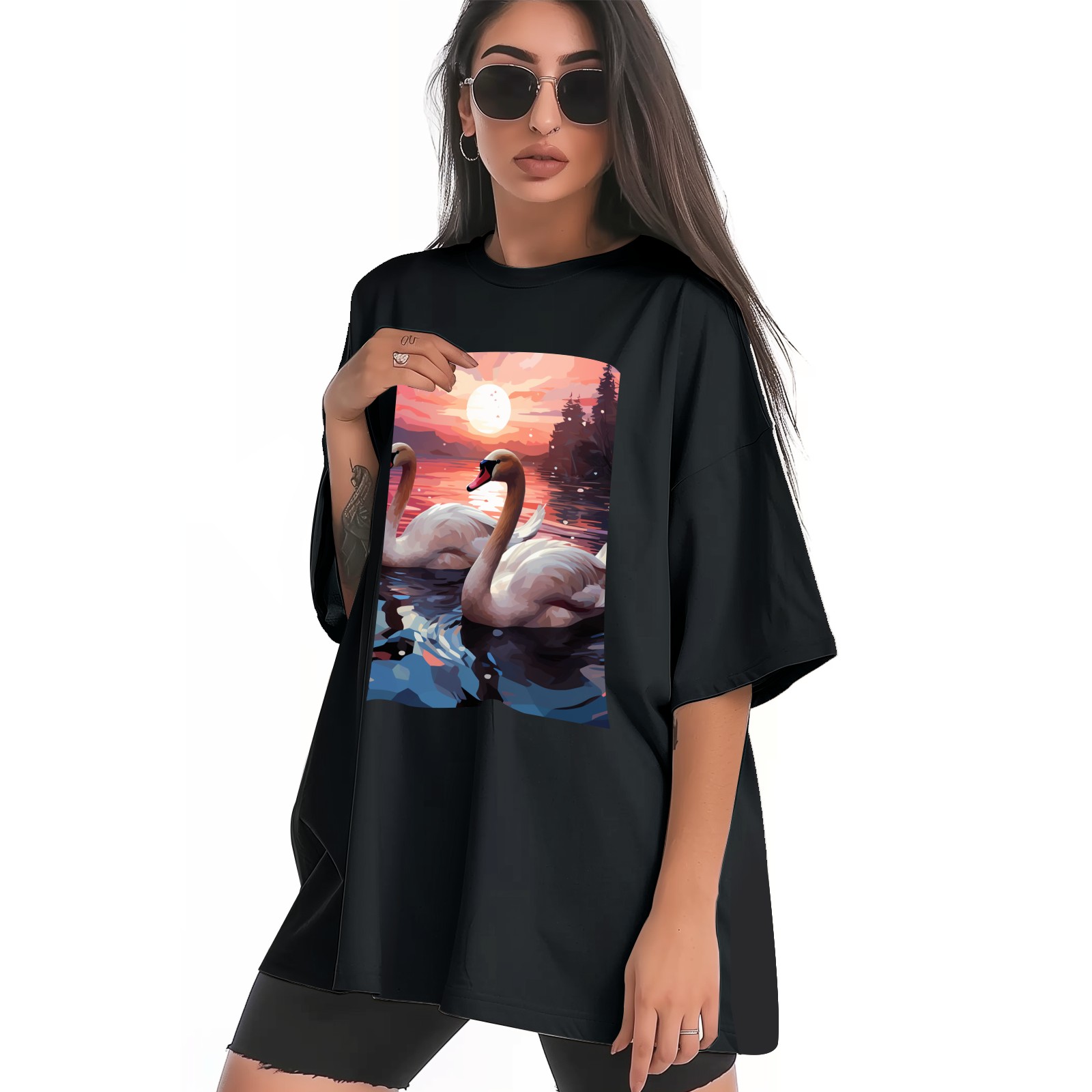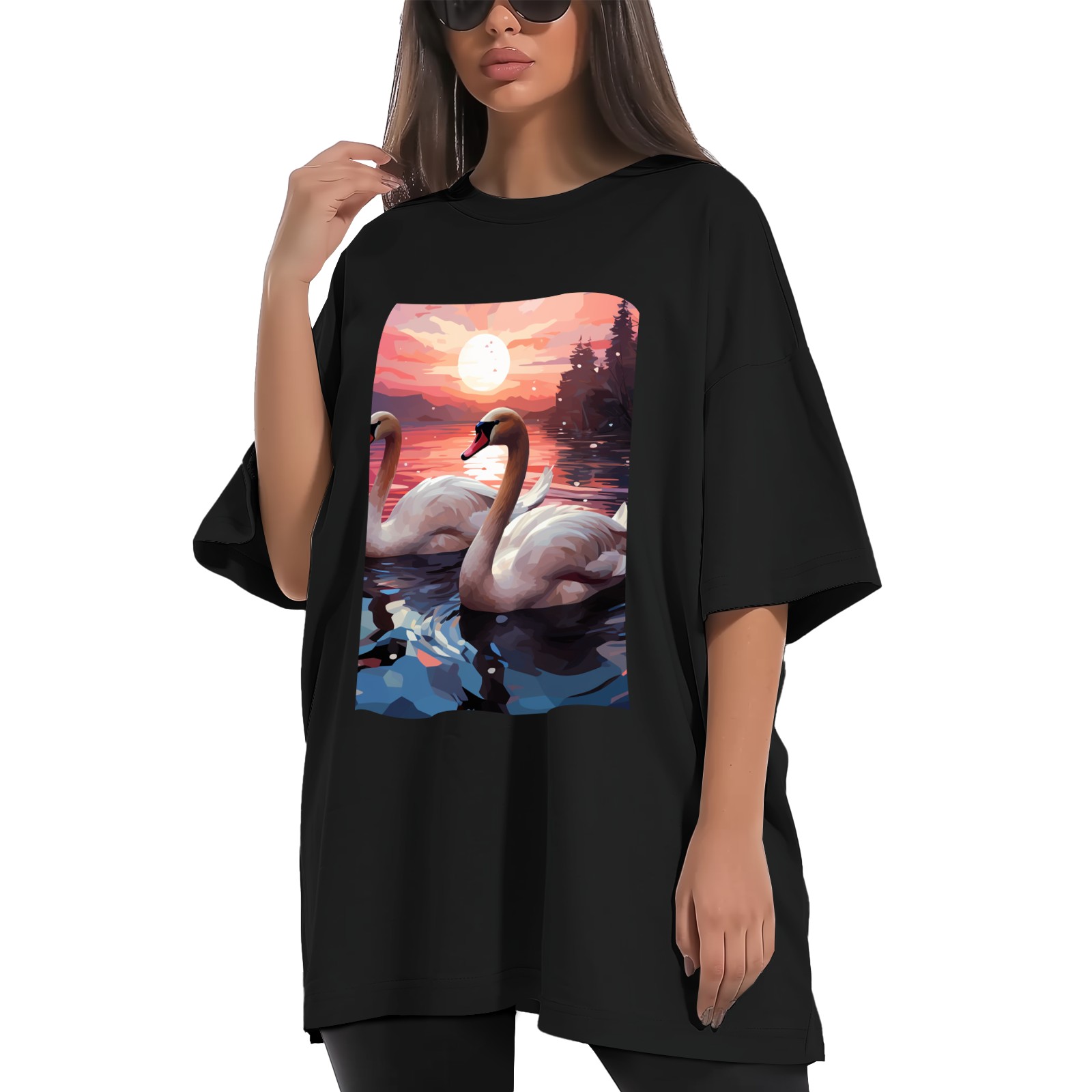 Plus Size Shirt for Women Black Tops for Women Short Sleeves Shirt for Women Swans (28) T Shirt Crewneck Shirt for Women XS