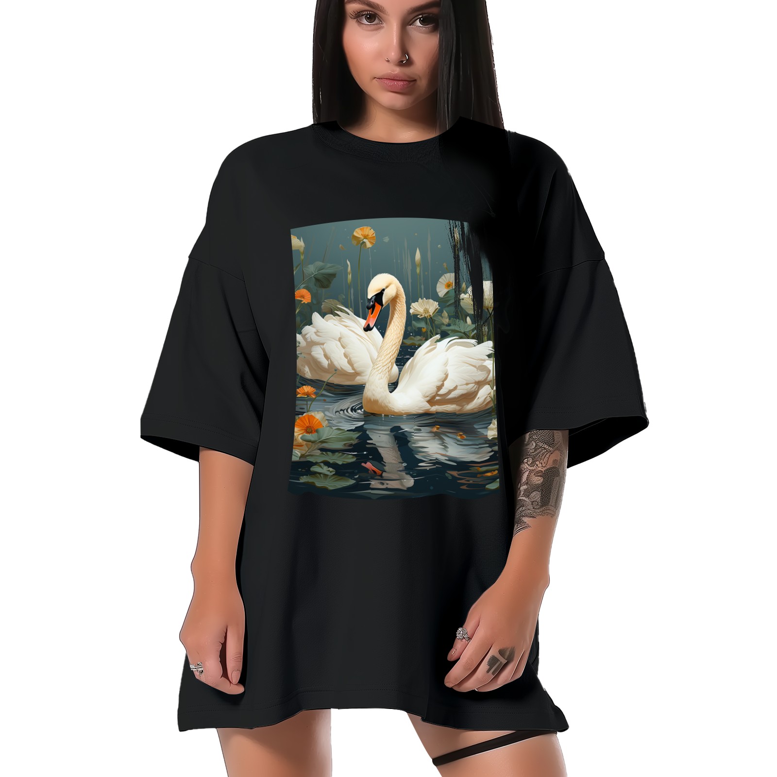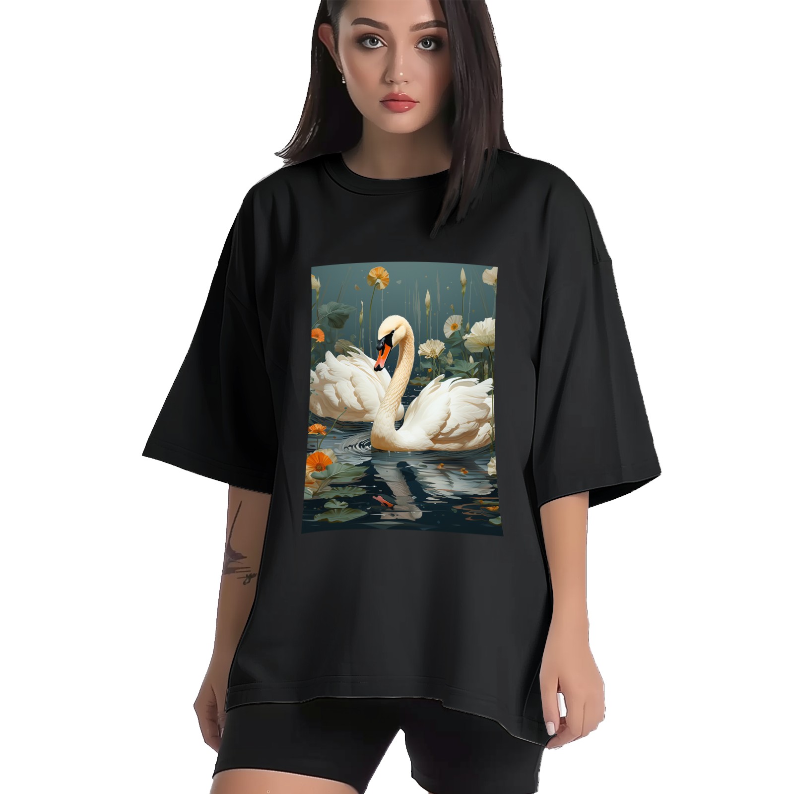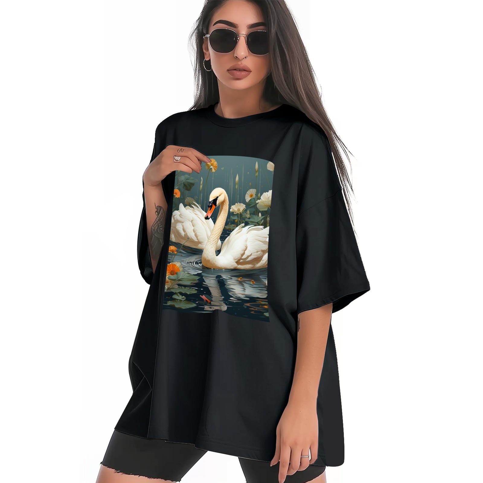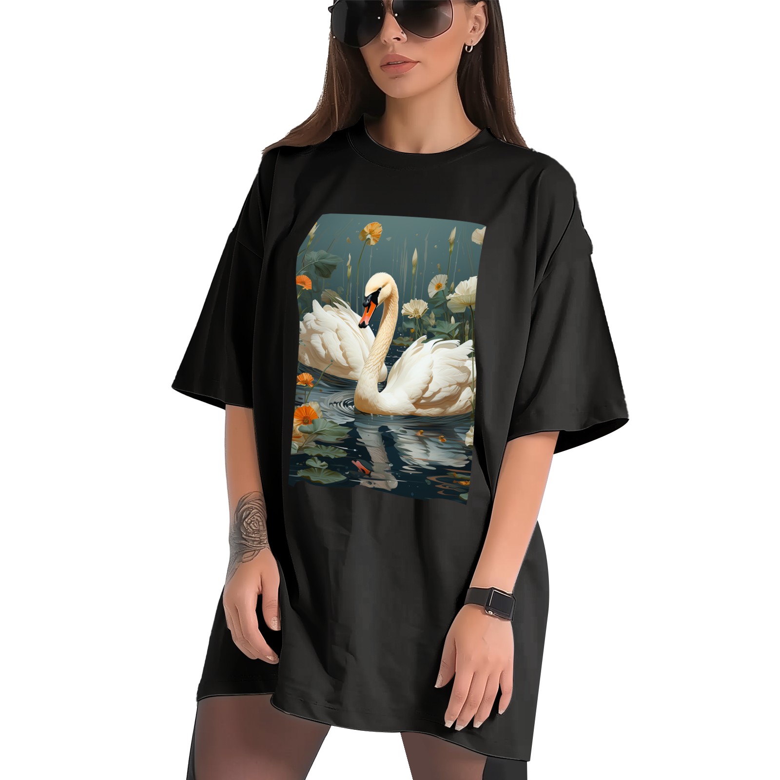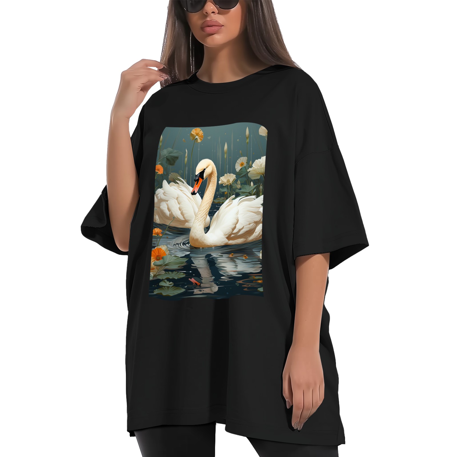 Plus Size Shirt for Women Black Tops for Women Short Sleeves Shirt for Women Swans (25) T Shirt Crewneck Shirt for Women XS
