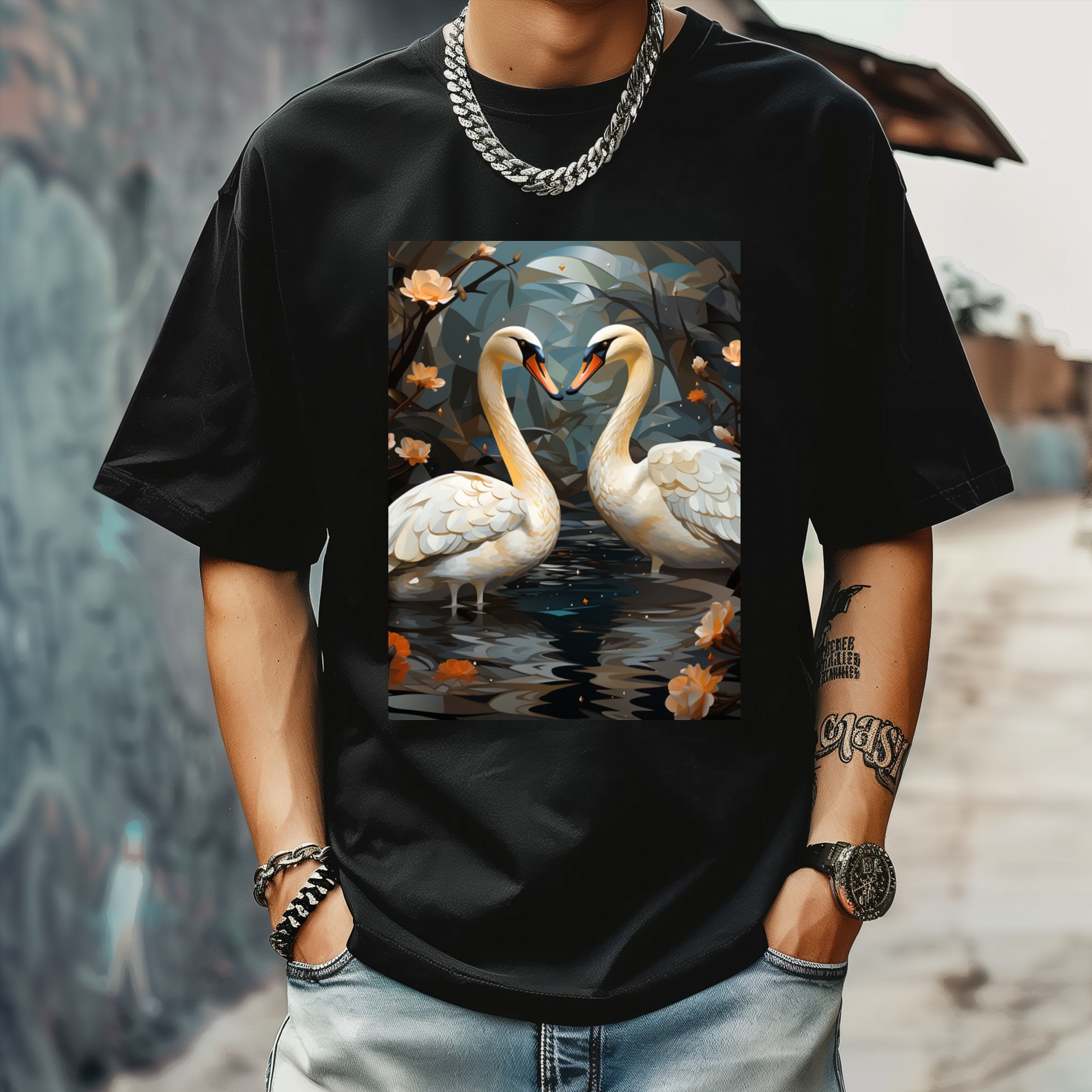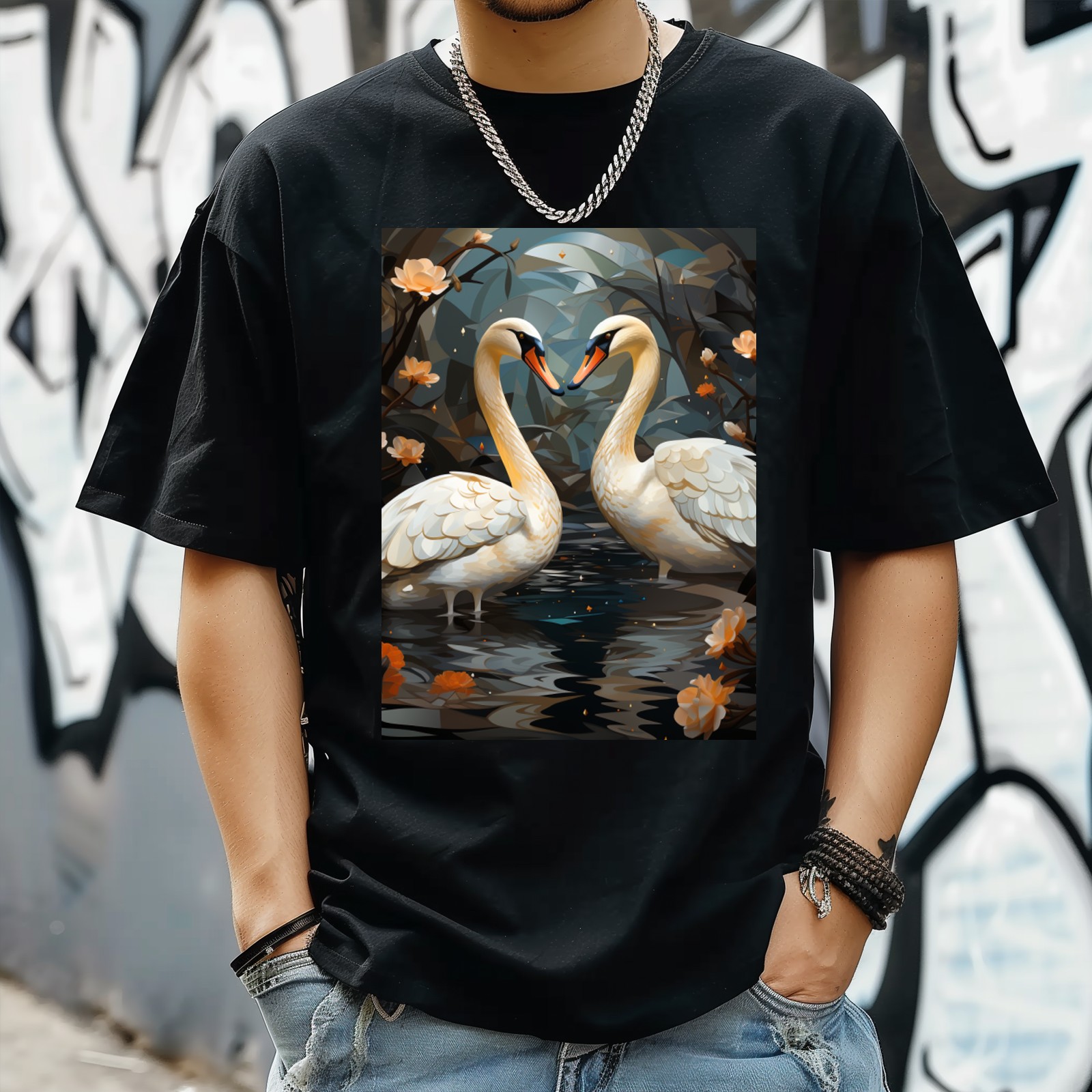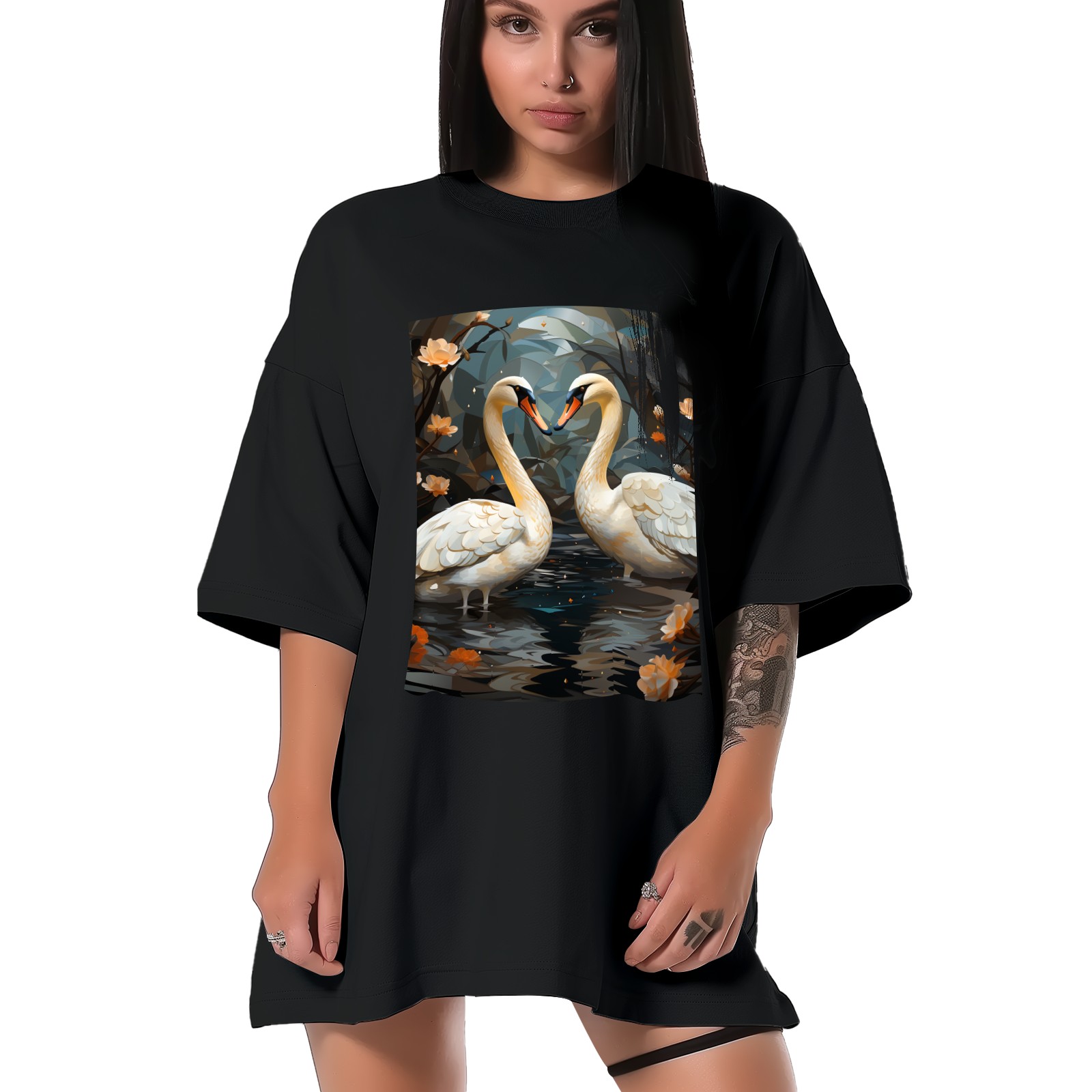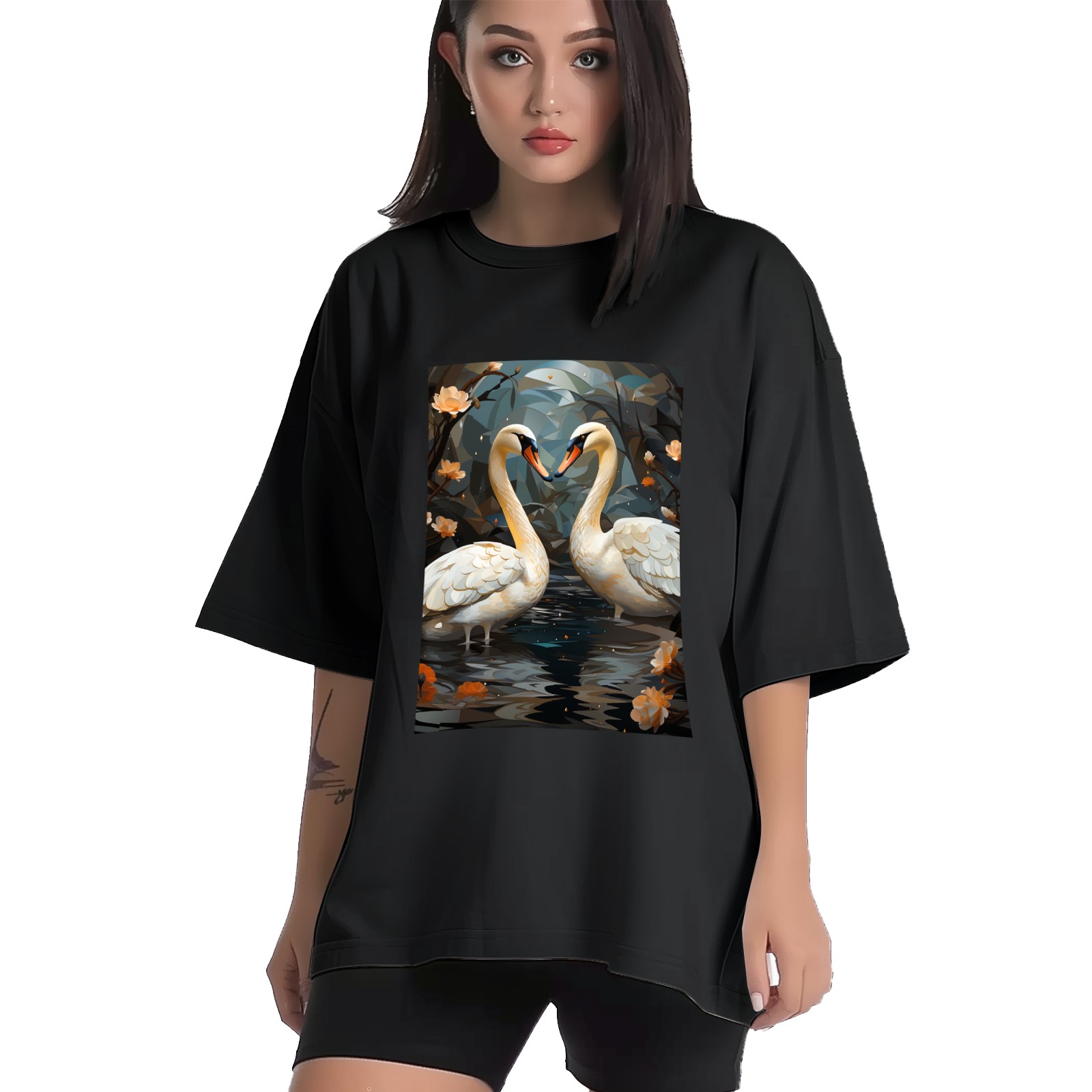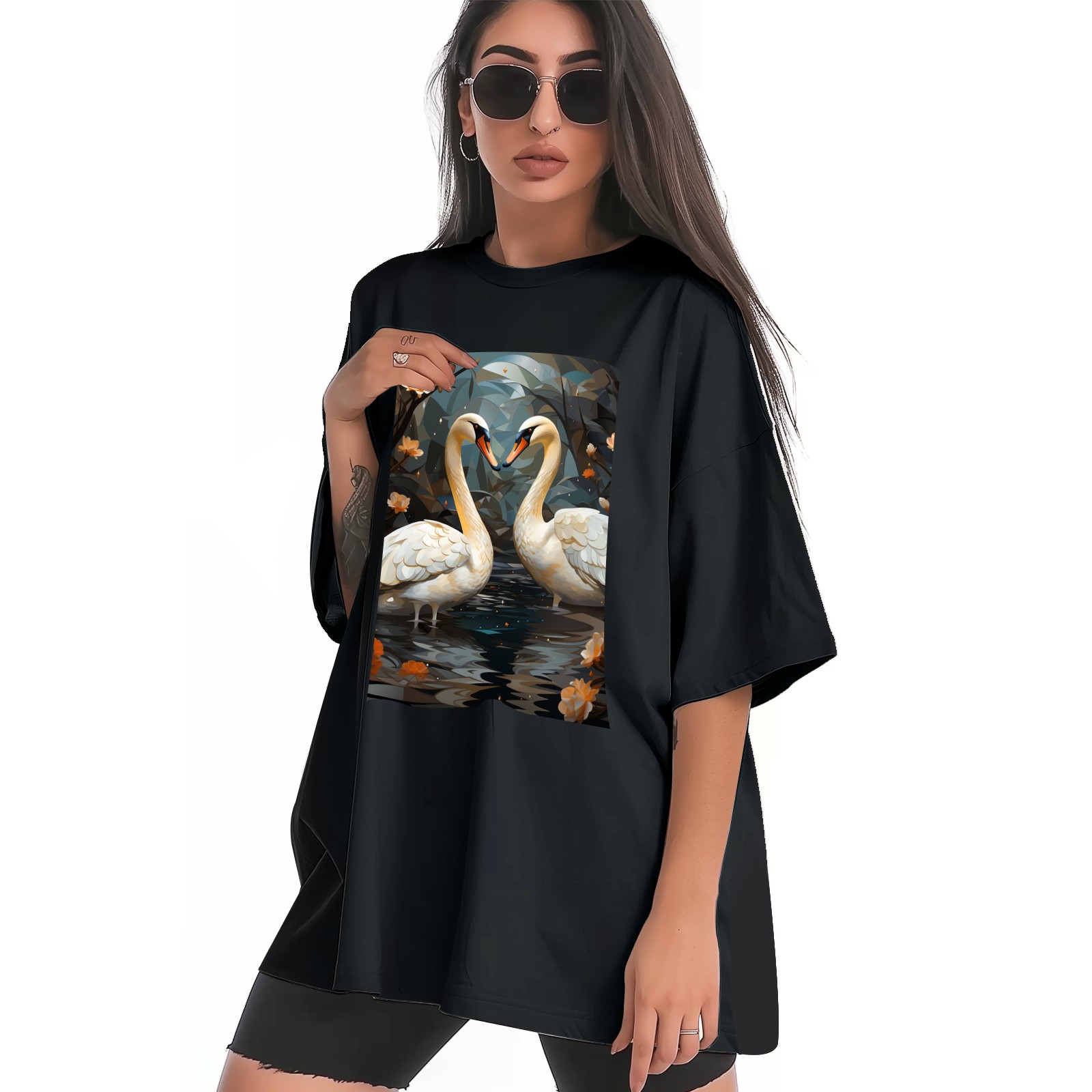 Plus Size Shirt for Women Black Tops for Women Short Sleeves Shirt for Women Swans (19) T Shirt Crewneck Shirt for Women XS