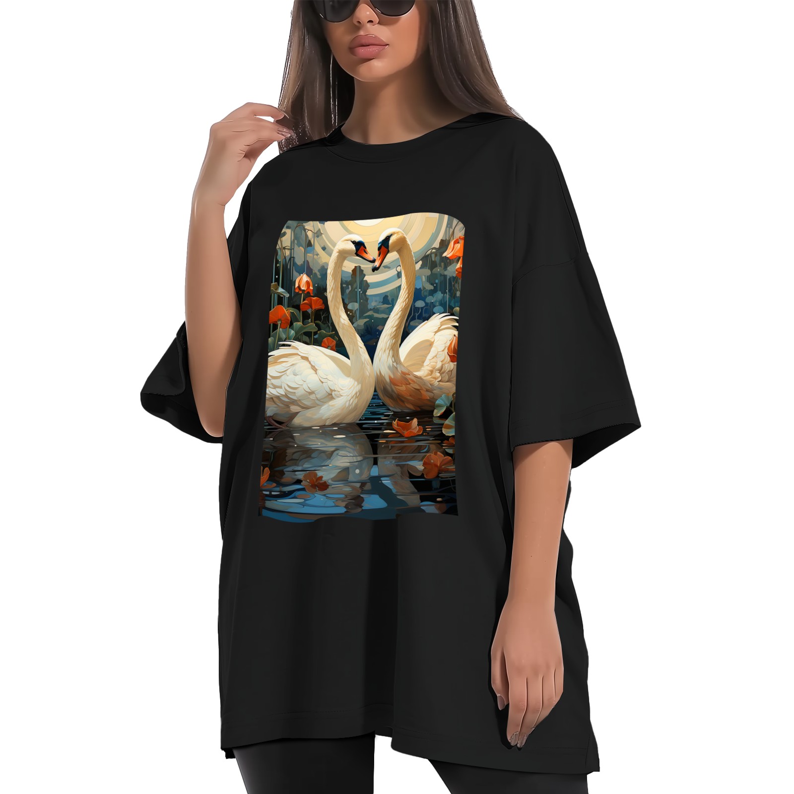 Plus Size Shirt for Women Black Tops for Women Short Sleeves Shirt for Women Swans (17) T Shirt Crewneck Shirt for Women XS