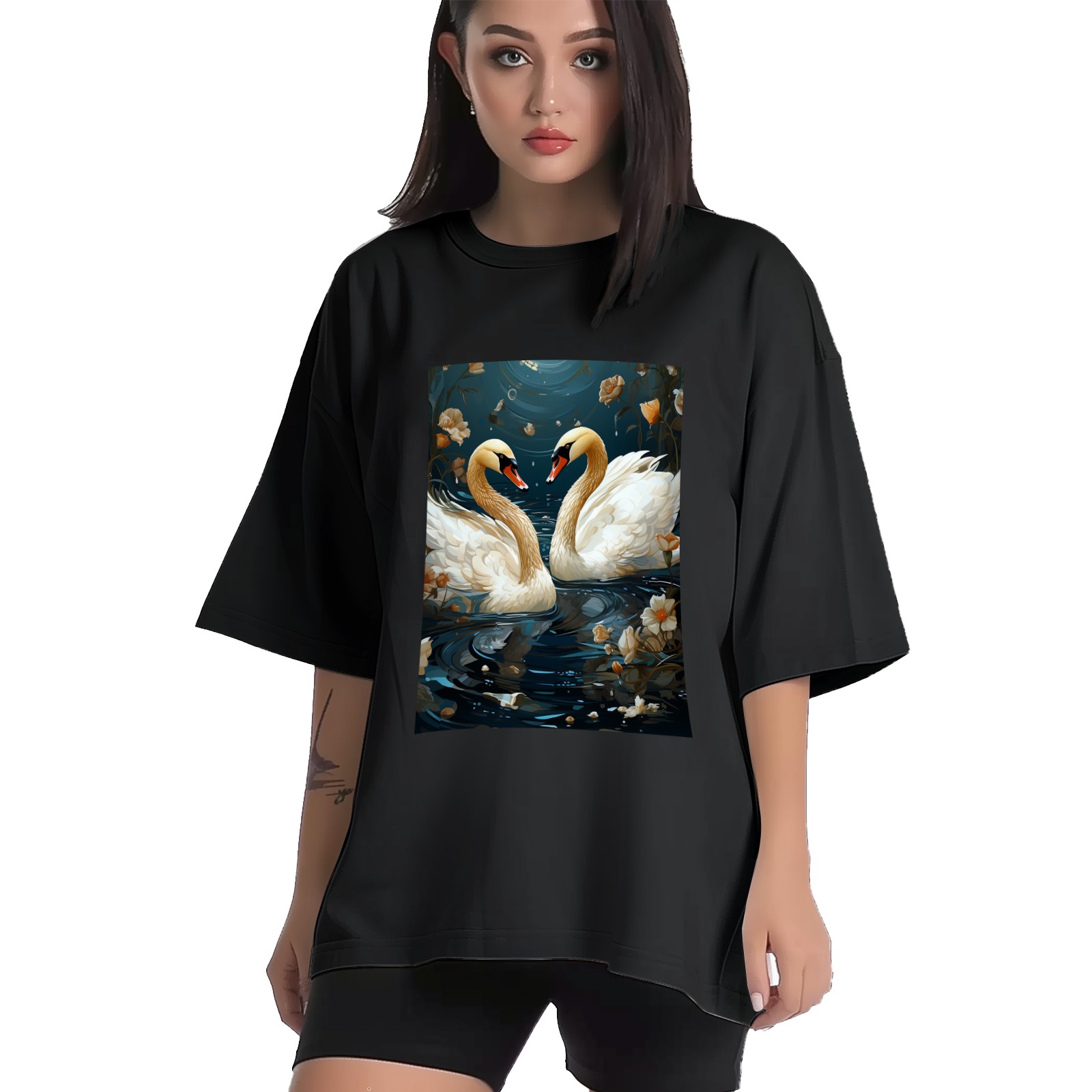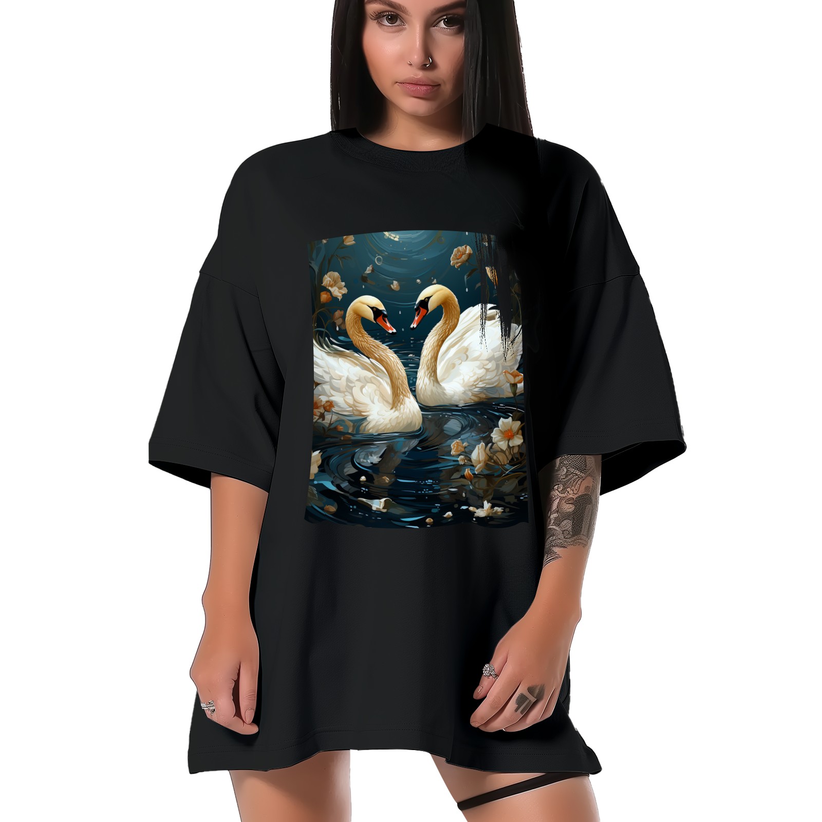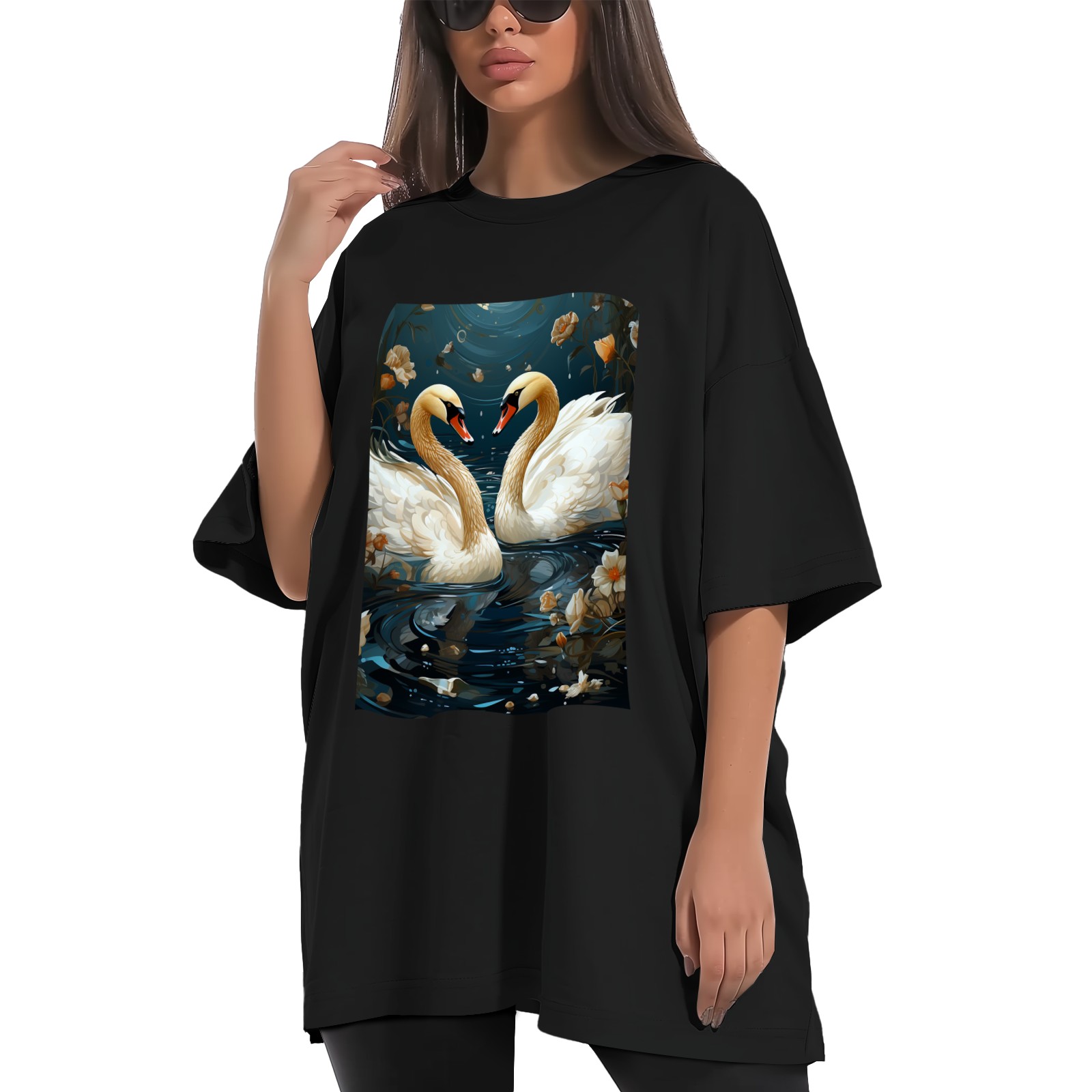 Plus Size Shirt for Women Black Tops for Women Short Sleeves Shirt for Women Swans (18) T Shirt Crewneck Shirt for Women XS