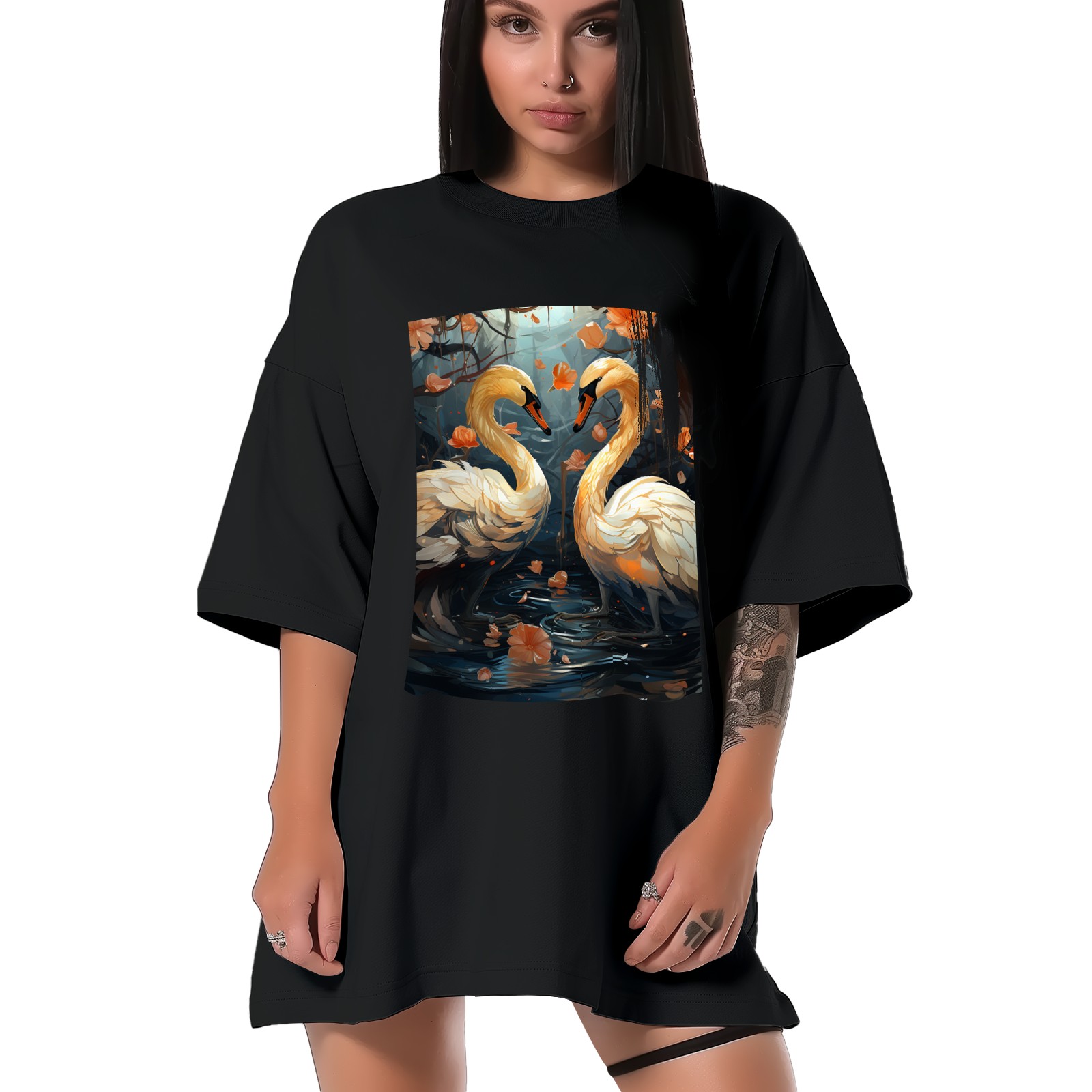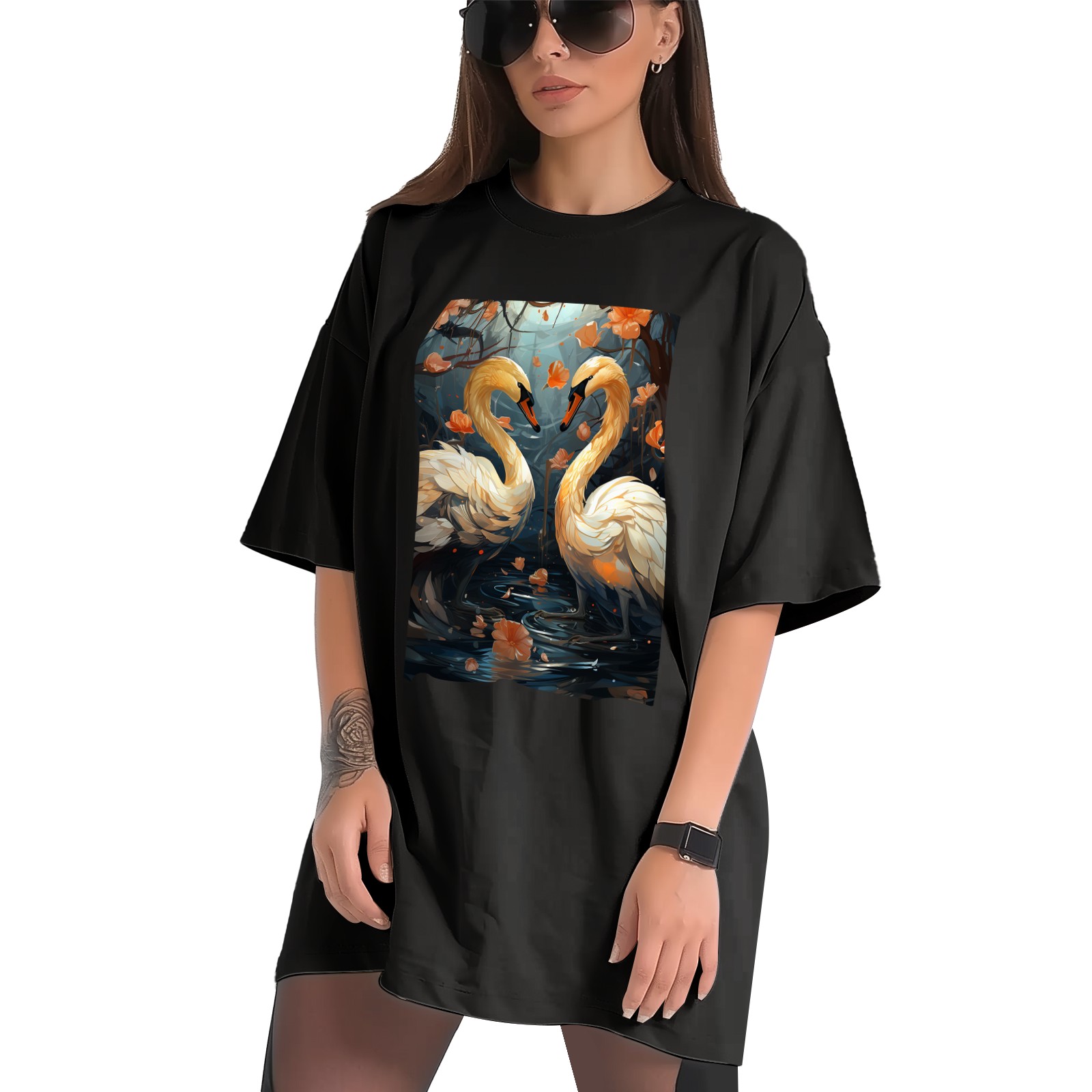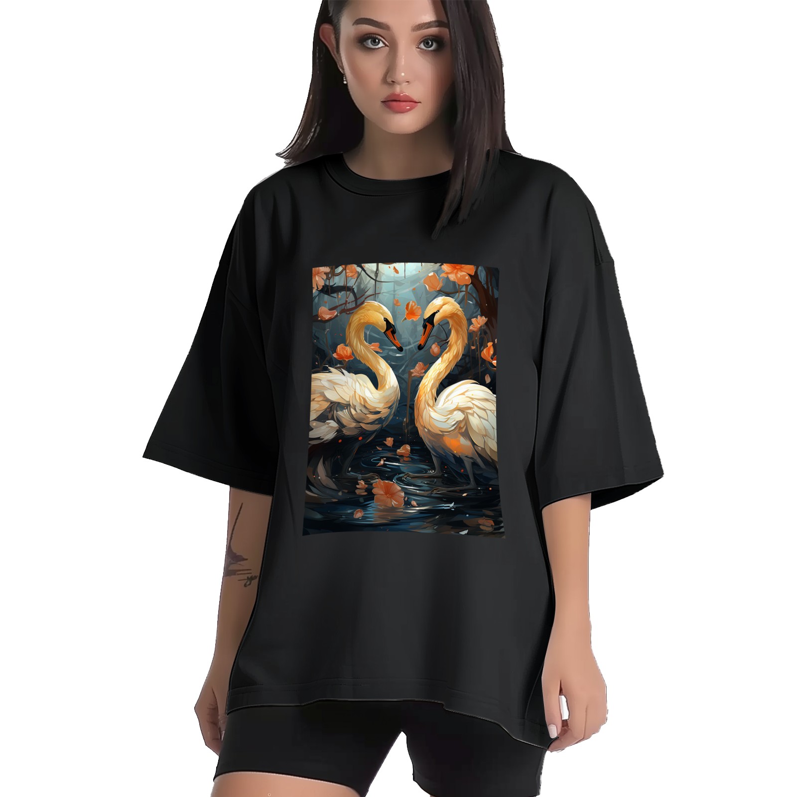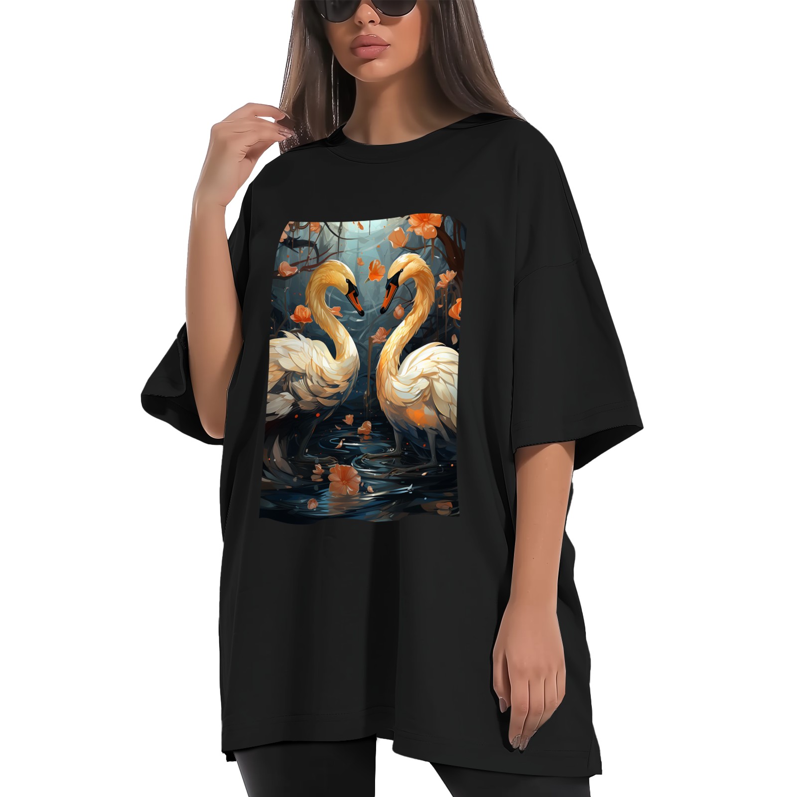 Plus Size Shirt for Women Black Tops for Women Short Sleeves Shirt for Women Swans (16) T Shirt Crewneck Shirt for Women XS