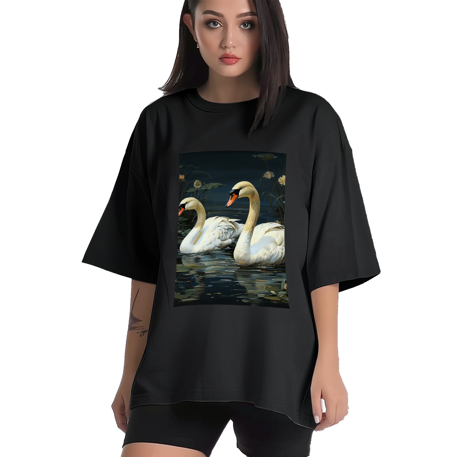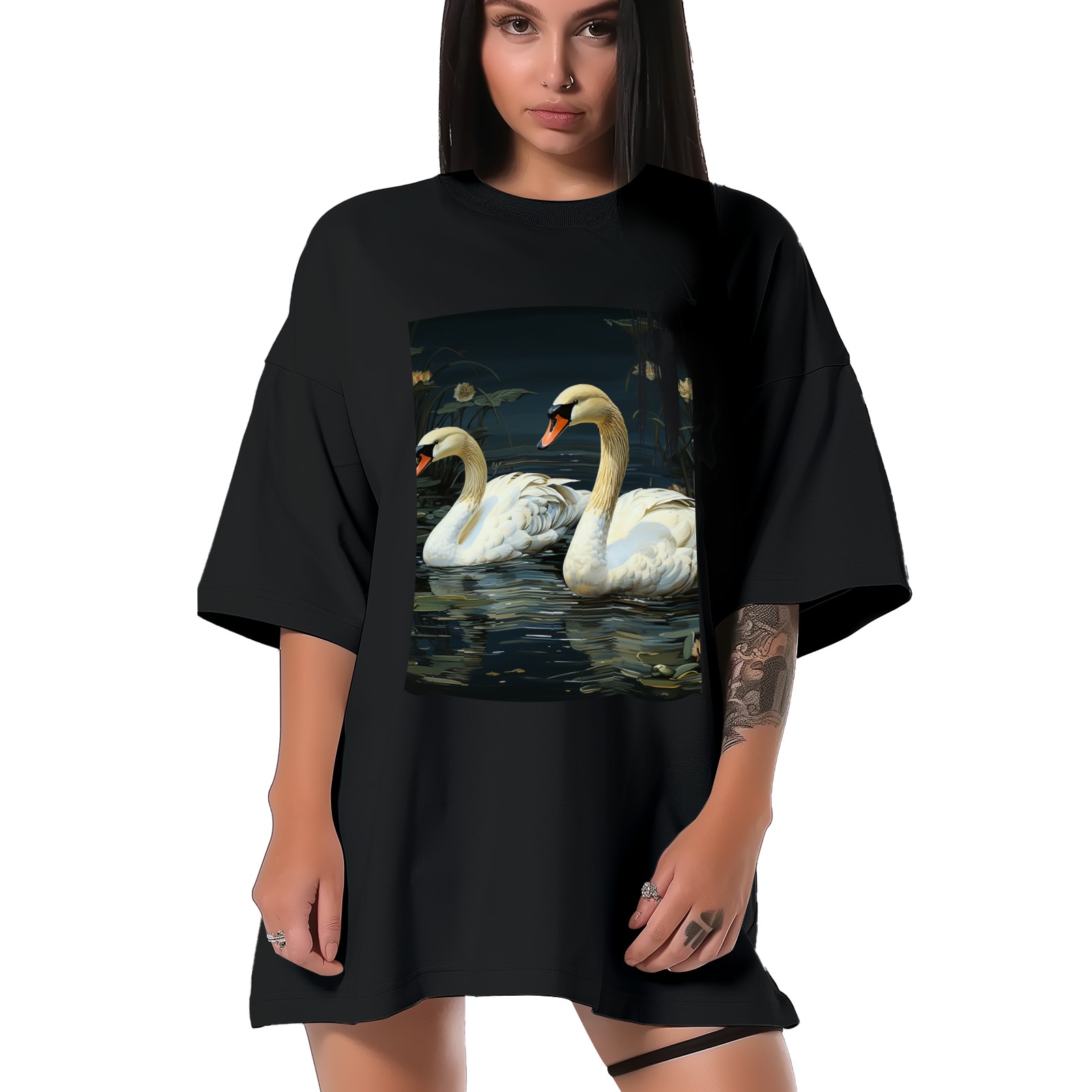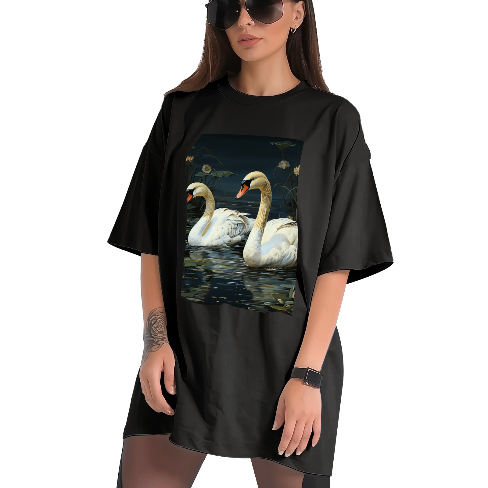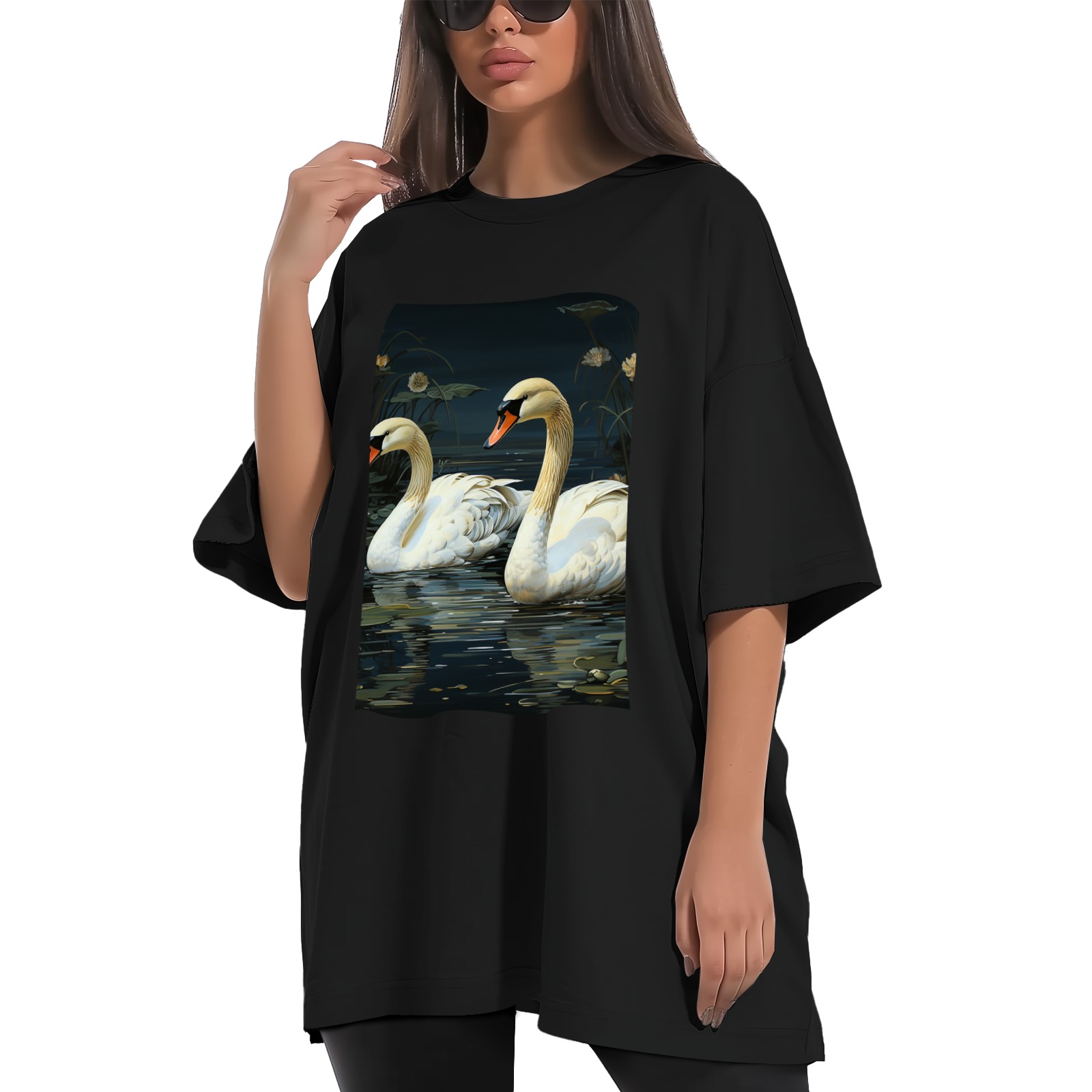 Plus Size Shirt for Women Black Tops for Women Short Sleeves Shirt for Women Swans (14) T Shirt Crewneck Shirt for Women XS