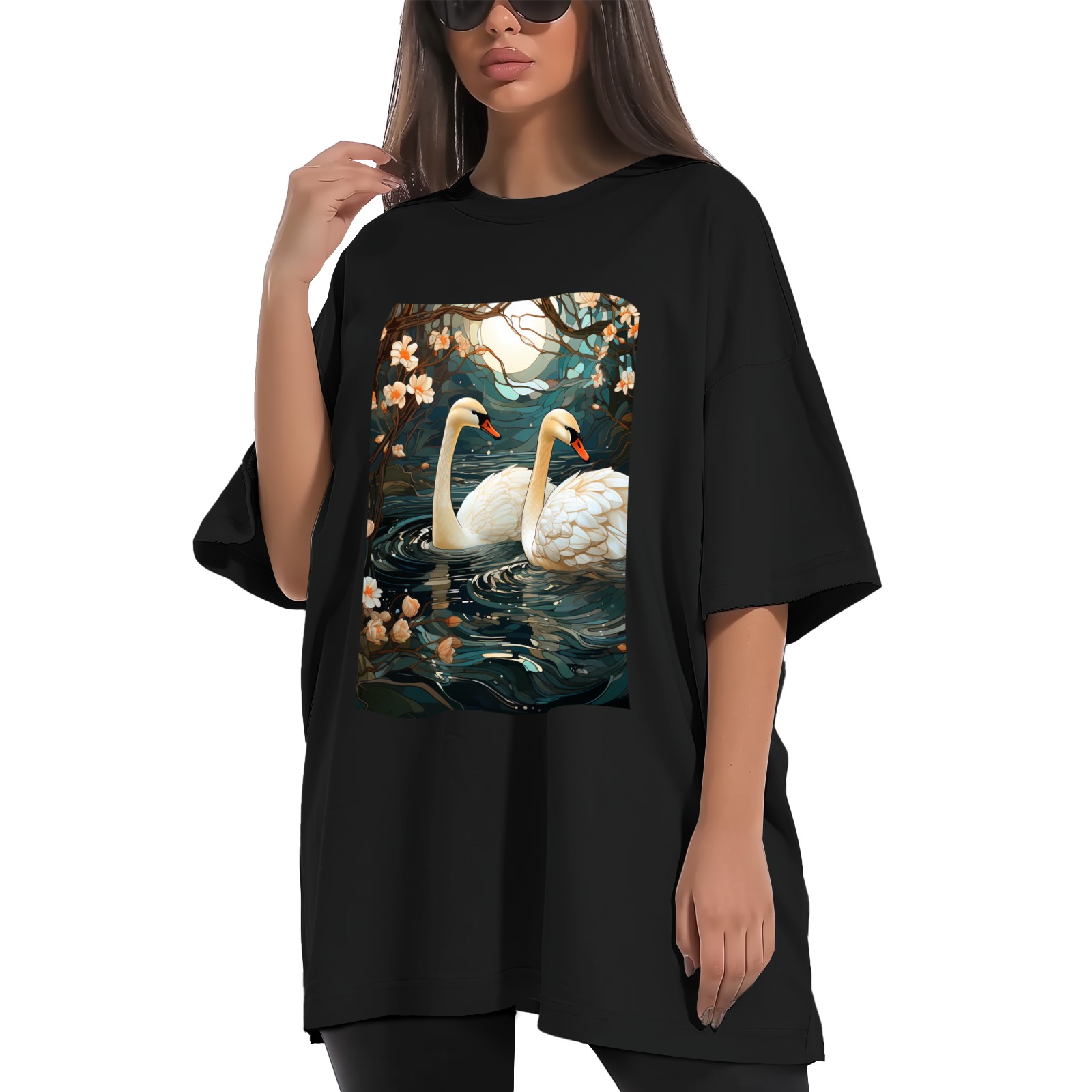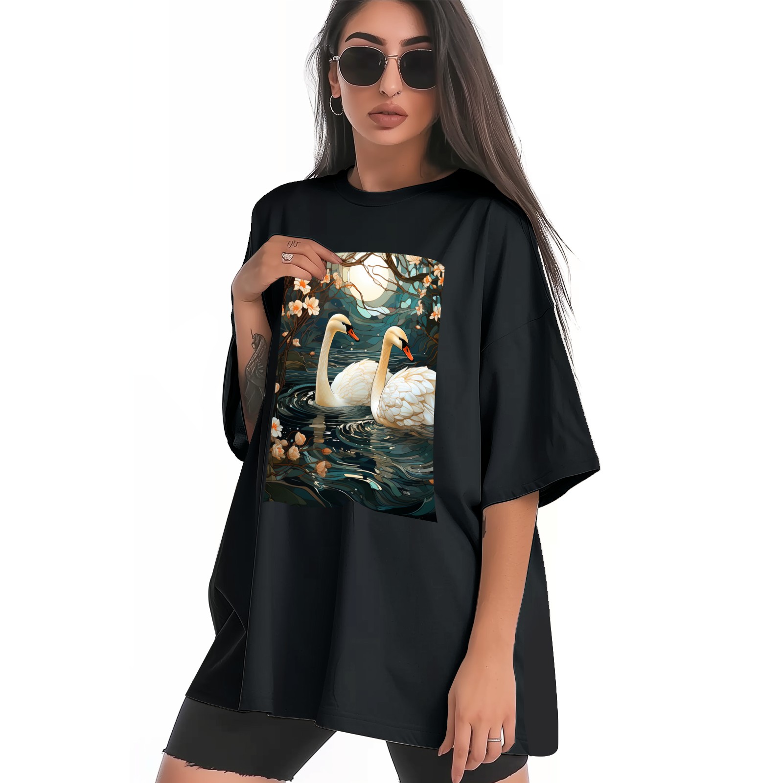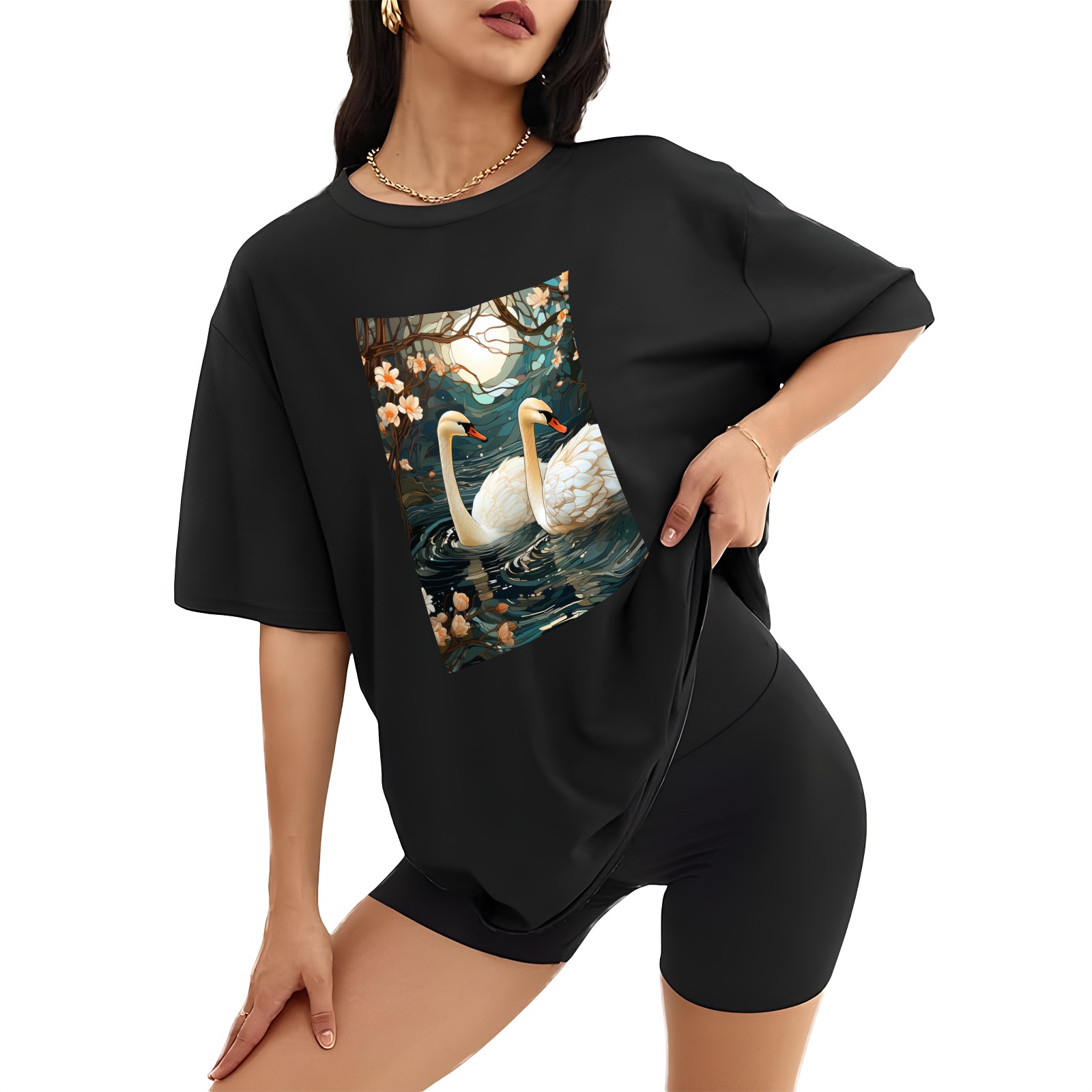 Plus Size Shirt for Women Black Tops for Women Short Sleeves Shirt for Women Swans (11) T Shirt Crewneck Shirt for Women XS