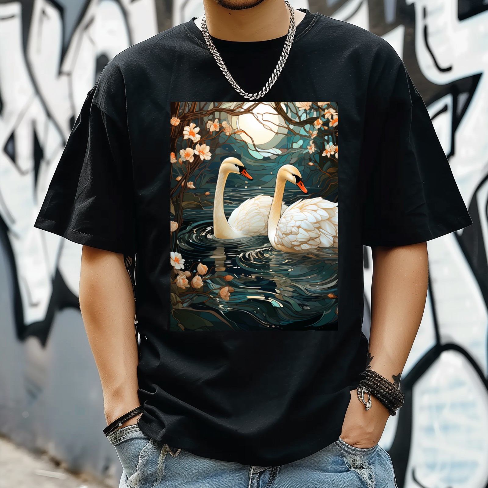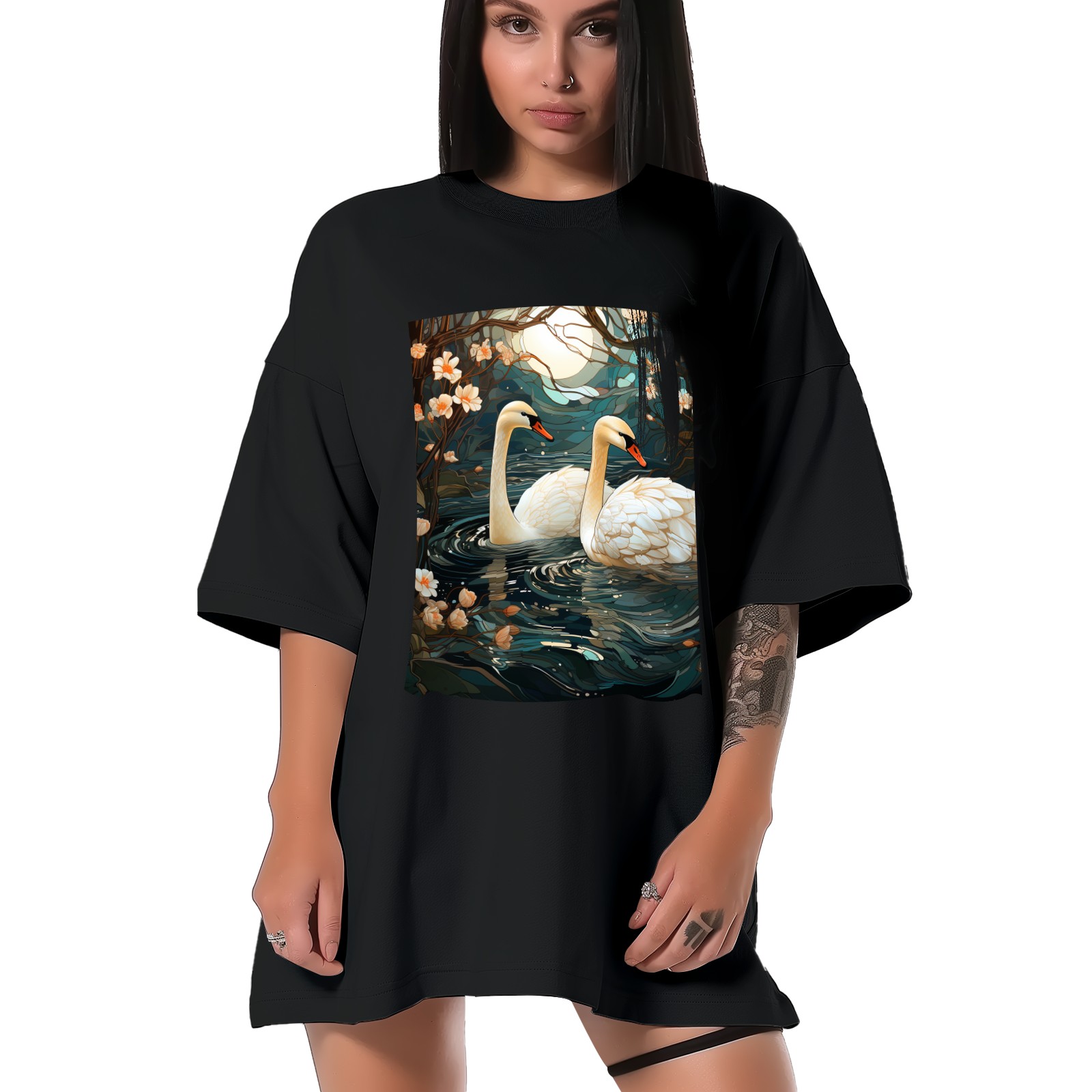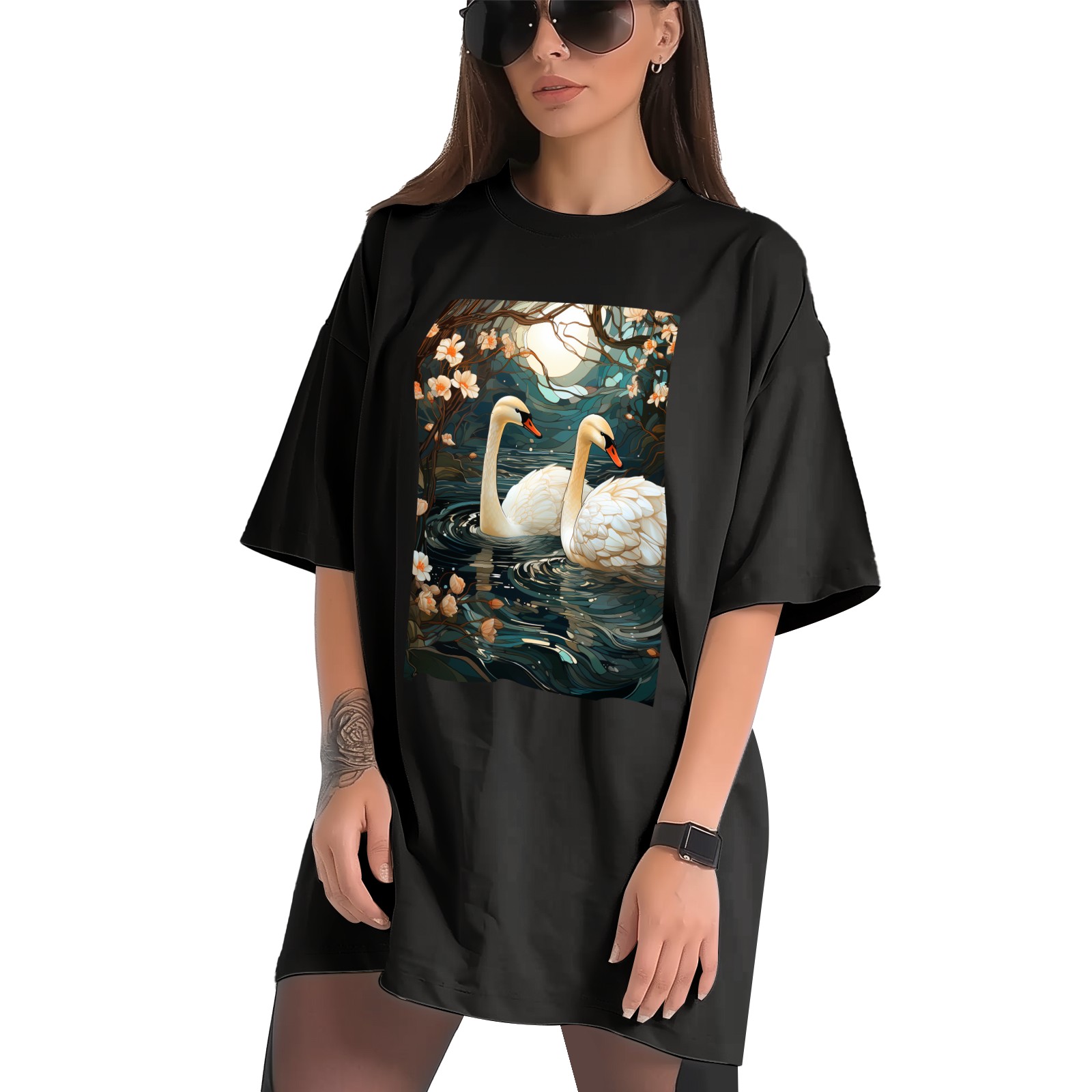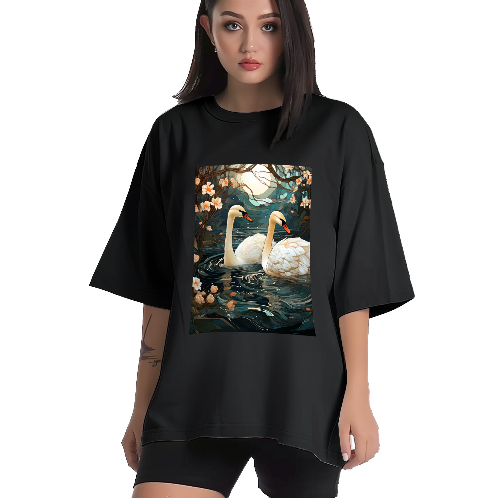 Plus Size Shirt for Women Black Tops for Women Short Sleeves Shirt for Women Swans (11) T Shirt Crewneck Shirt for Women XS