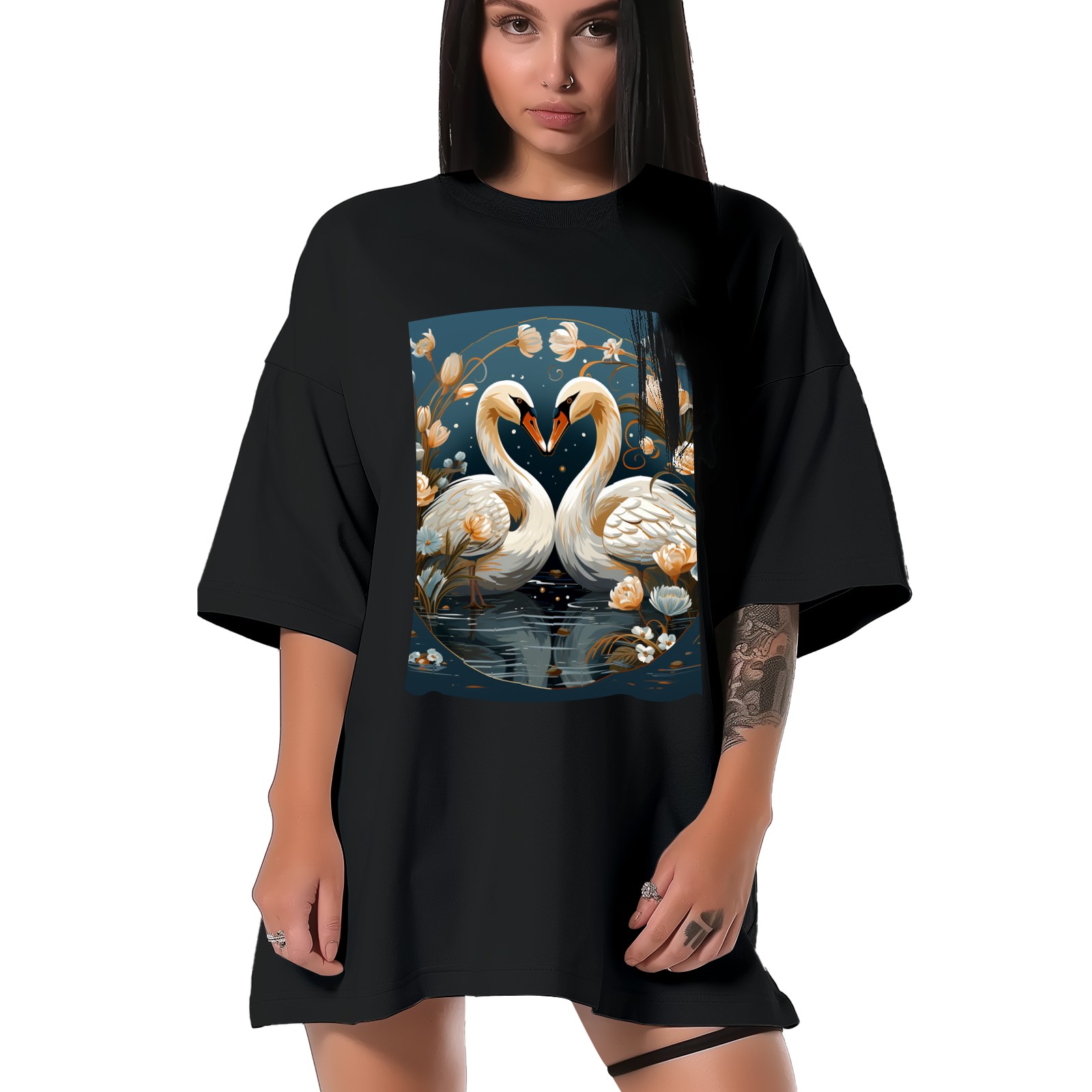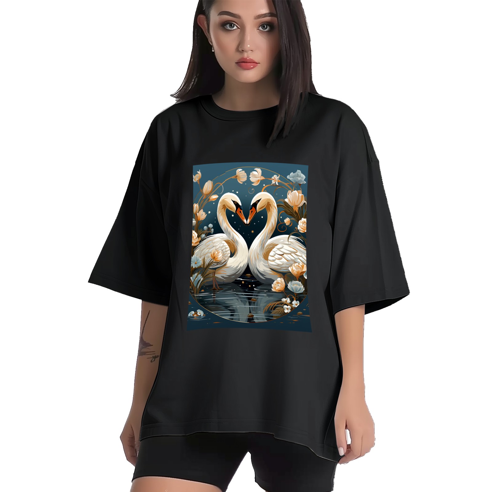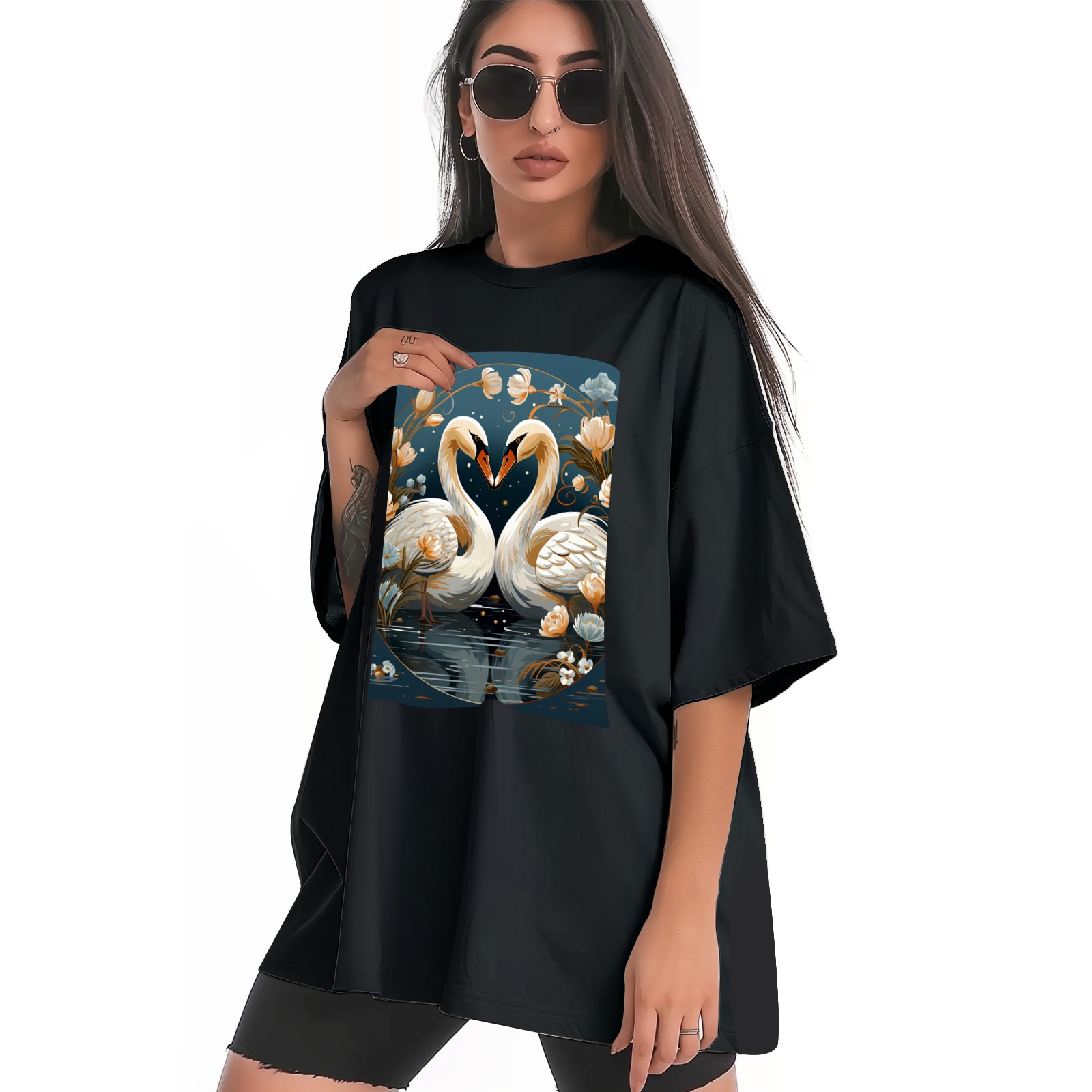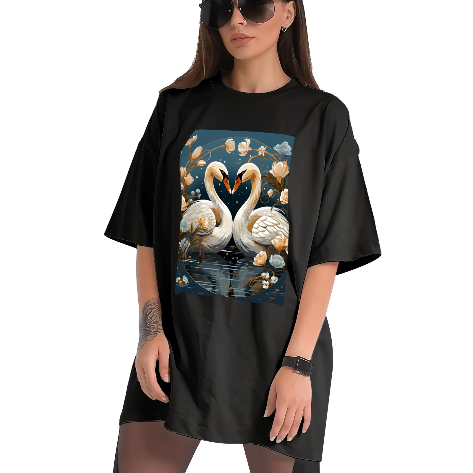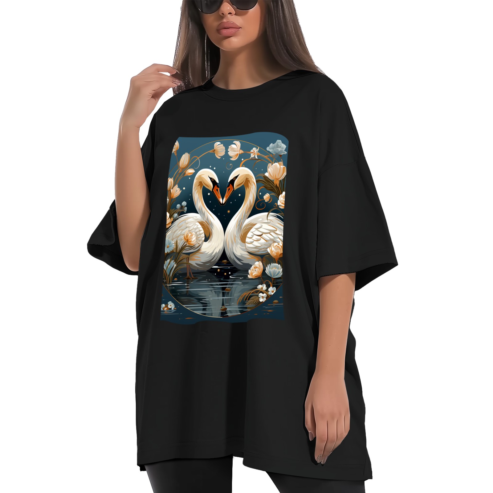 Plus Size Shirt for Women Black Tops for Women Short Sleeves Shirt for Women Swans (10) T Shirt Crewneck Shirt for Women XS