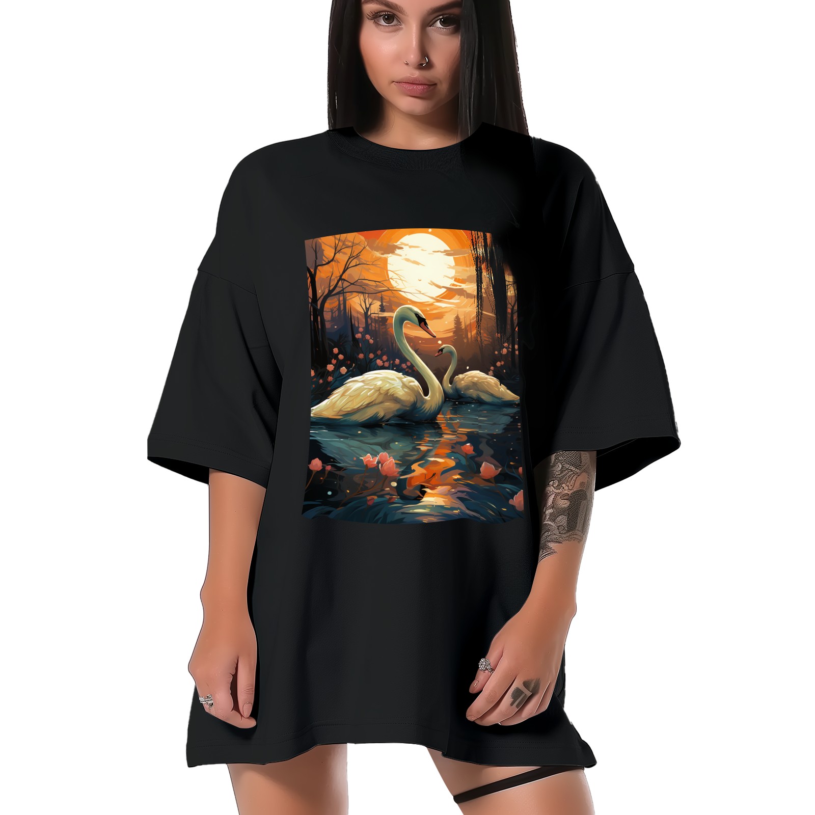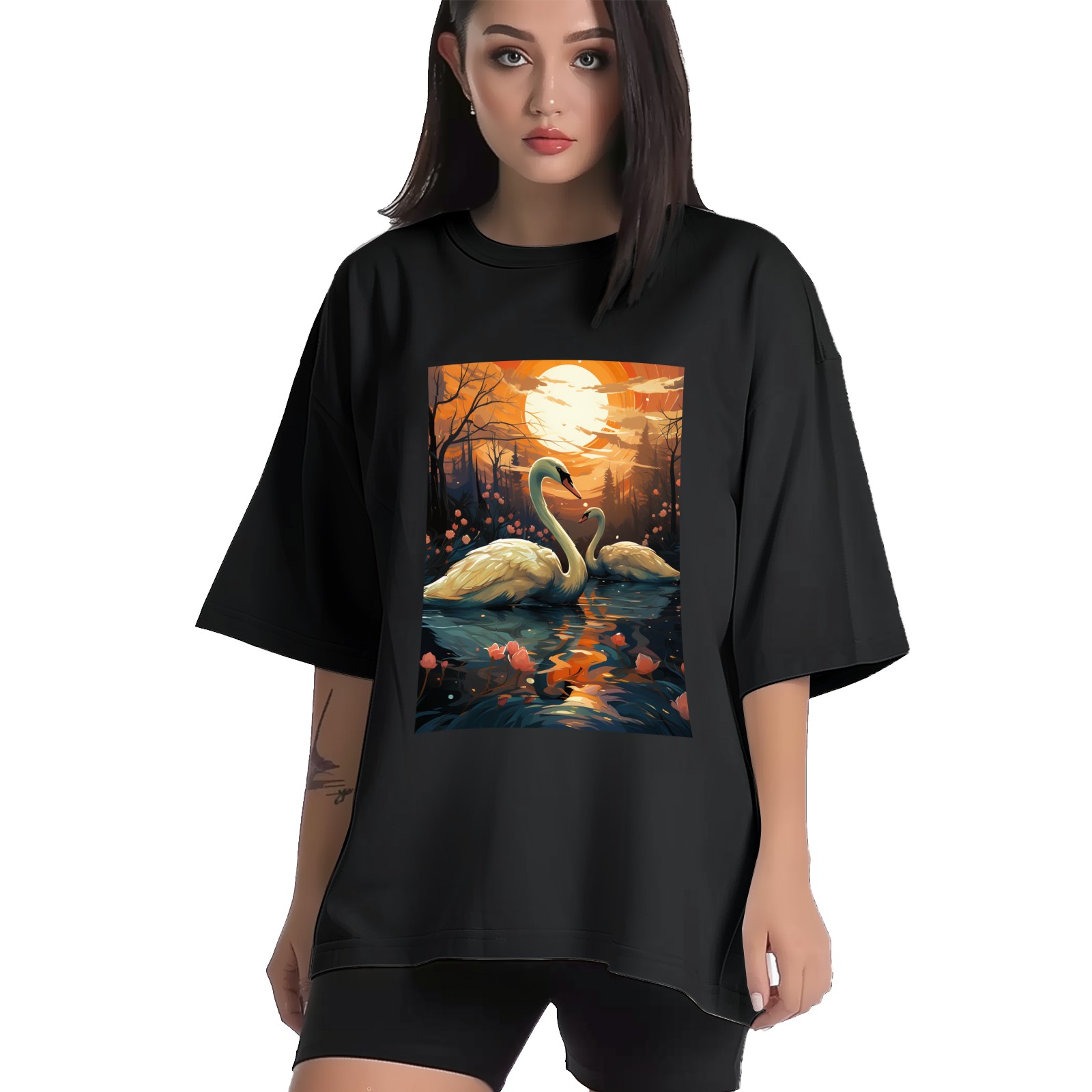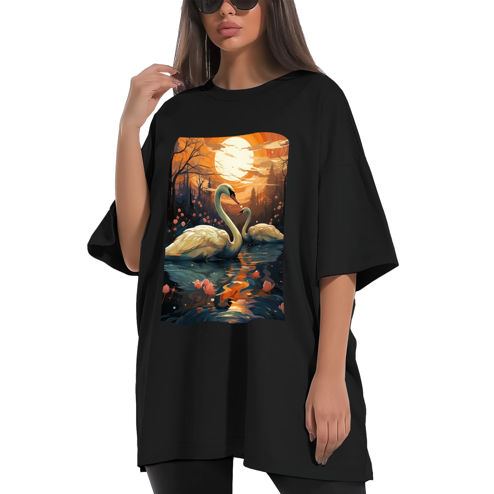 Plus Size Shirt for Women Black Tops for Women Short Sleeves Shirt for Women Swans (9) T Shirt Crewneck Shirt for Women XS
