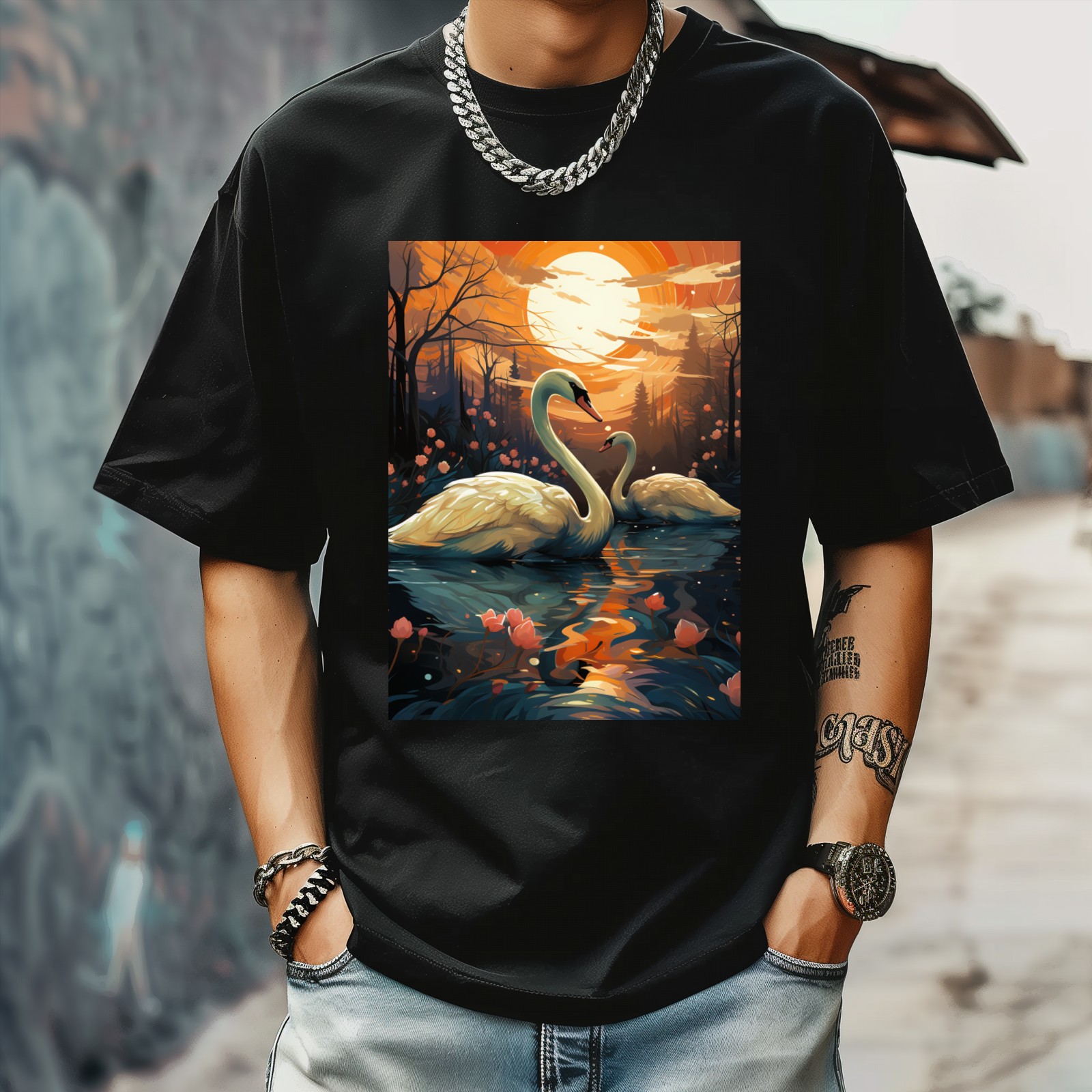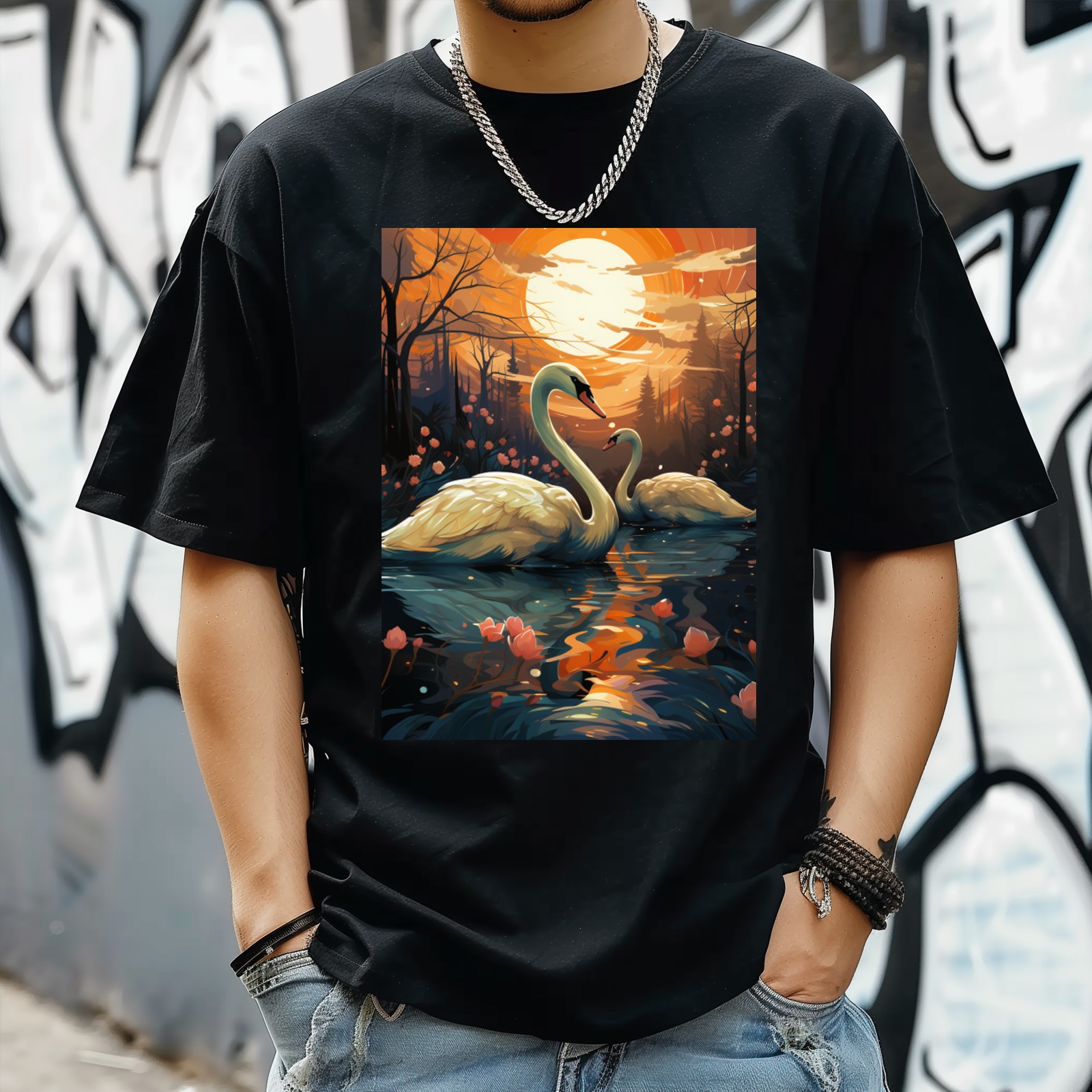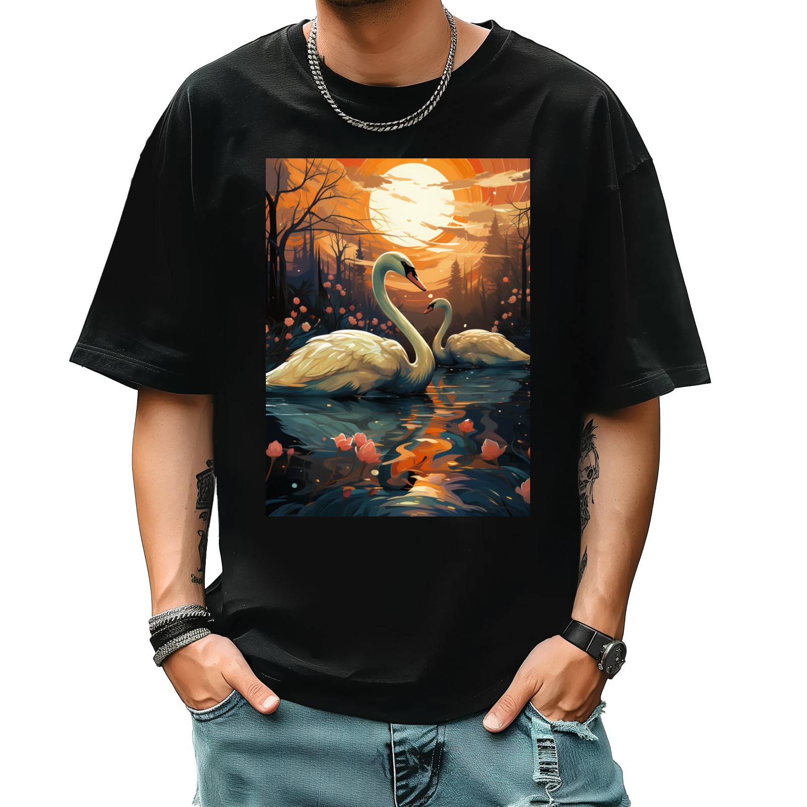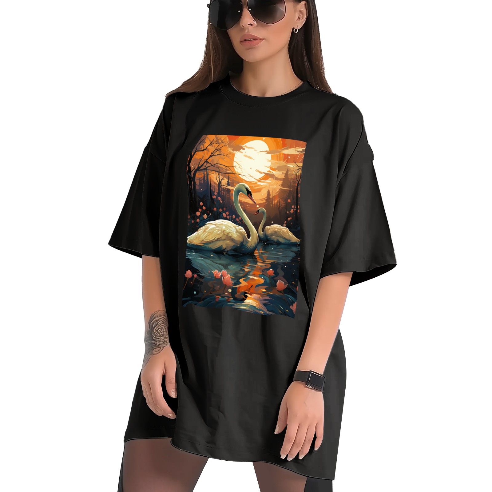 Plus Size Shirt for Women Black Tops for Women Short Sleeves Shirt for Women Swans (9) T Shirt Crewneck Shirt for Women XS