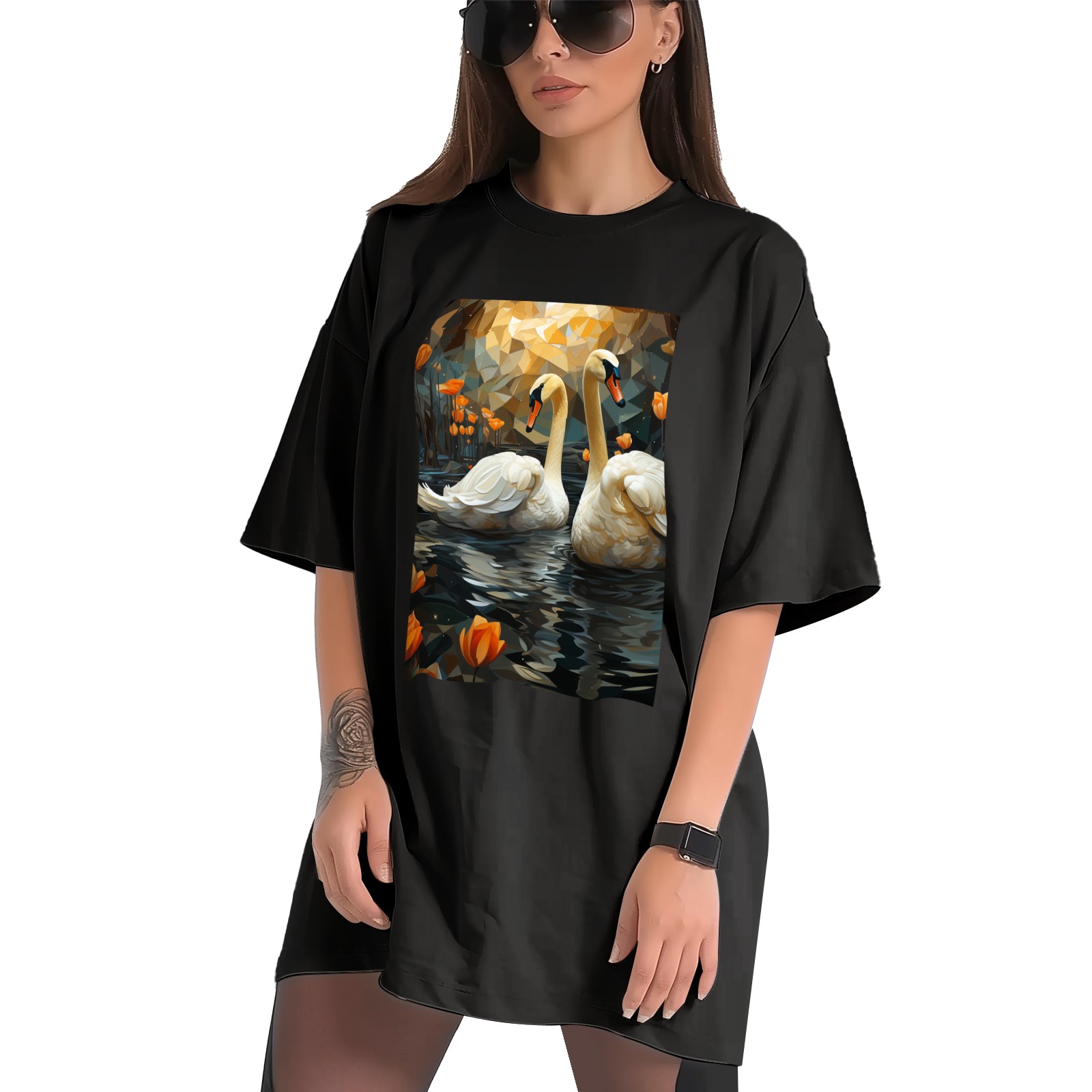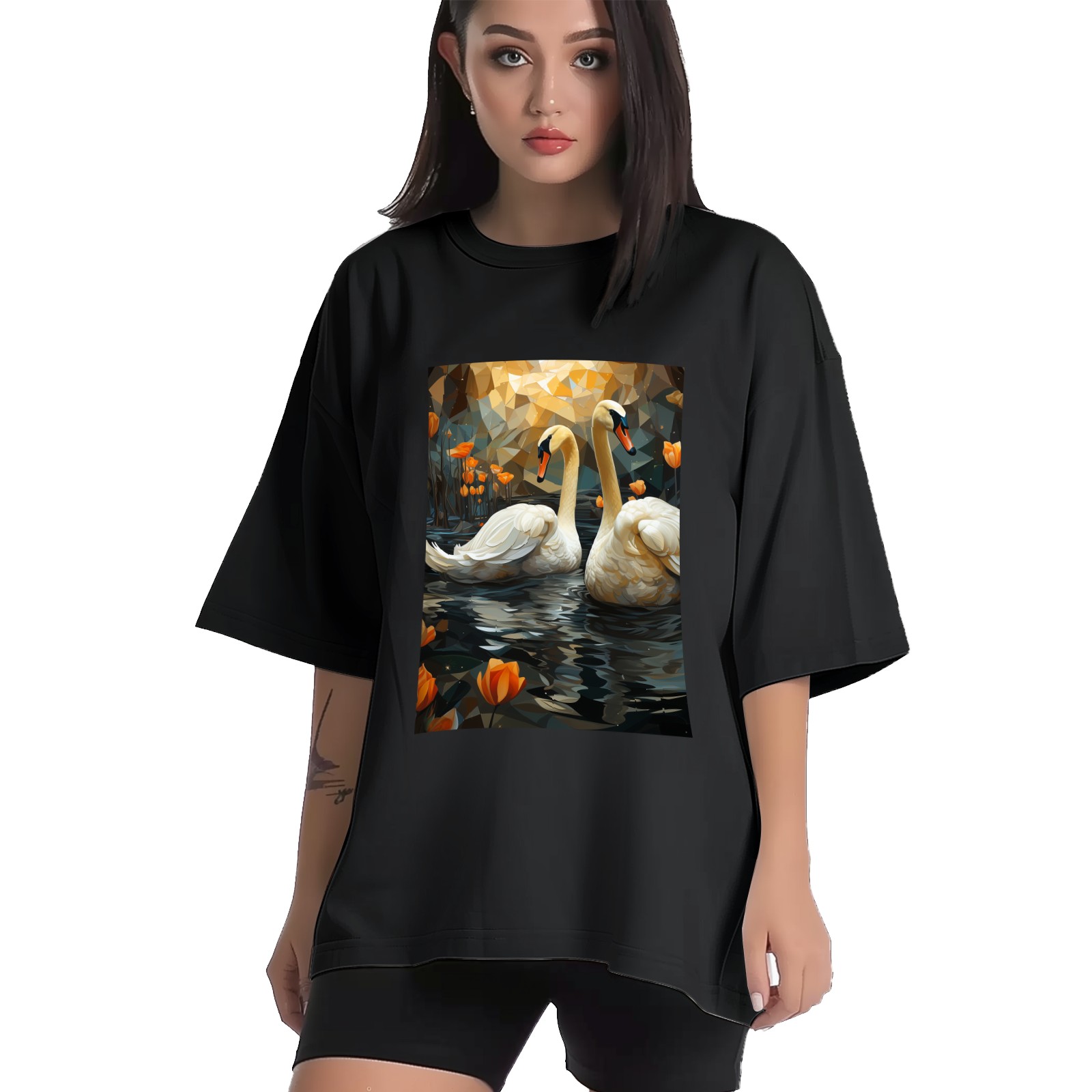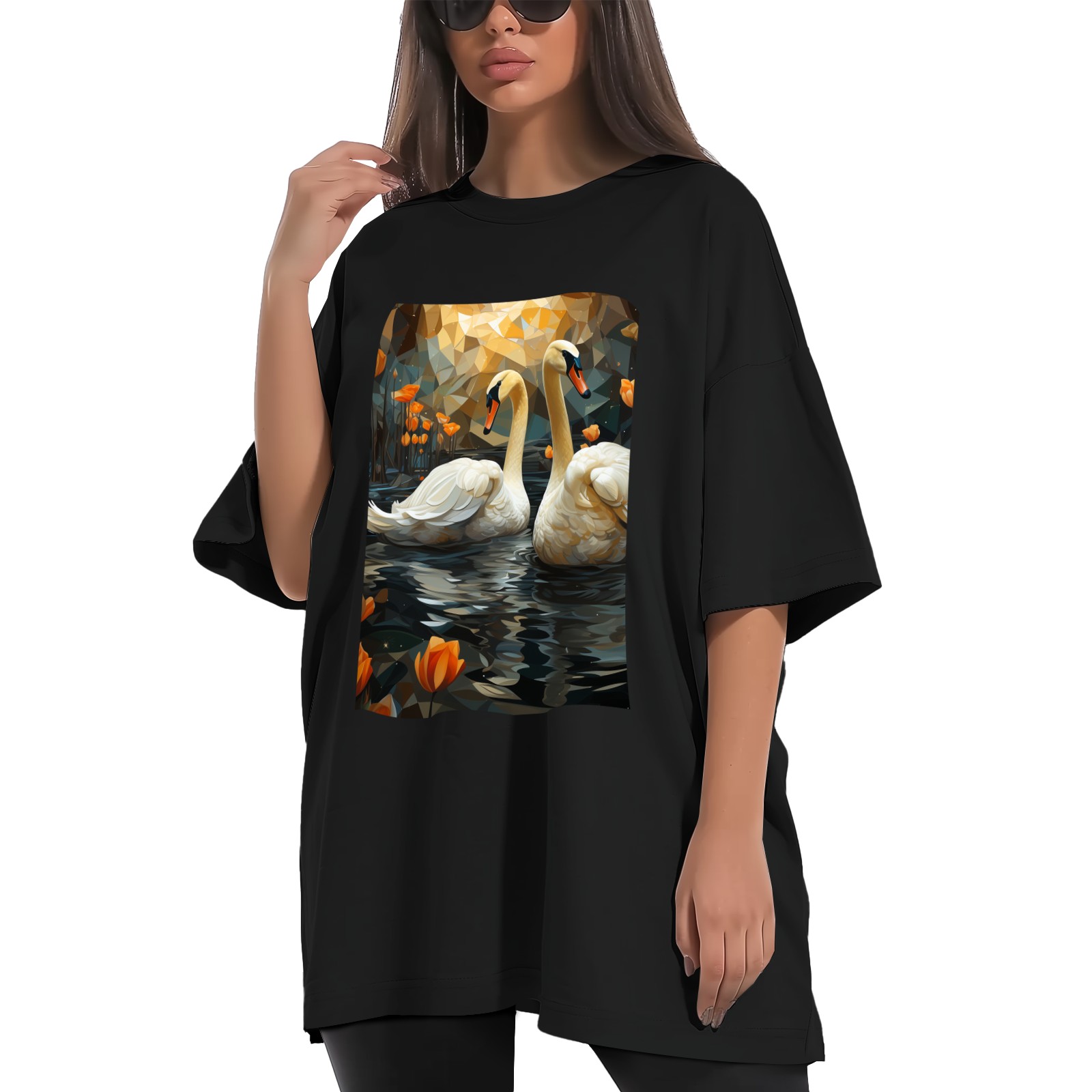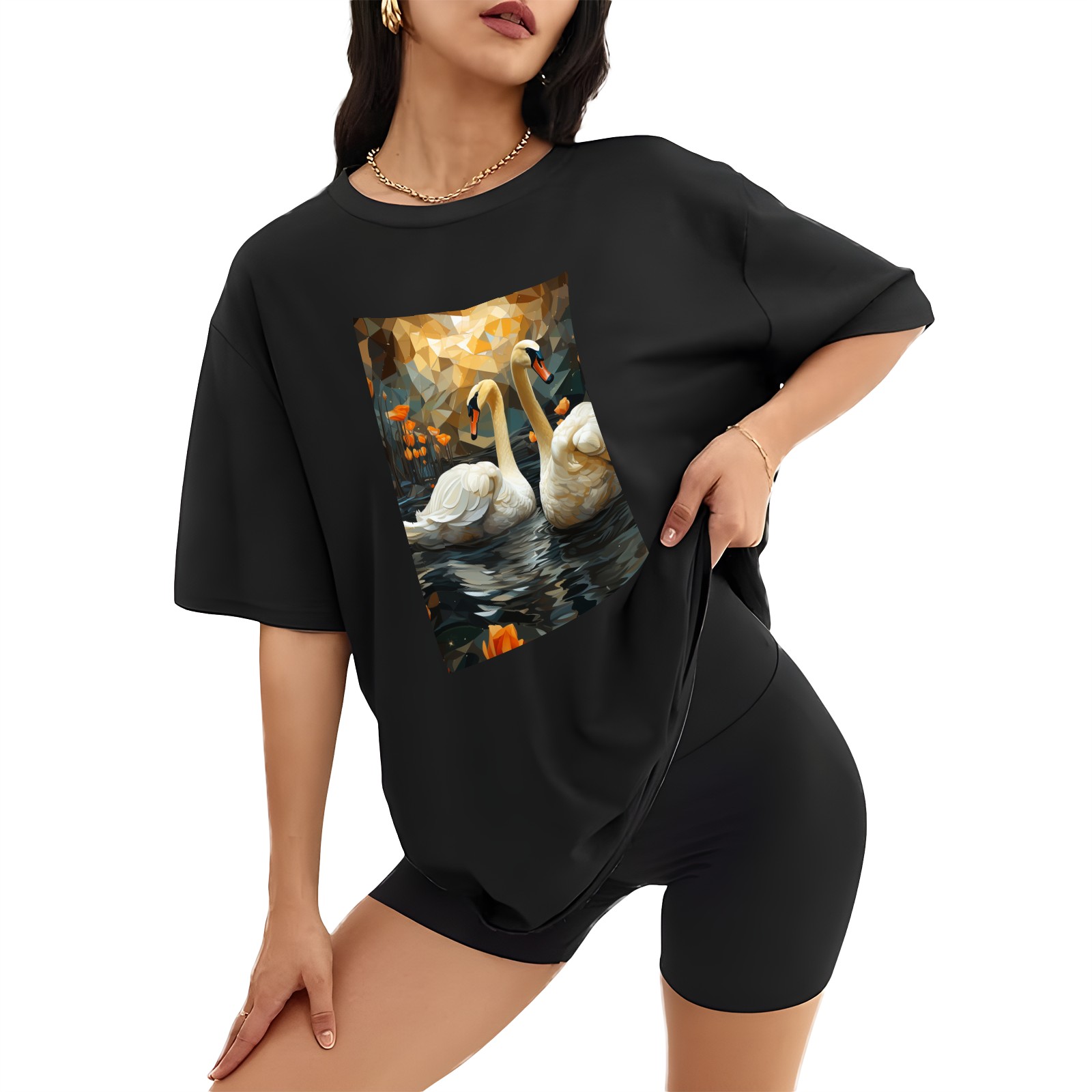 Plus Size Shirt for Women Black Tops for Women Short Sleeves Shirt for Women Swans (7) T Shirt Crewneck Shirt for Women XS