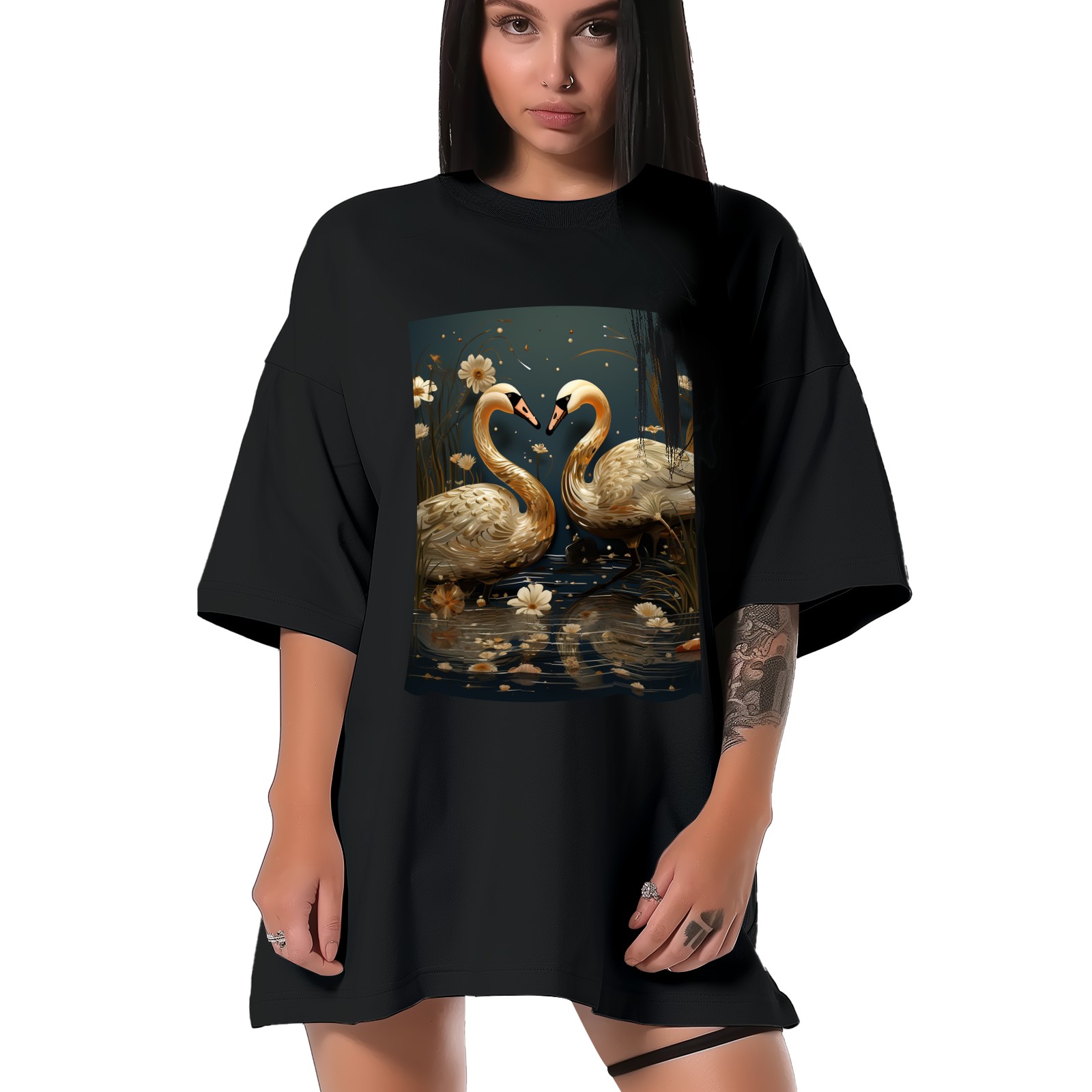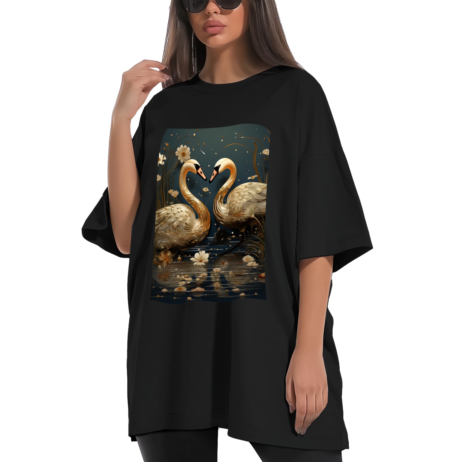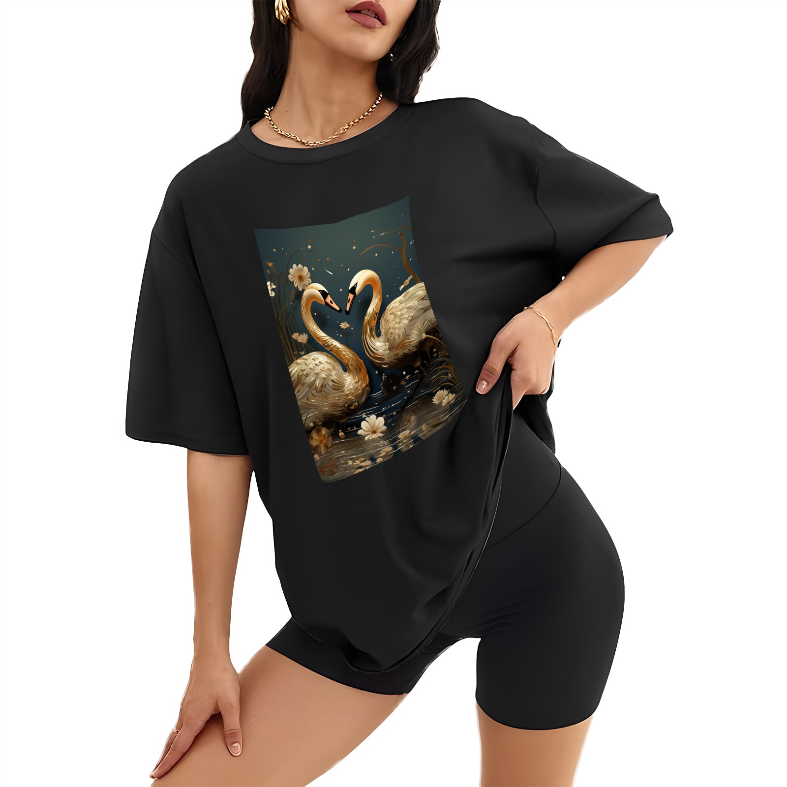 Plus Size Shirt for Women Black Tops for Women Short Sleeves Shirt for Women Swans (8) T Shirt Crewneck Shirt for Women XS