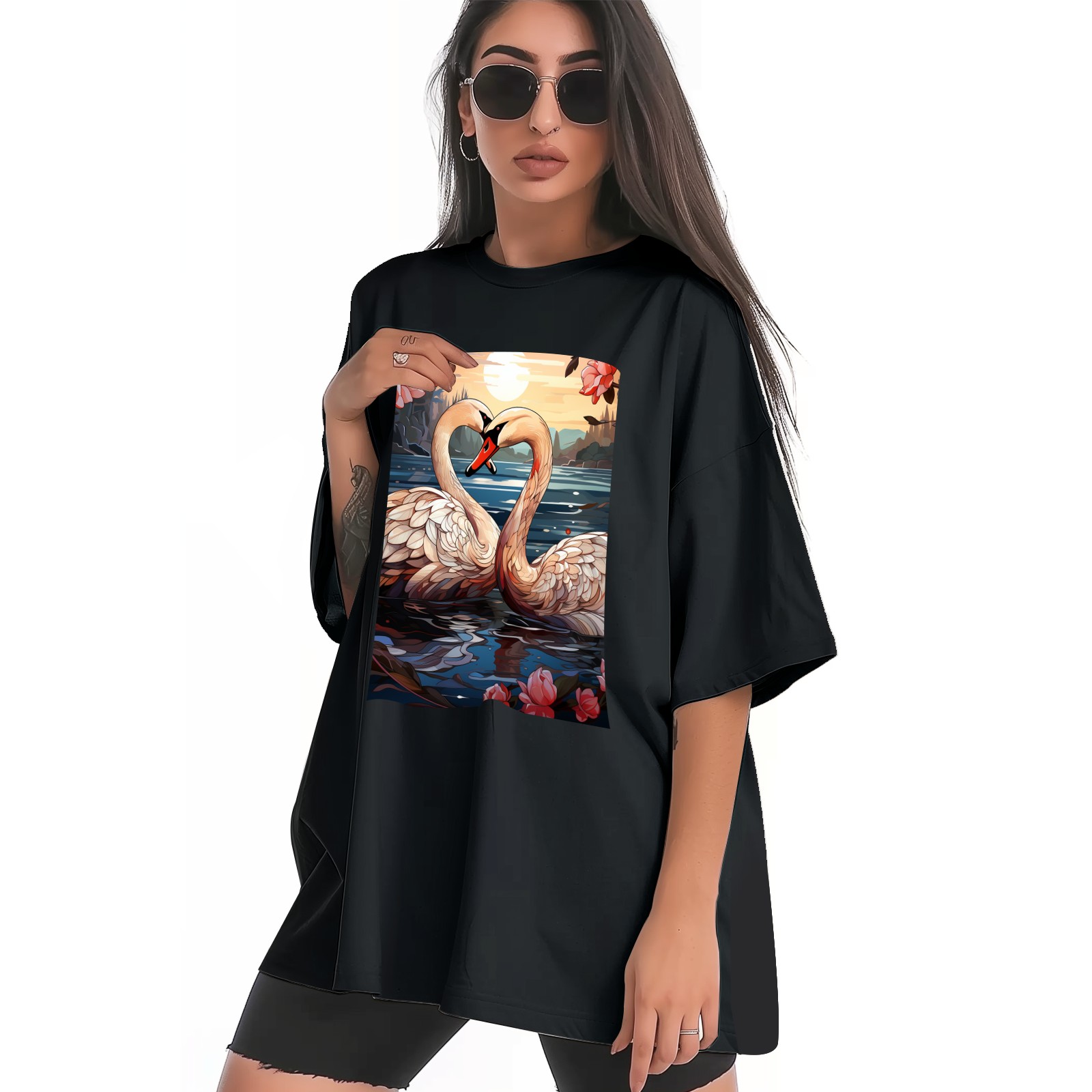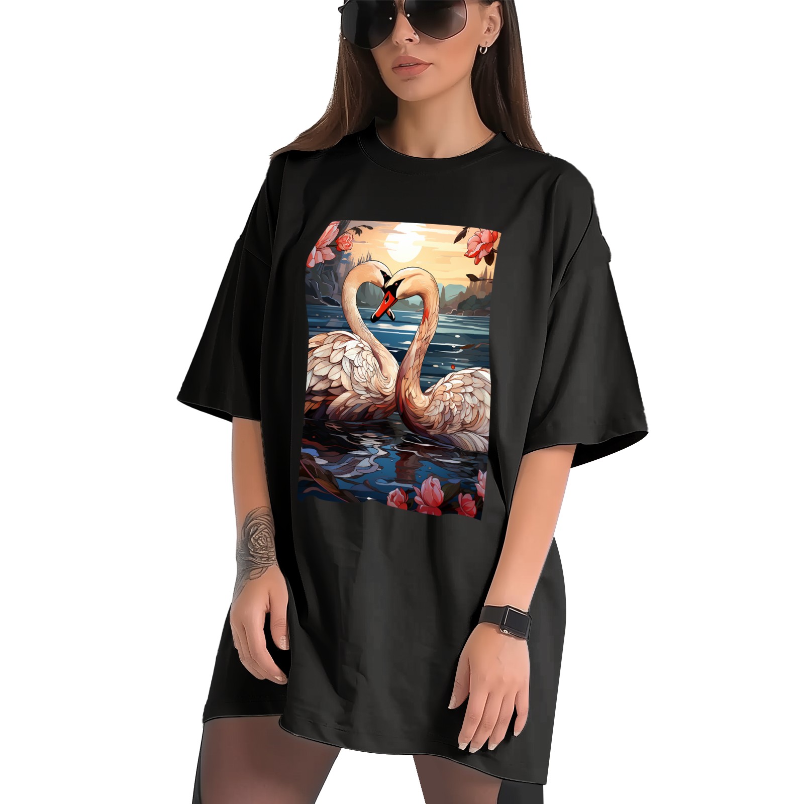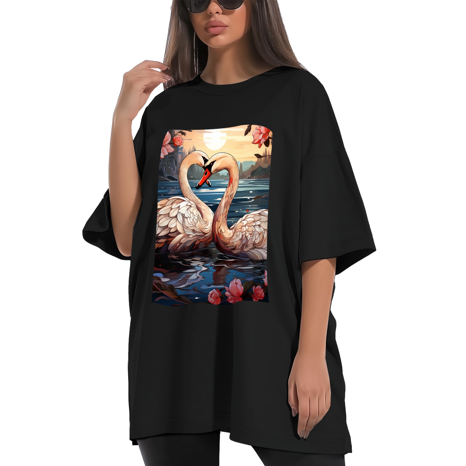 Plus Size Shirt for Women Black Tops for Women Short Sleeves Shirt for Women Swans (4) T Shirt Crewneck Shirt for Women XS