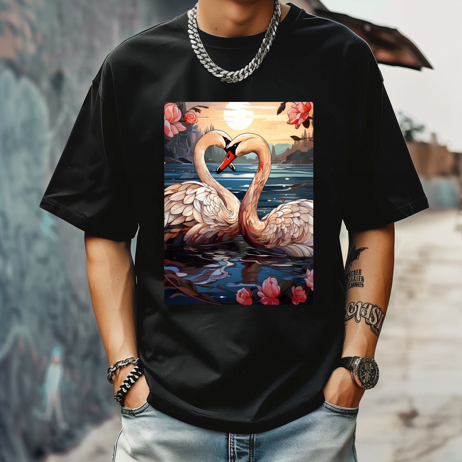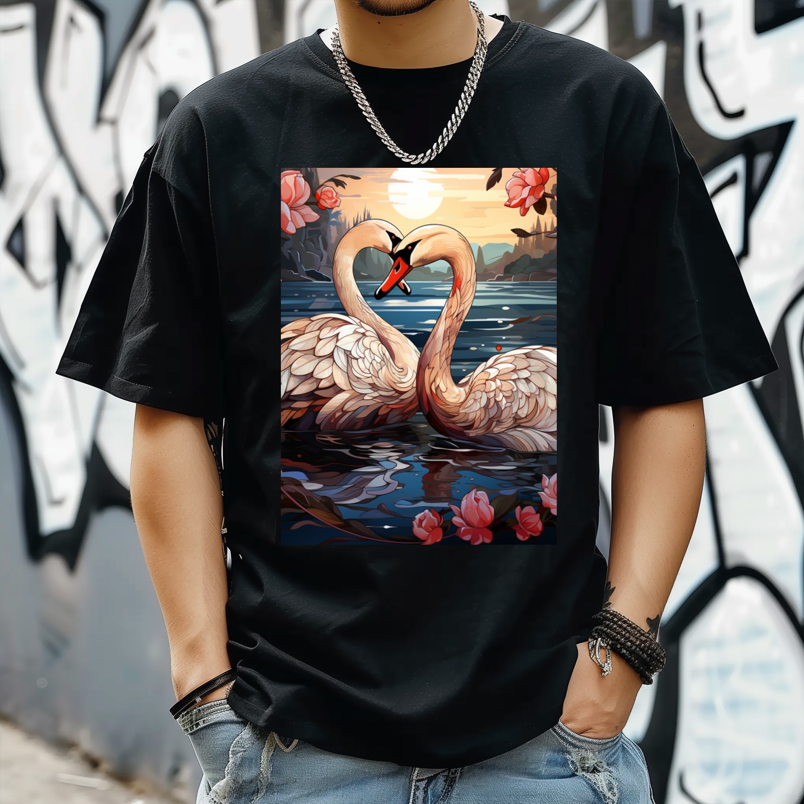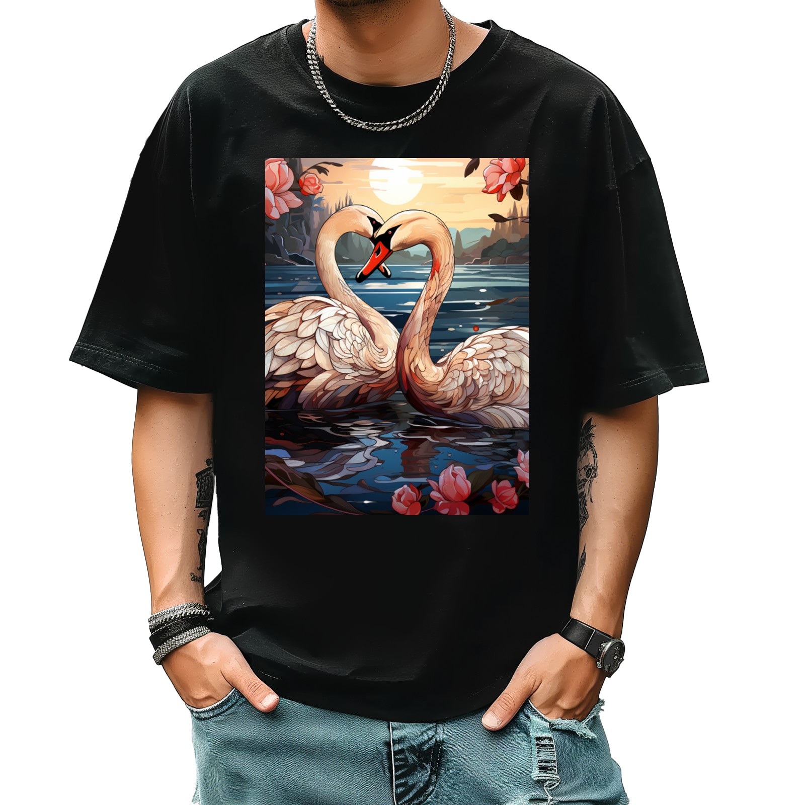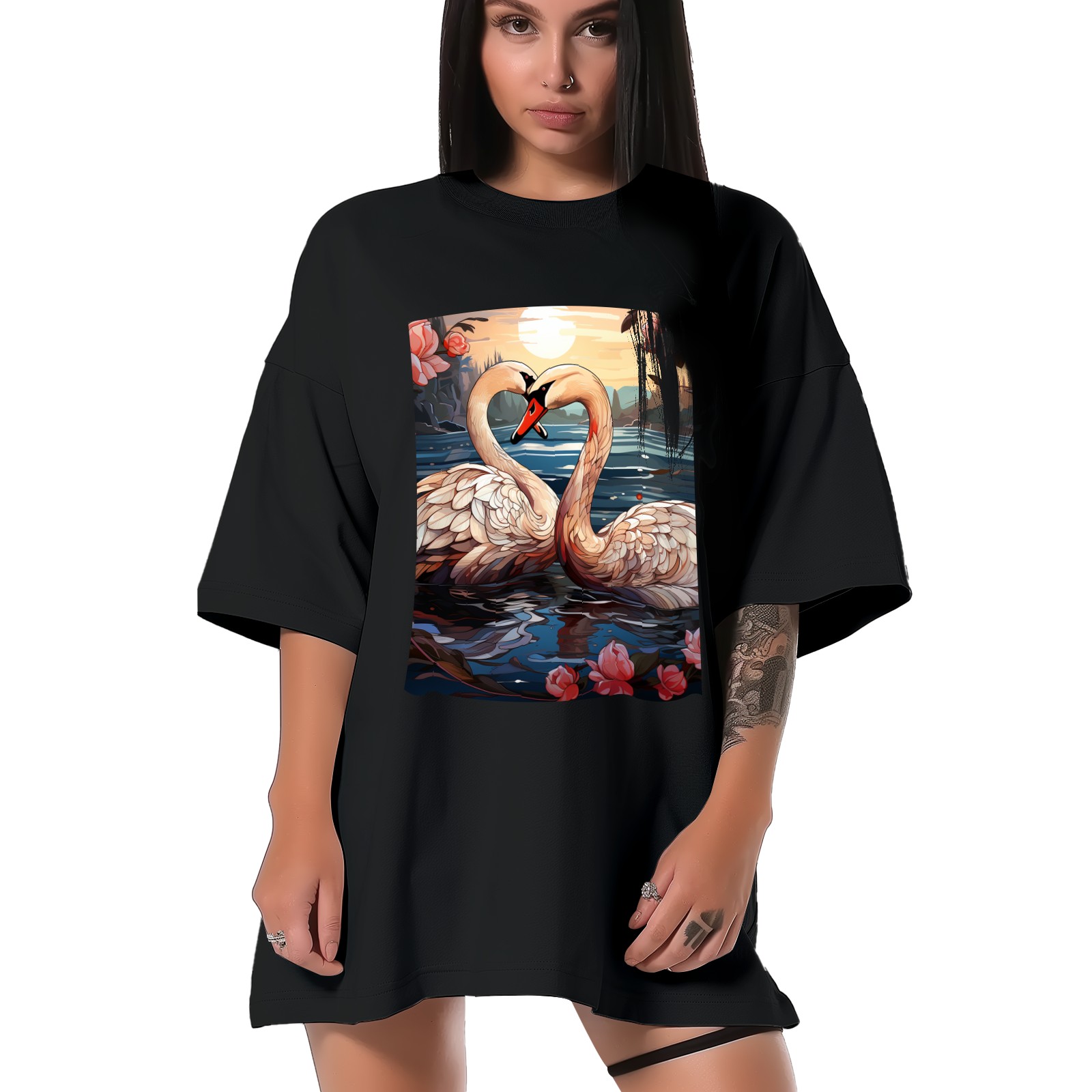 Plus Size Shirt for Women Black Tops for Women Short Sleeves Shirt for Women Swans (4) T Shirt Crewneck Shirt for Women XS