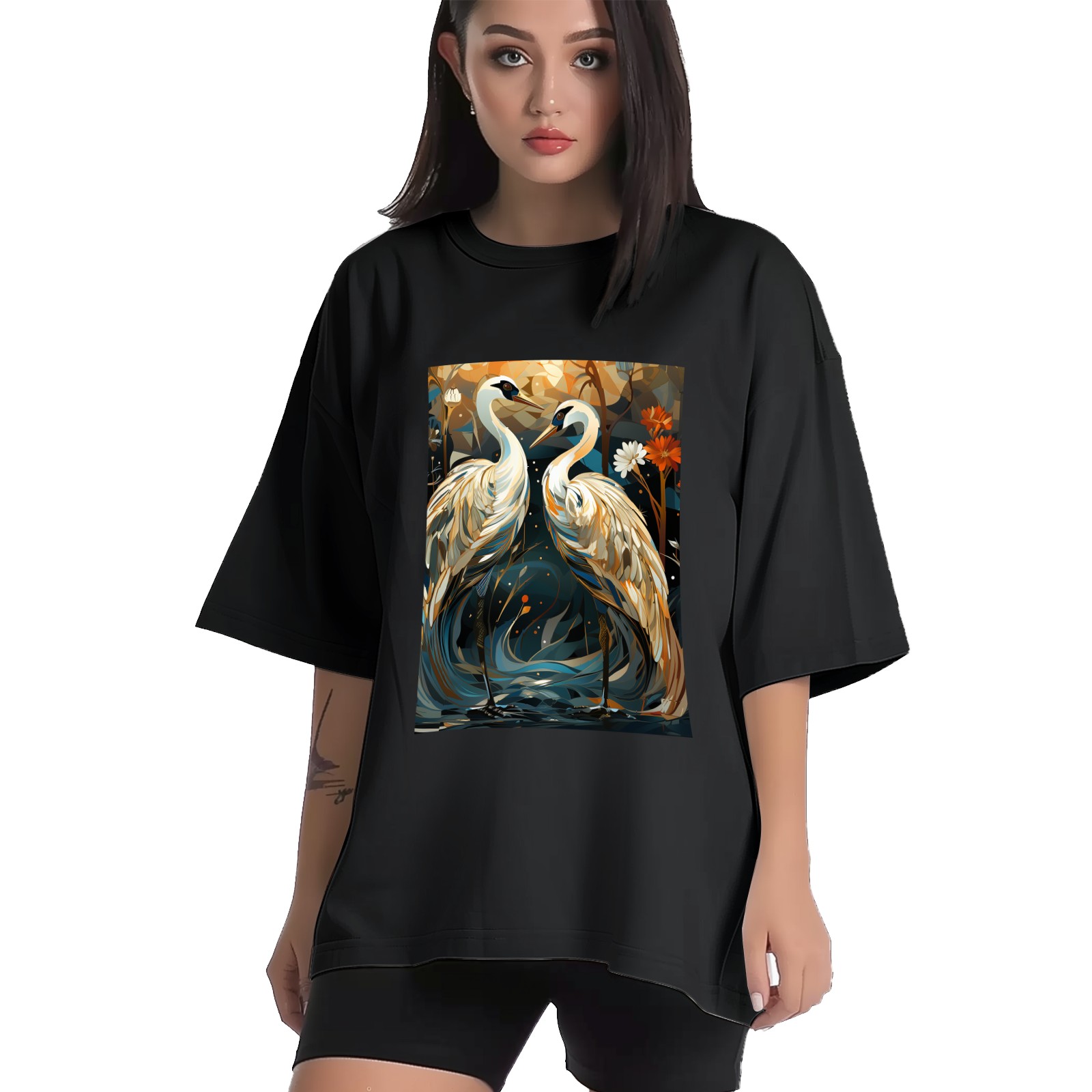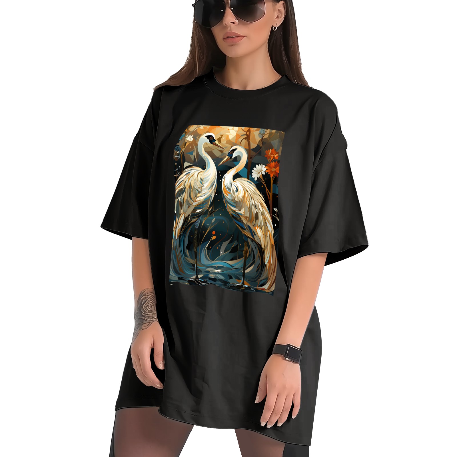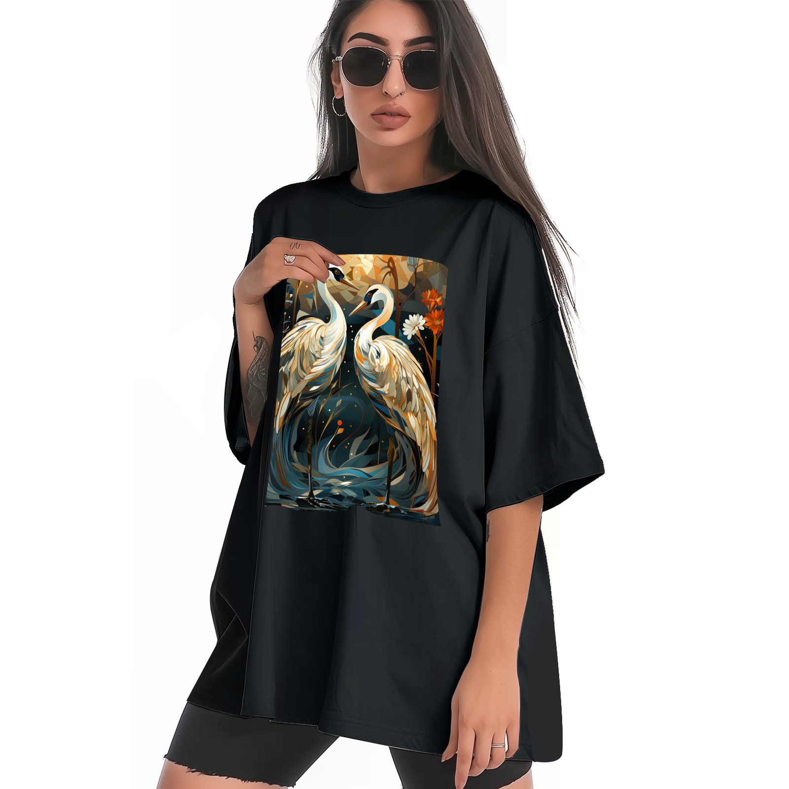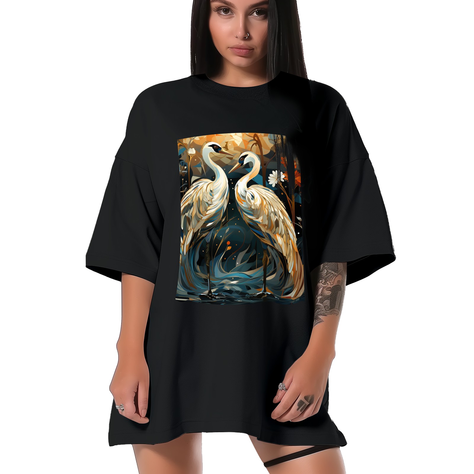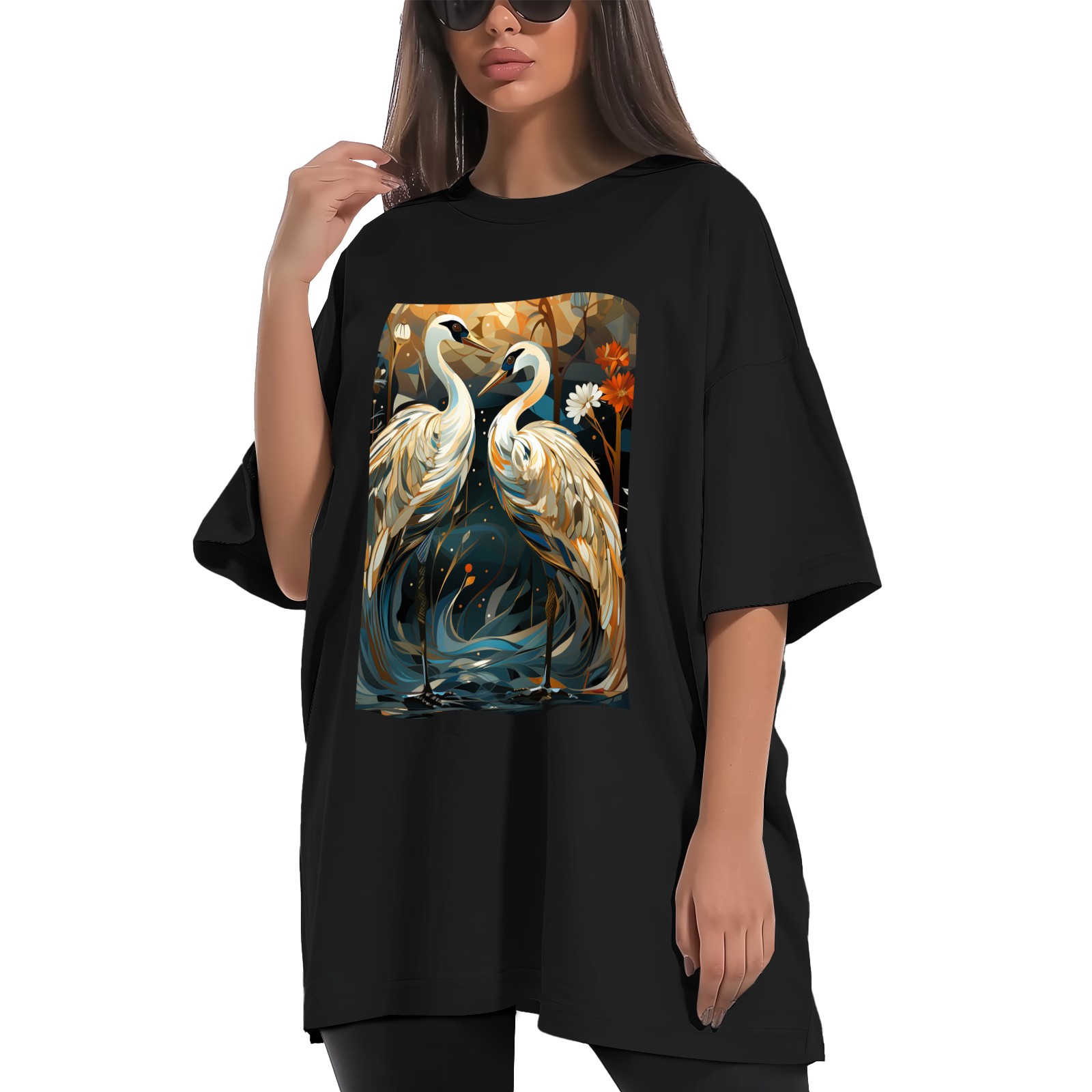 Plus Size Shirt for Women Black Tops for Women Short Sleeves Shirt for Women Swans (6) T Shirt Crewneck Shirt for Women XS