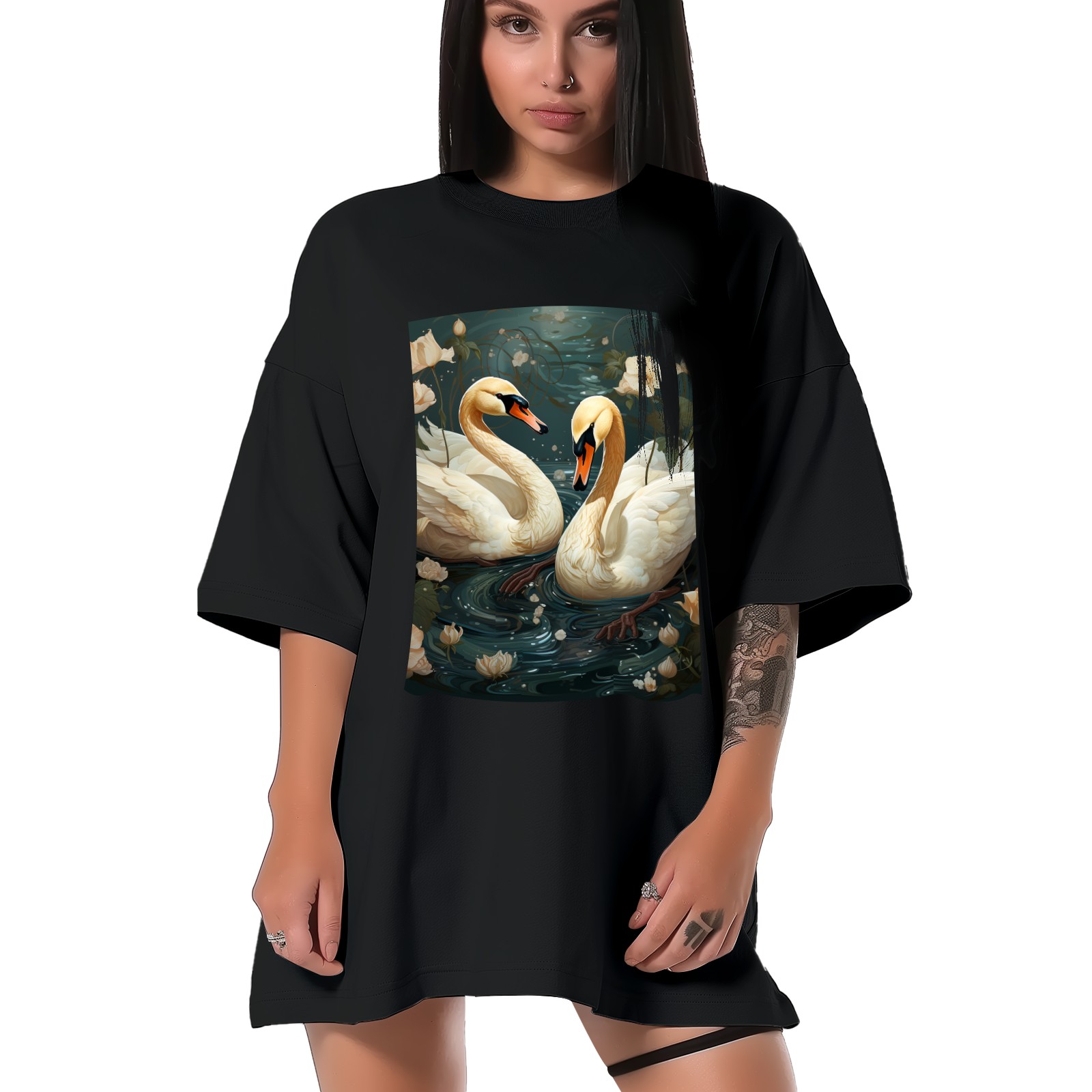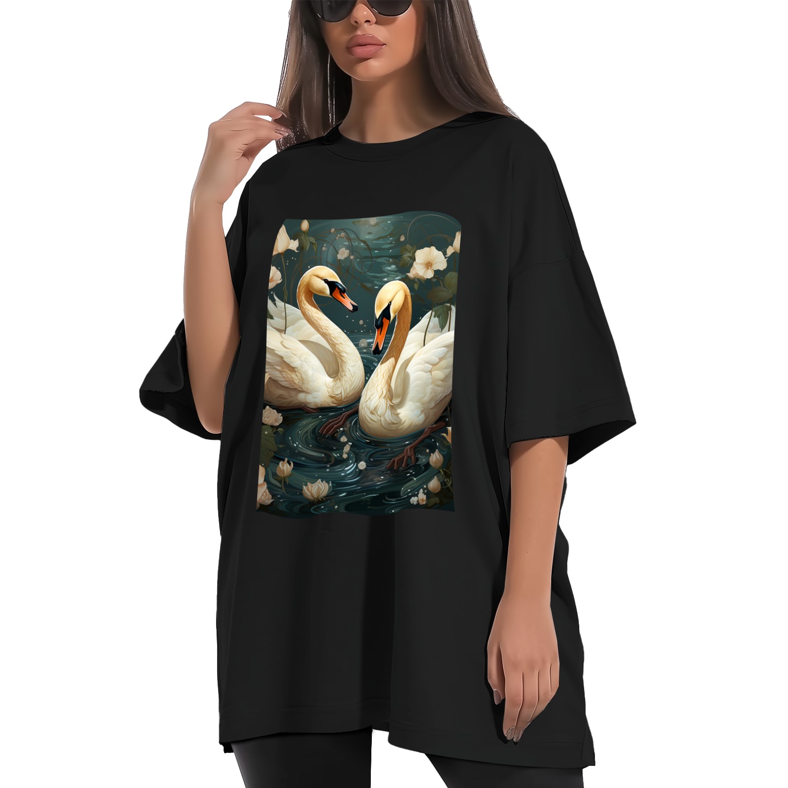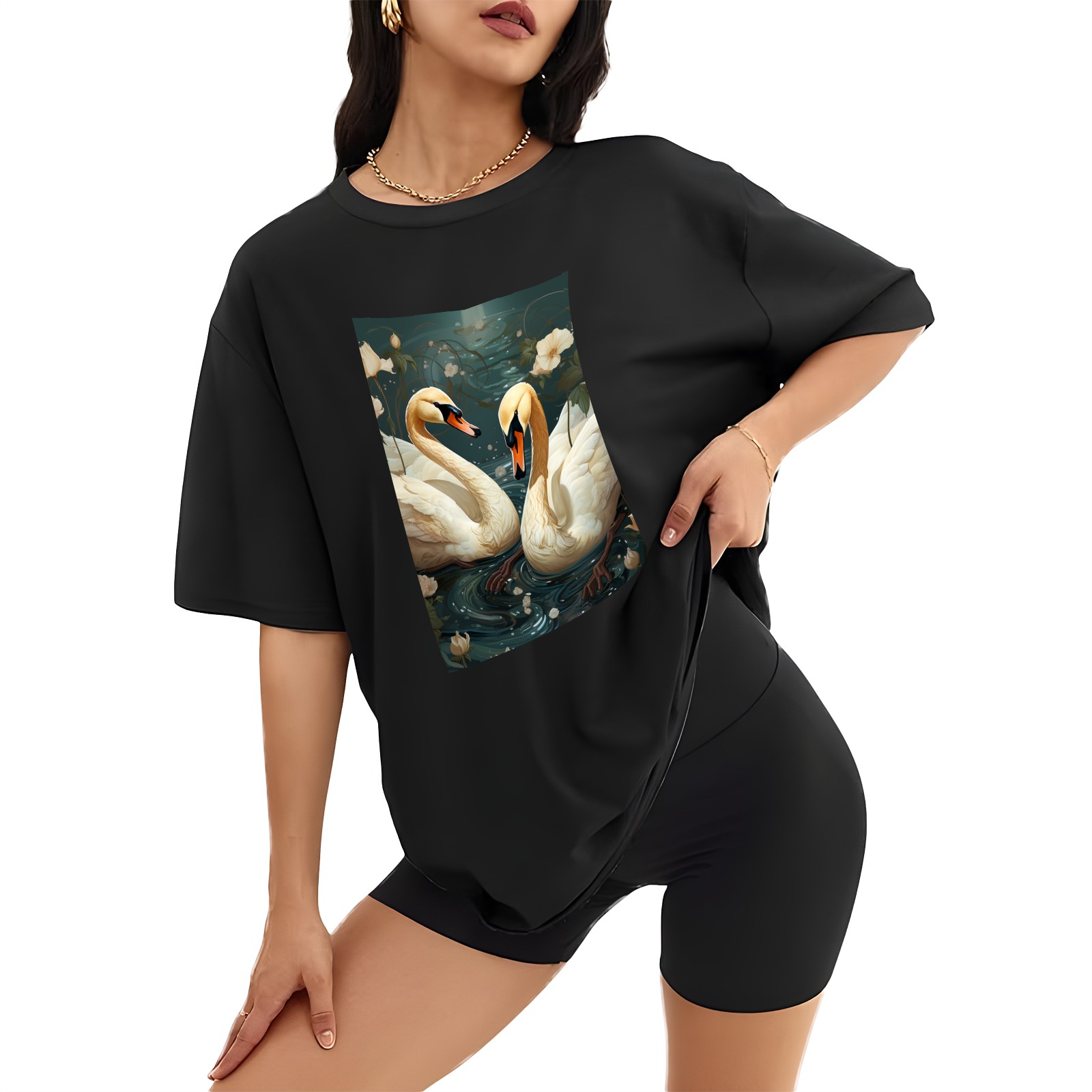 Plus Size Shirt for Women Black Tops for Women Short Sleeves Shirt for Women Swans (5) T Shirt Crewneck Shirt for Women XS