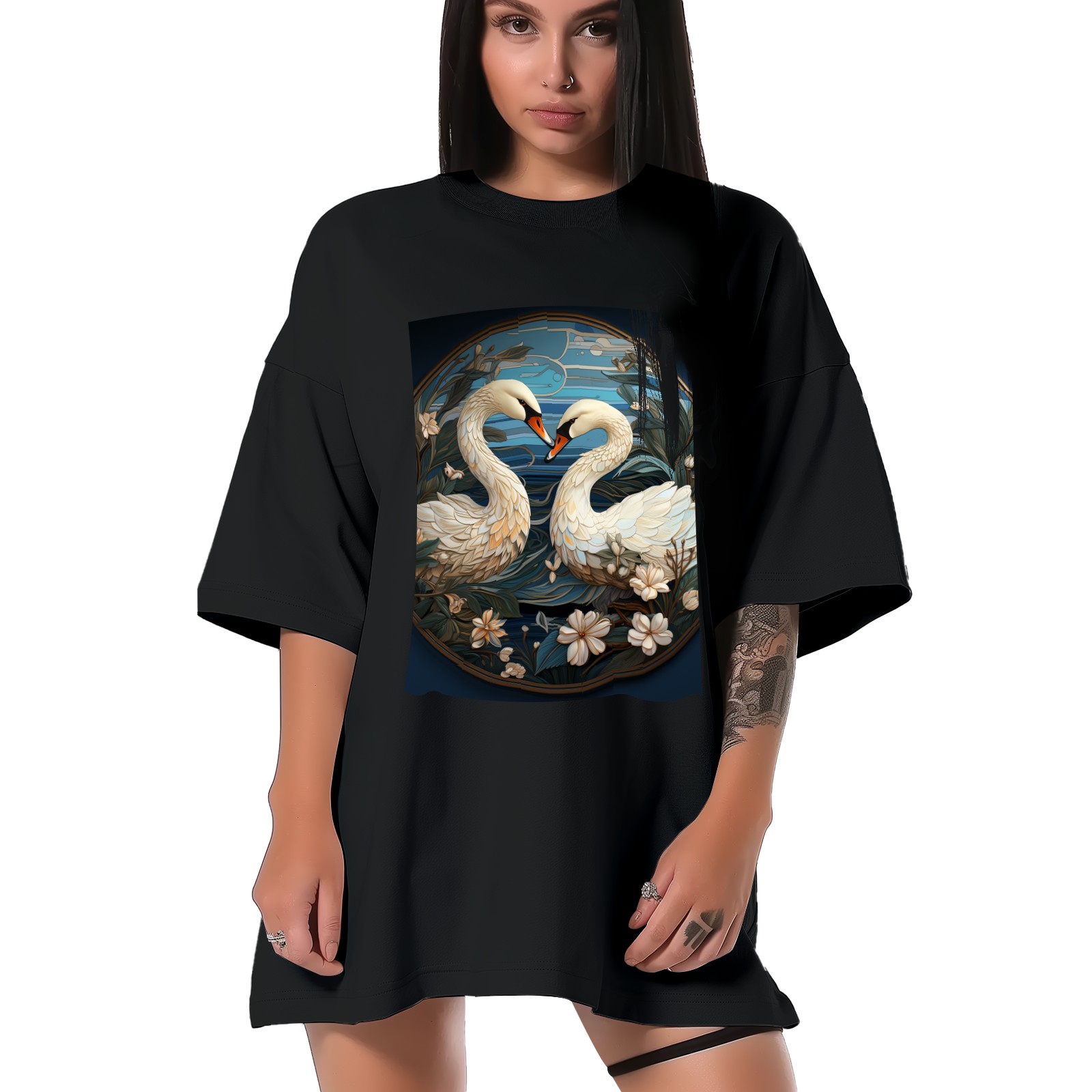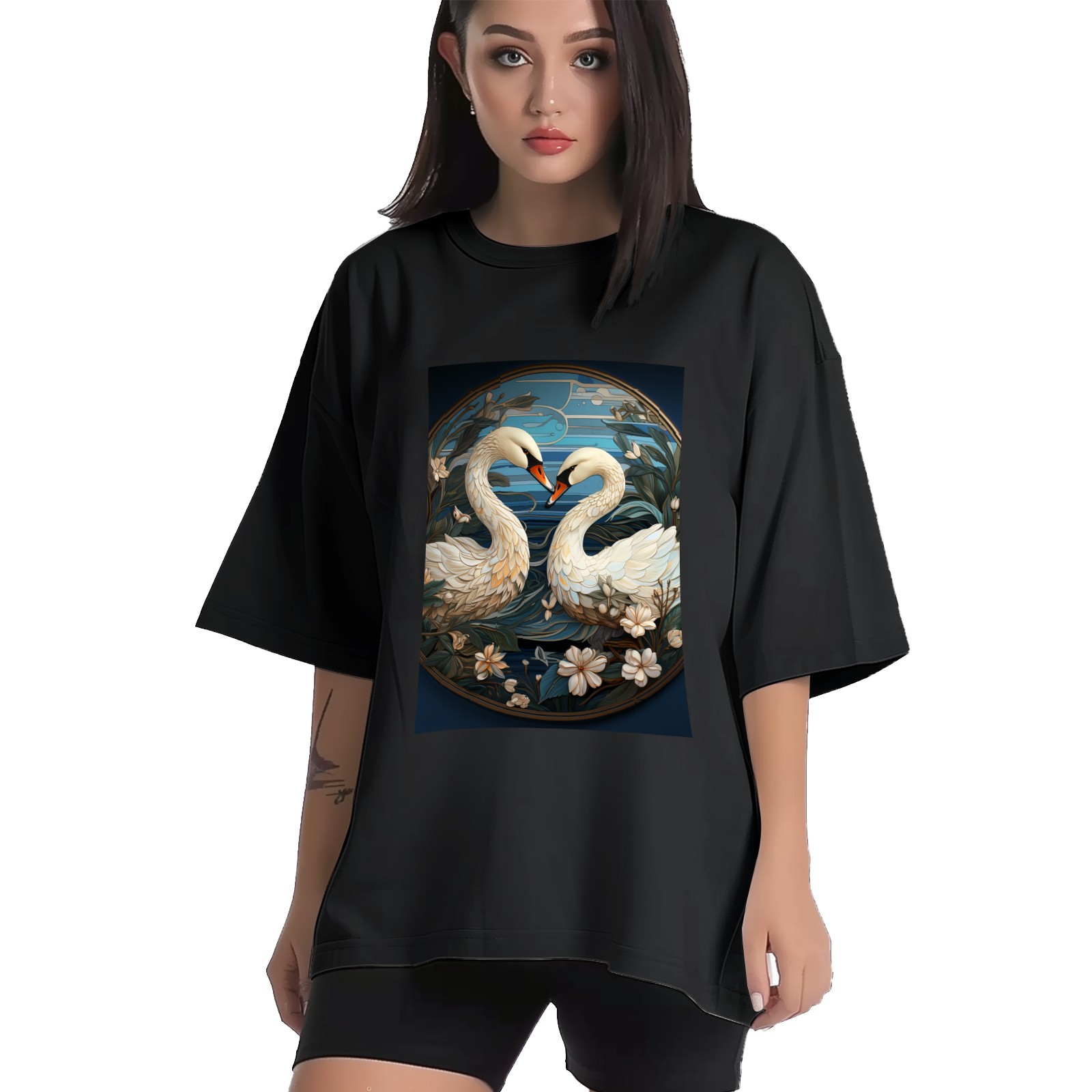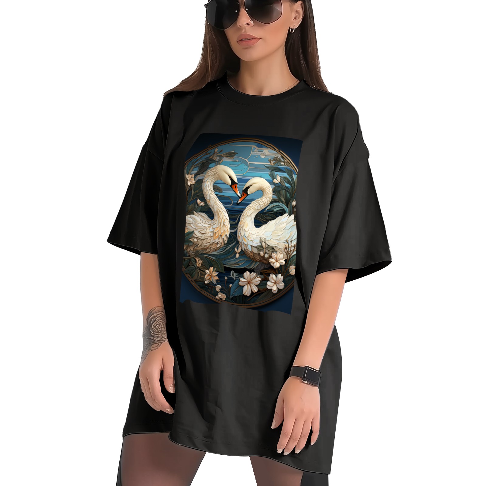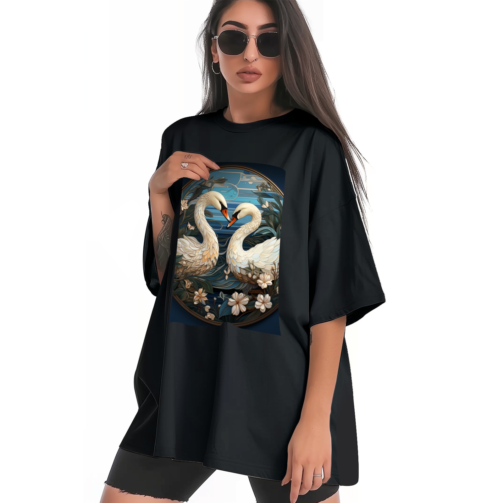 Plus Size Shirt for Women Black Tops for Women Short Sleeves Shirt for Women Swans (2) T Shirt Crewneck Shirt for Women XS
