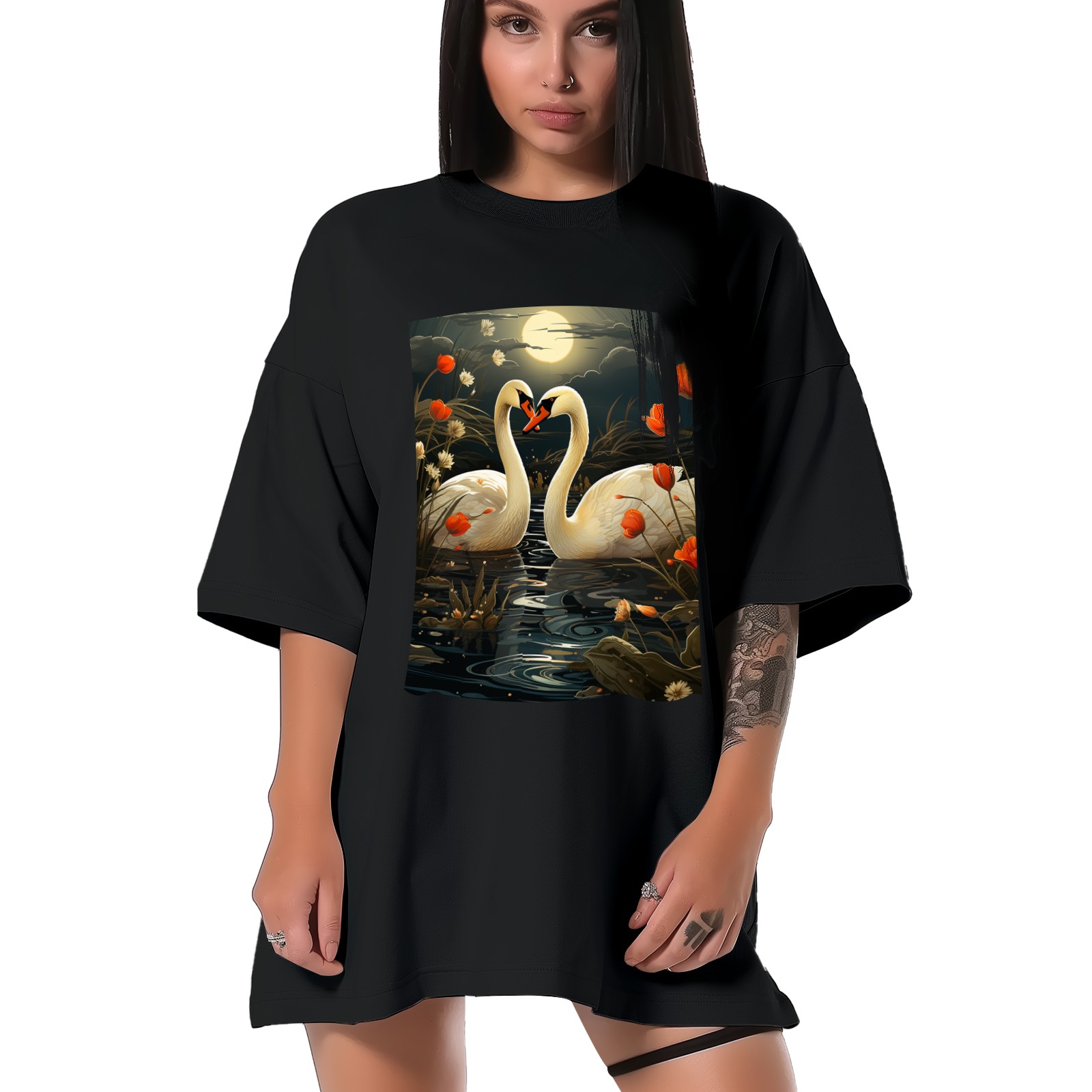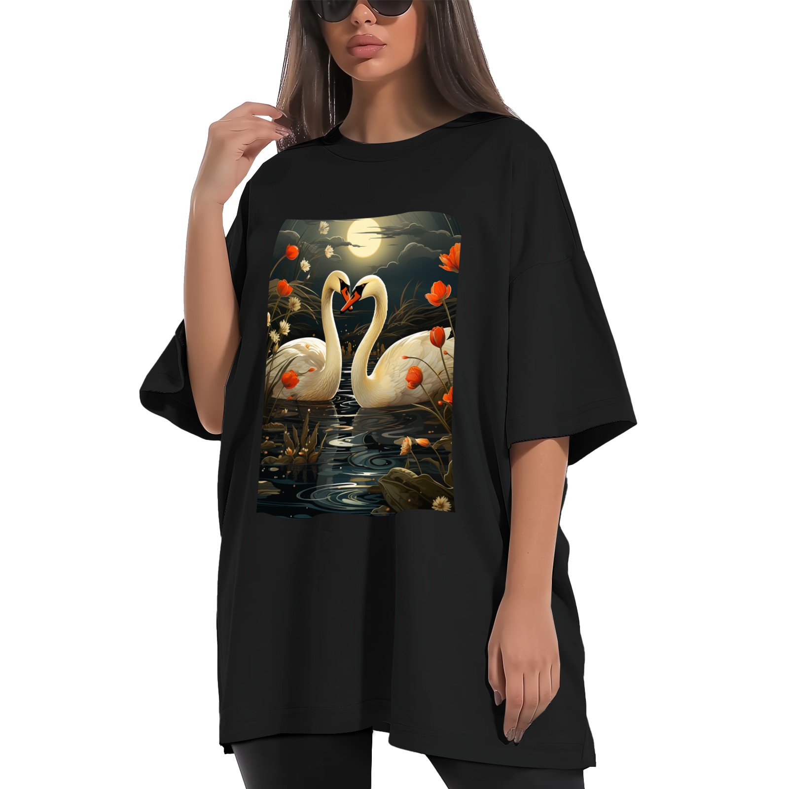 Plus Size Shirt for Women Black Tops for Women Short Sleeves Shirt for Women Swans (1) T Shirt Crewneck Shirt for Women XS