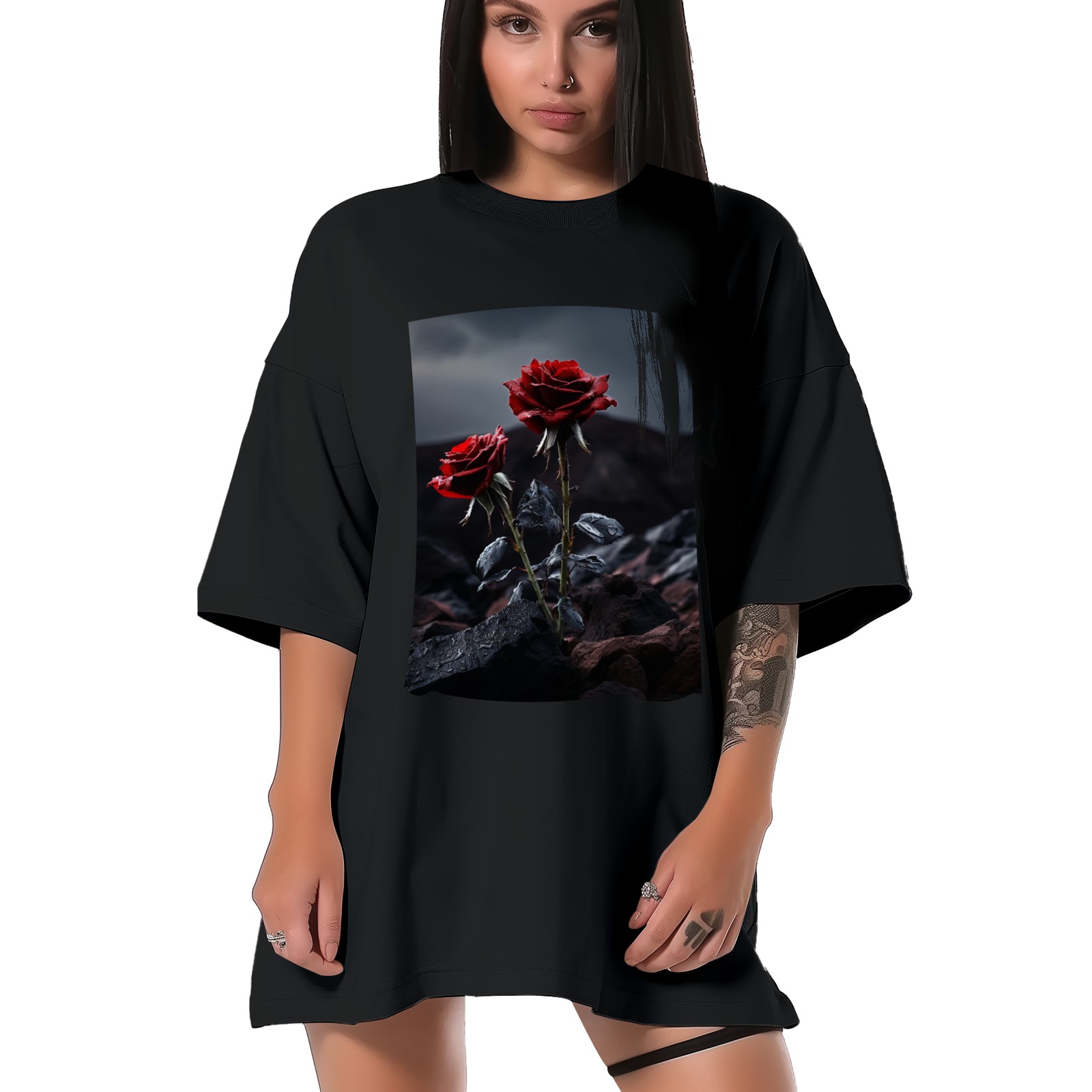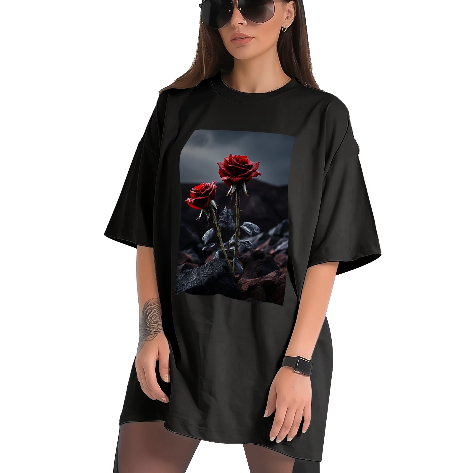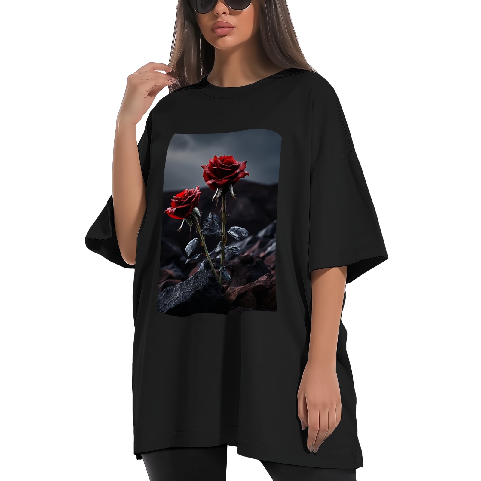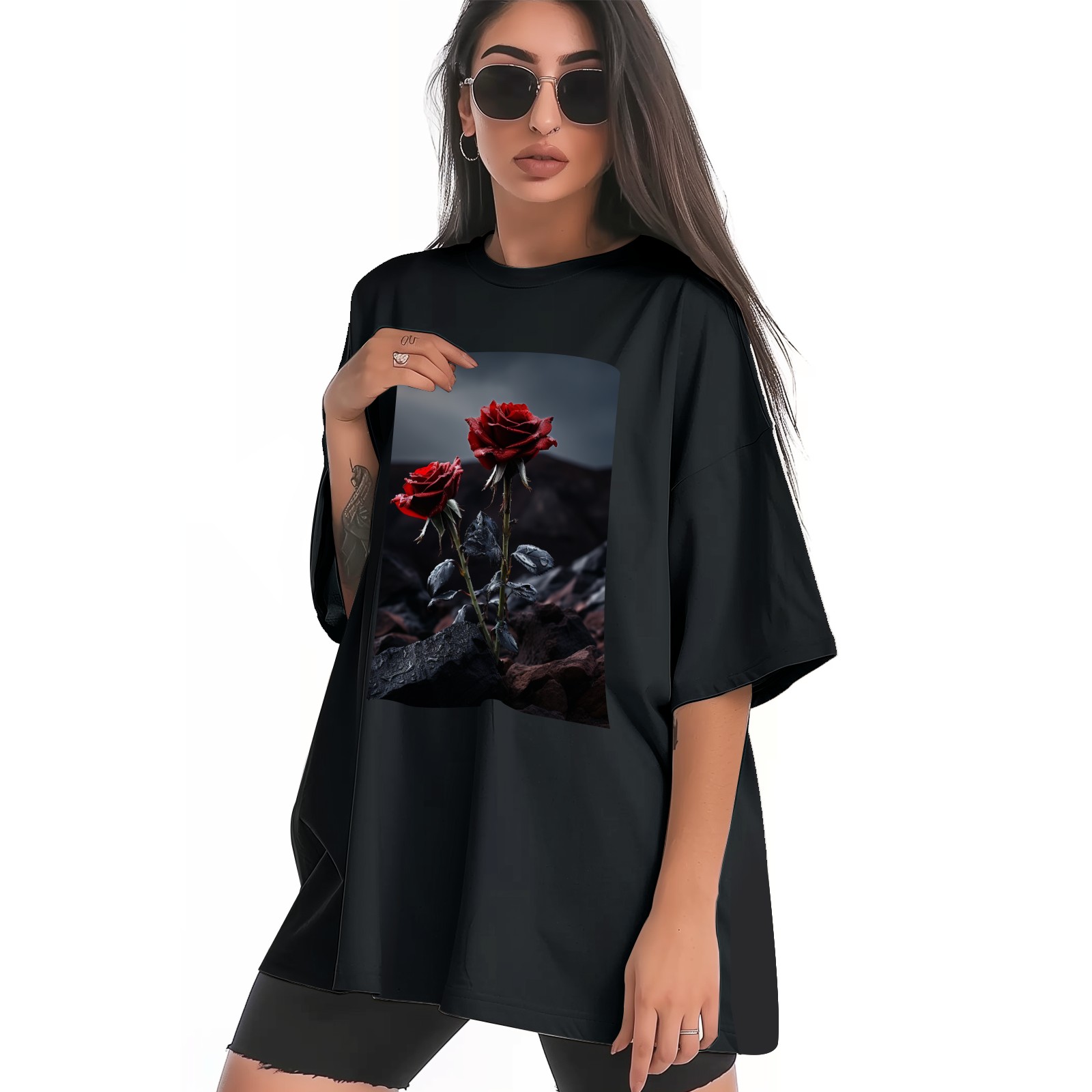 Plus Size Shirt for Women Black Tops for Women Short Sleeves Shirt for Women Roses (24) T Shirt Crewneck Shirt for Women XS