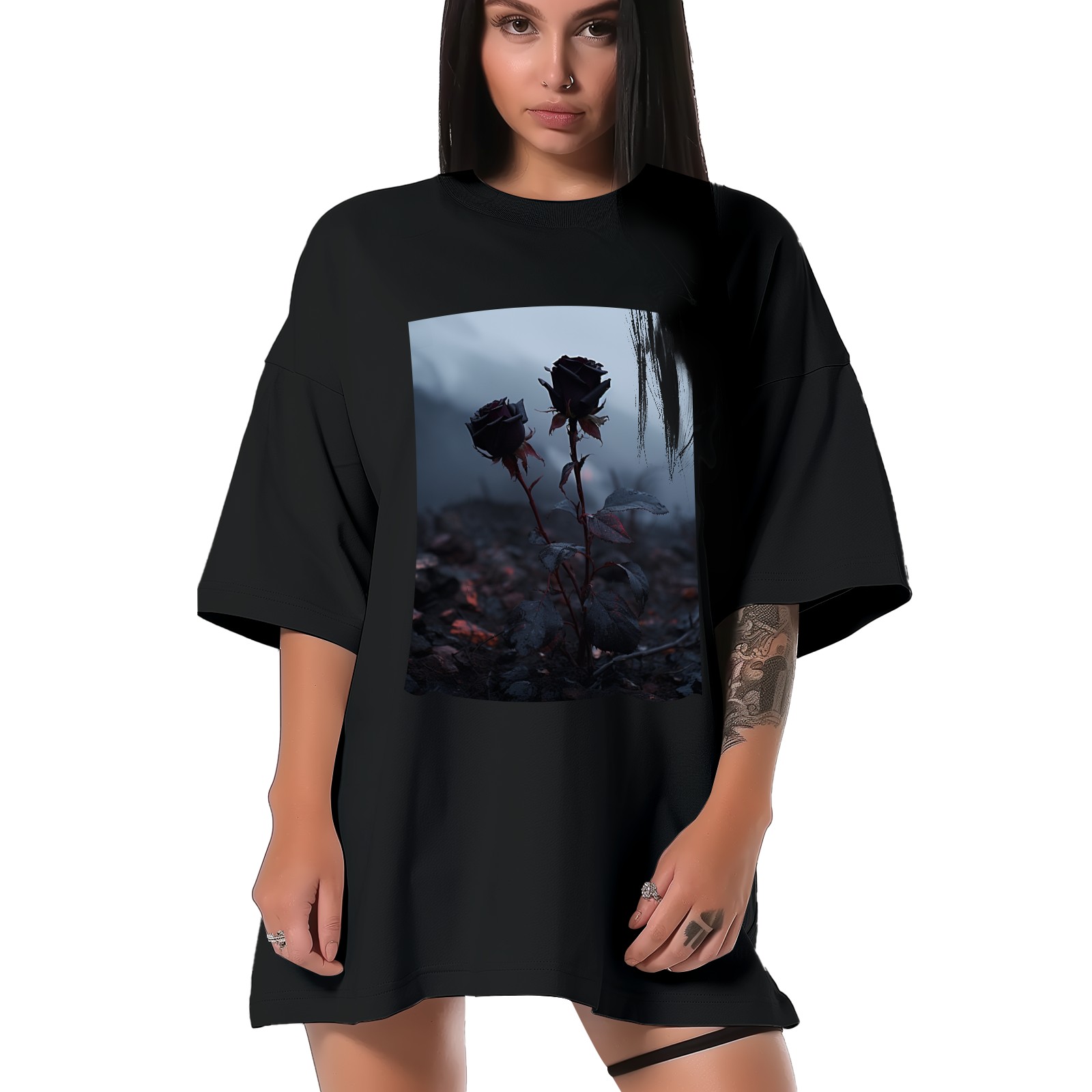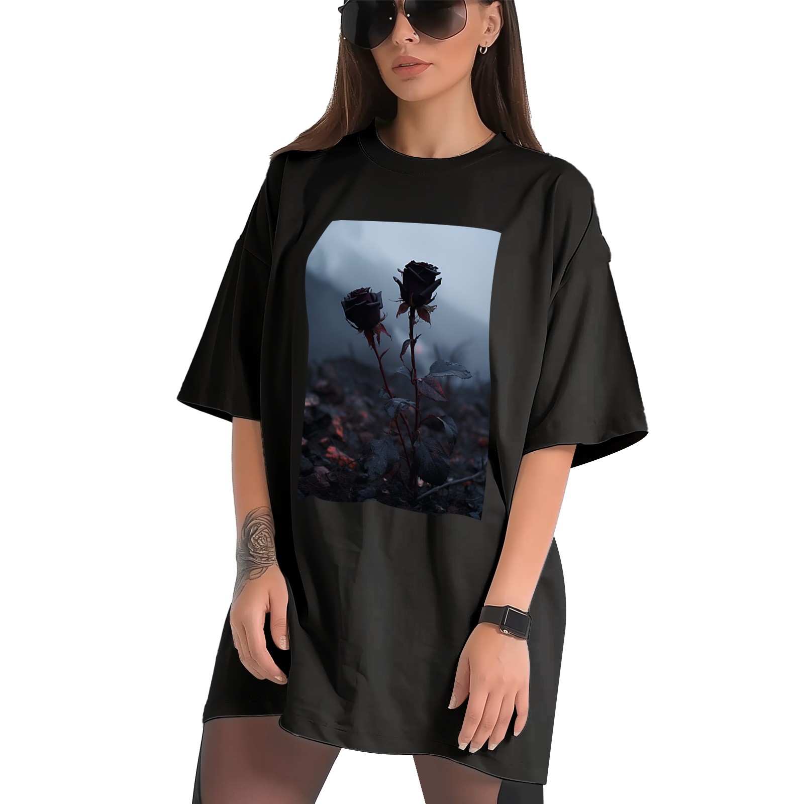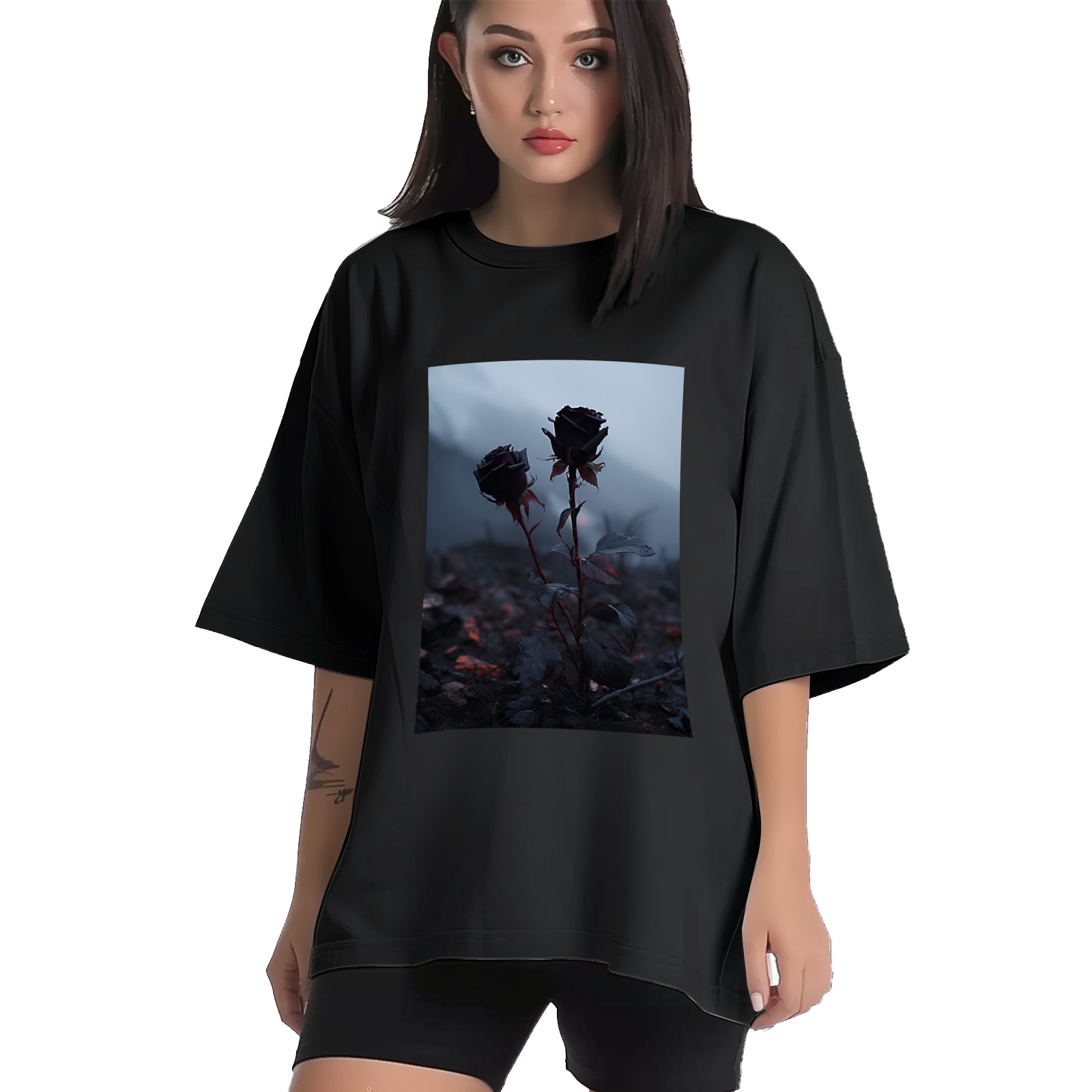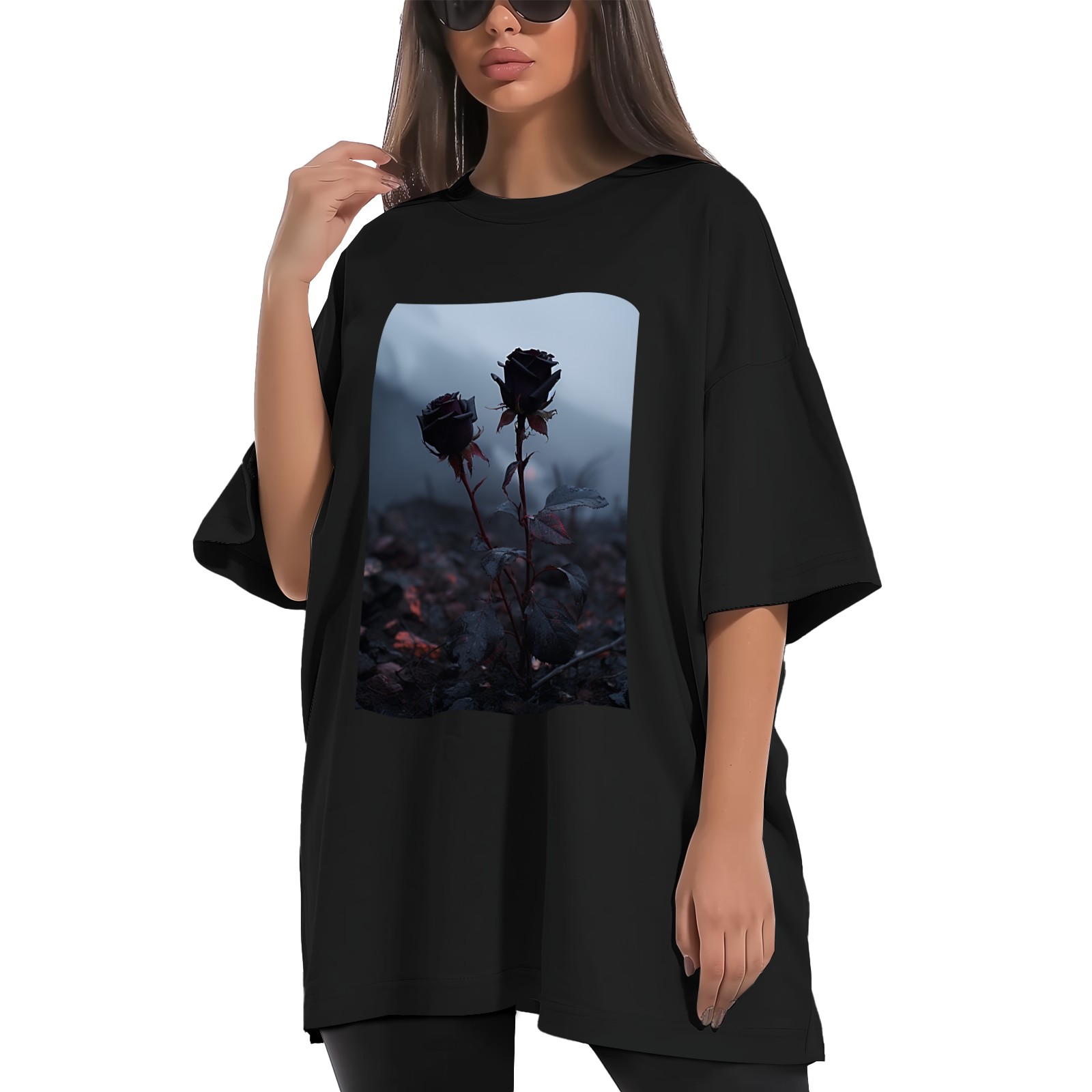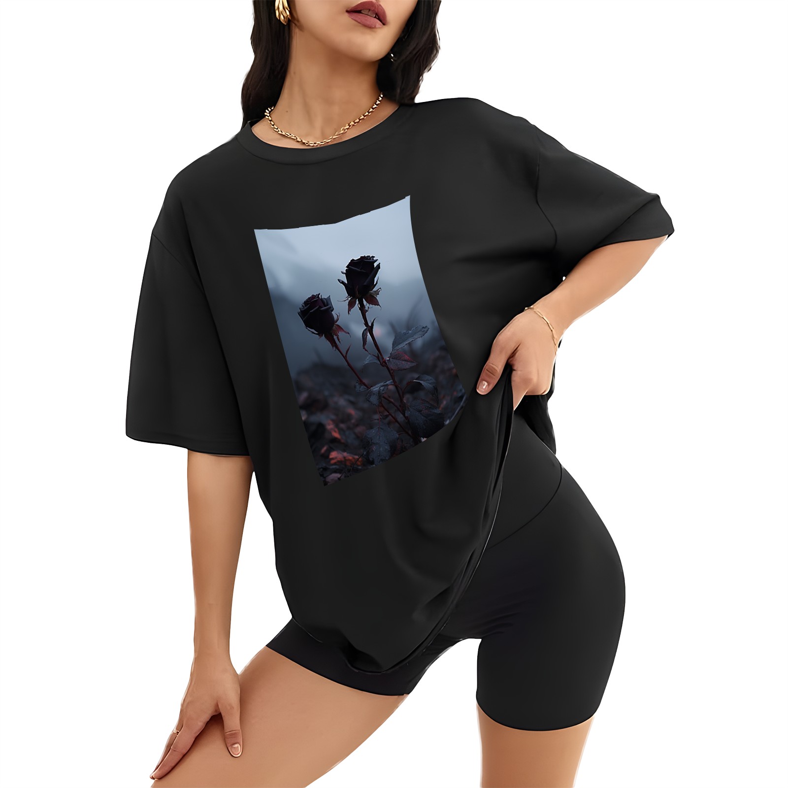 Plus Size Shirt for Women Black Tops for Women Short Sleeves Shirt for Women Roses (21) T Shirt Crewneck Shirt for Women XS