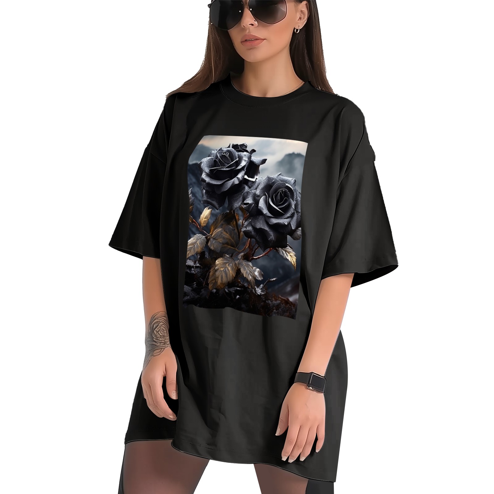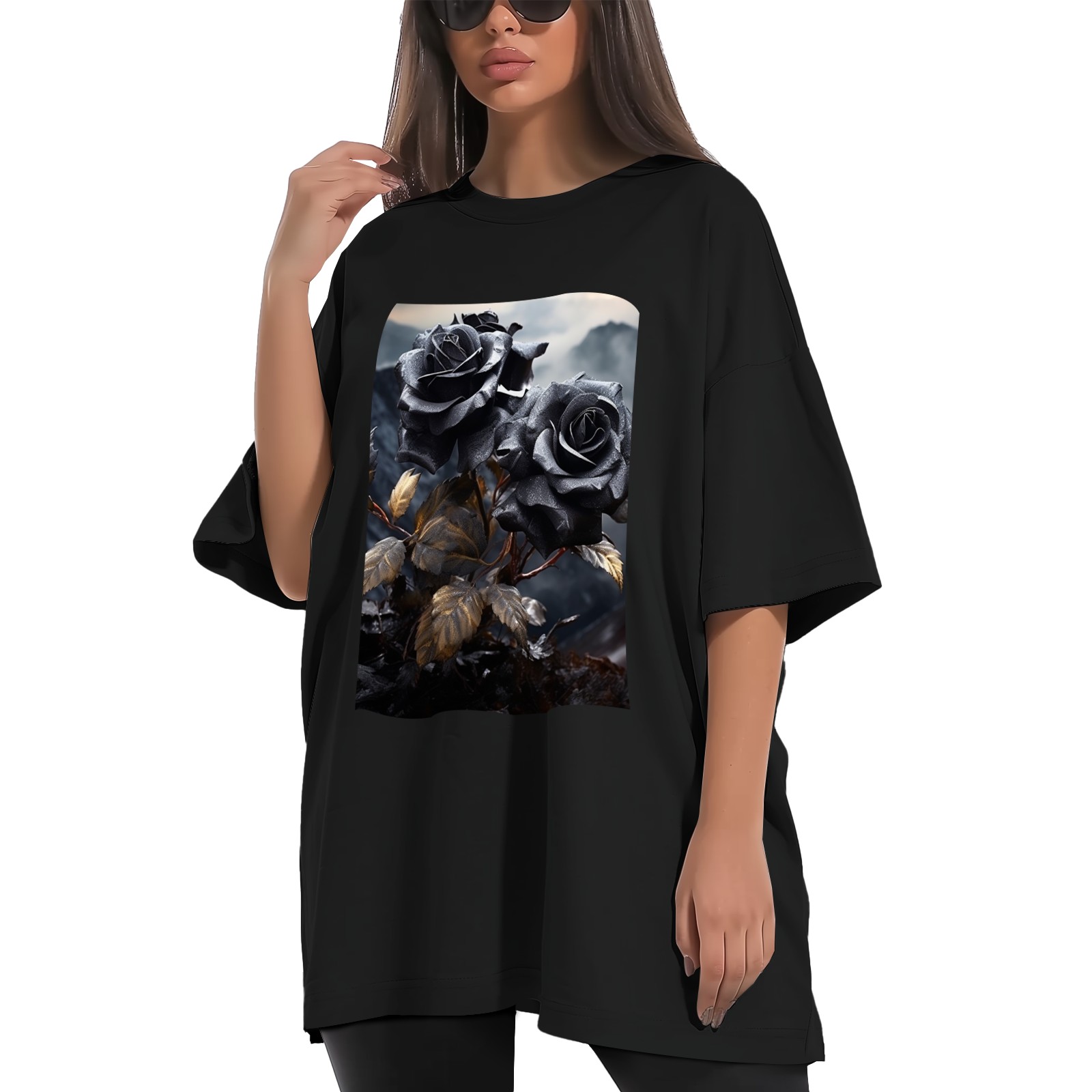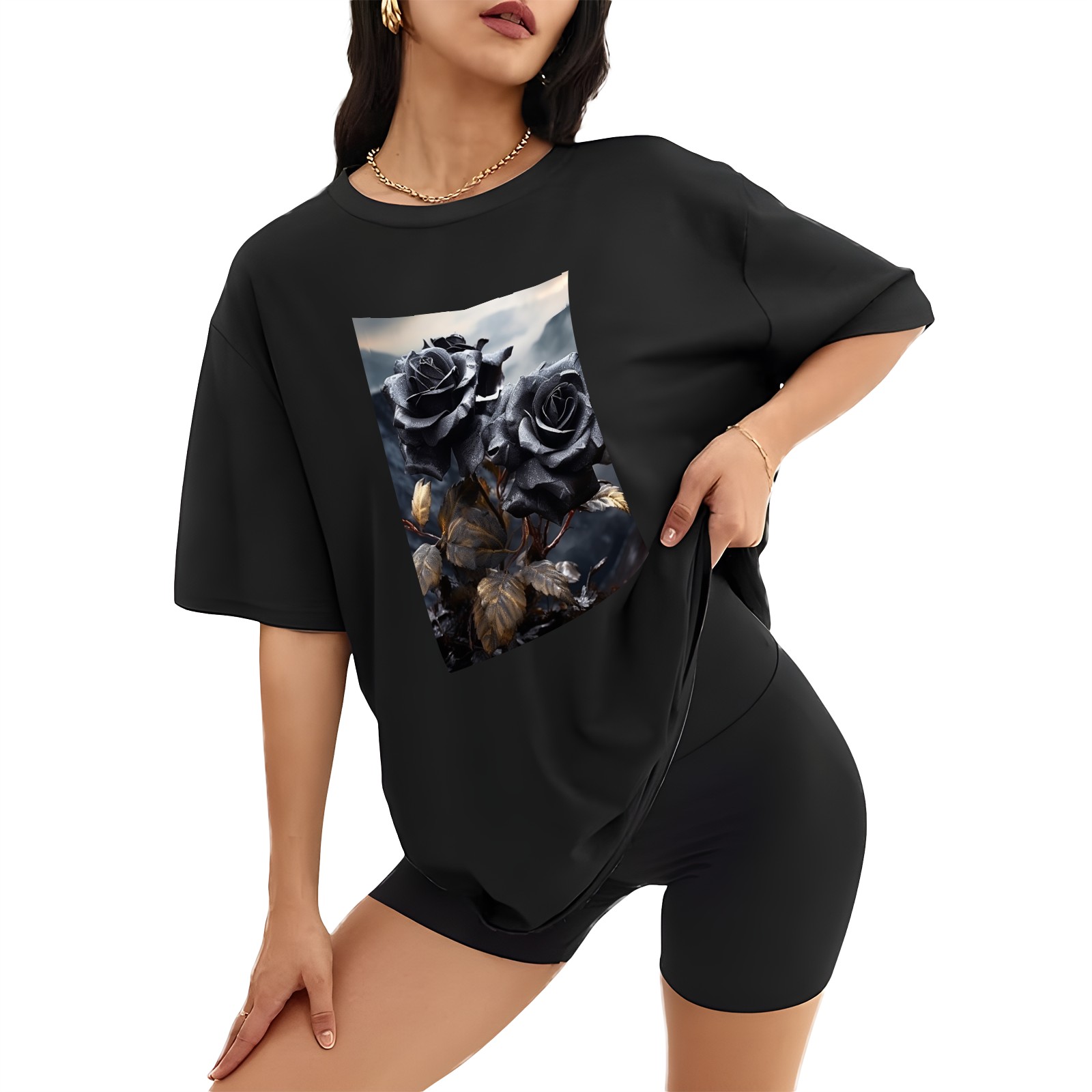 Plus Size Shirt for Women Black Tops for Women Short Sleeves Shirt for Women Roses (17) T Shirt Crewneck Shirt for Women XS