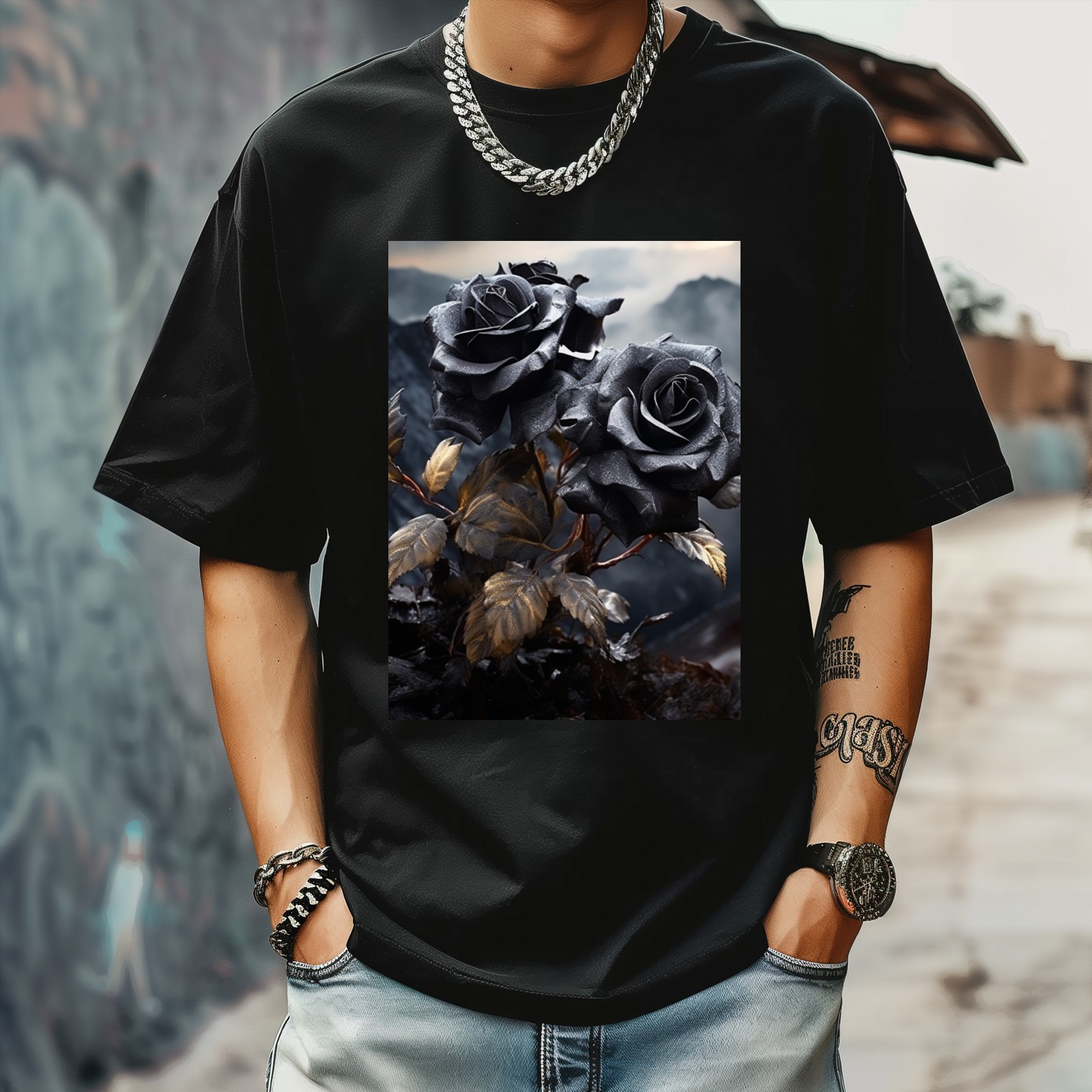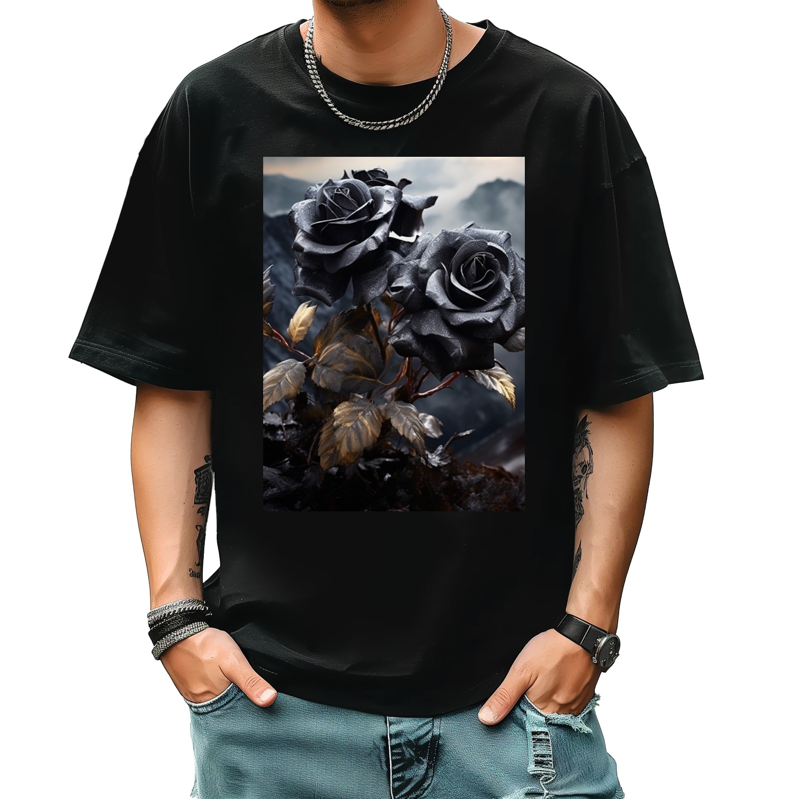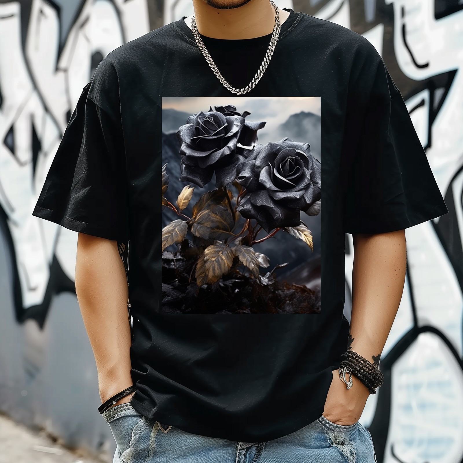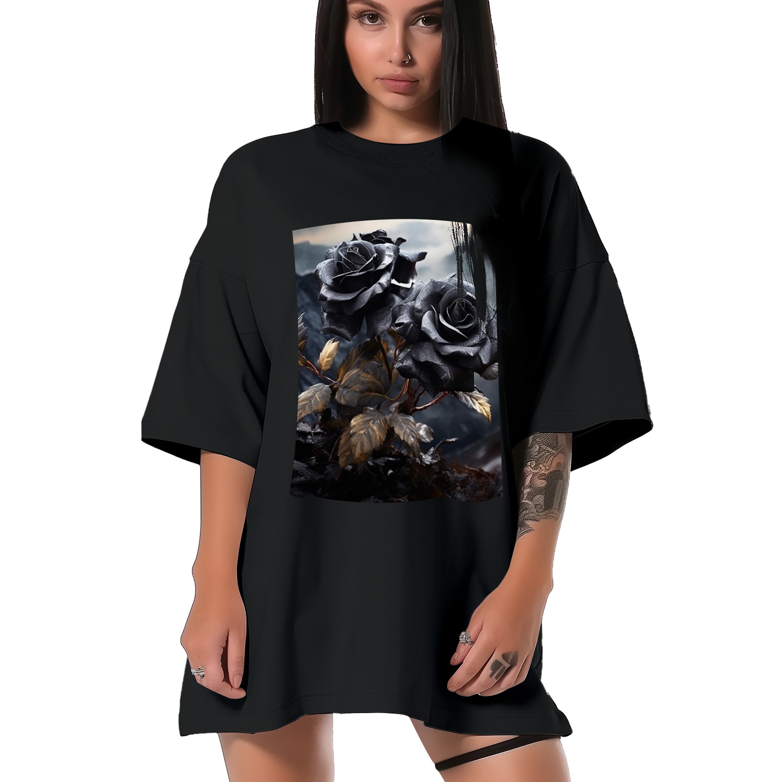 Plus Size Shirt for Women Black Tops for Women Short Sleeves Shirt for Women Roses (17) T Shirt Crewneck Shirt for Women XS