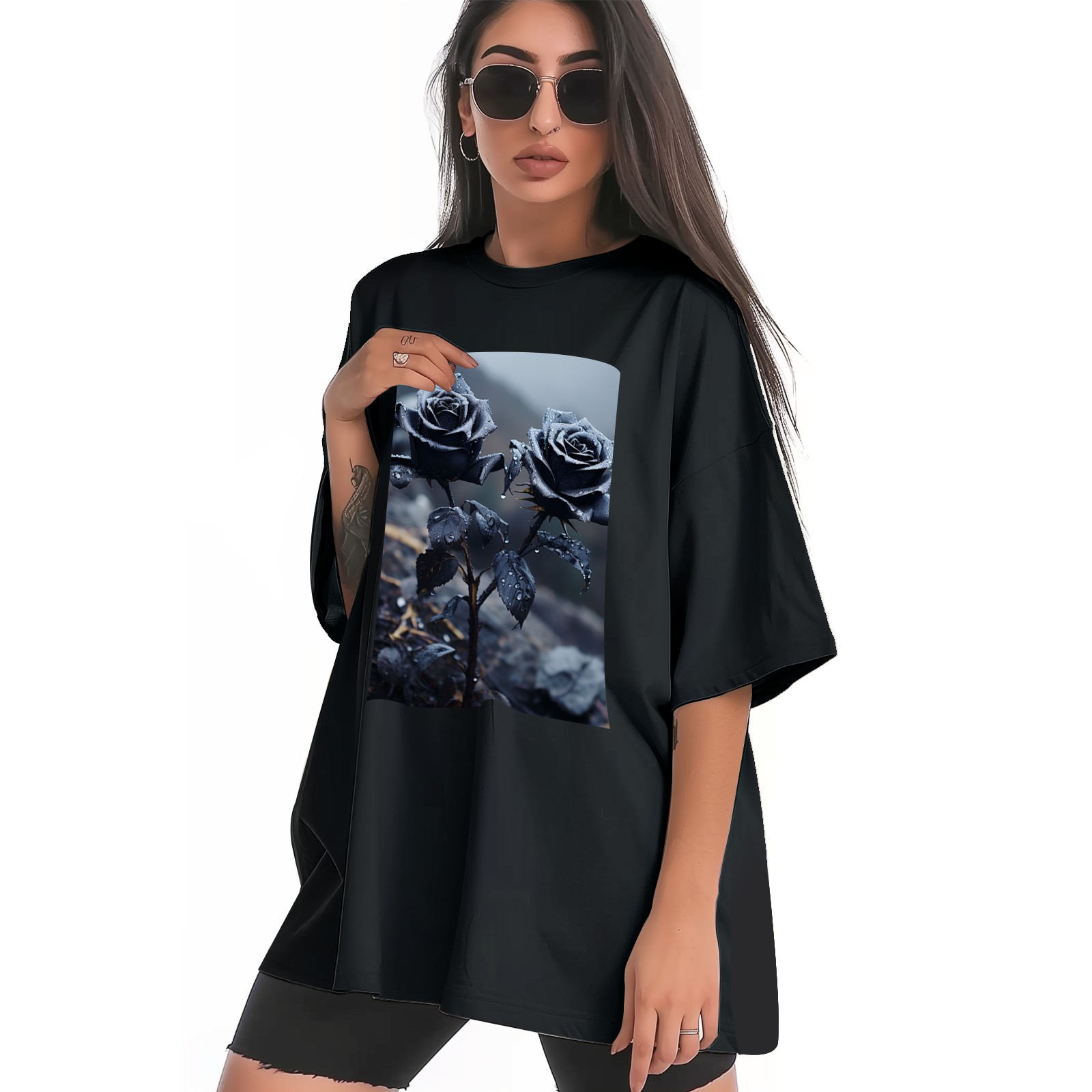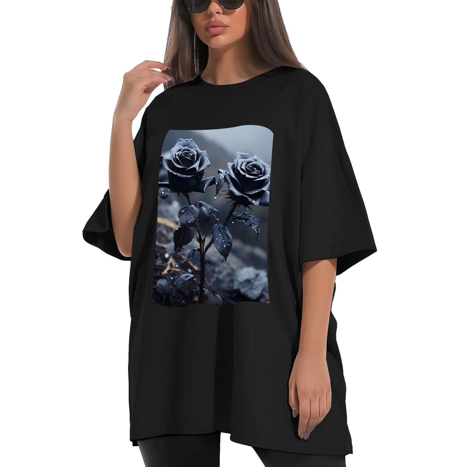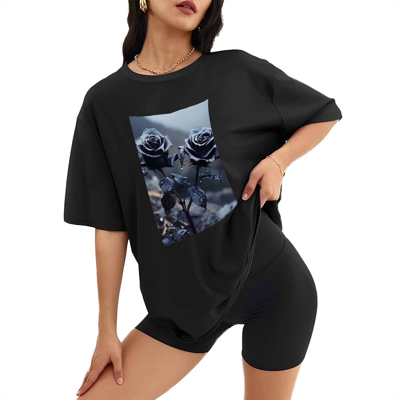 Plus Size Shirt for Women Black Tops for Women Short Sleeves Shirt for Women Roses (13) T Shirt Crewneck Shirt for Women XS