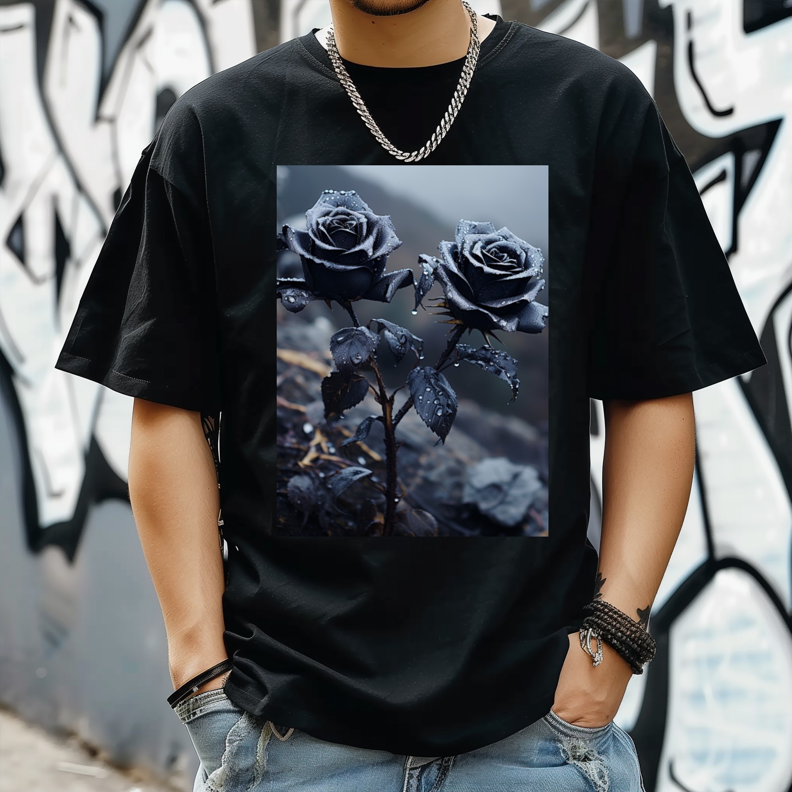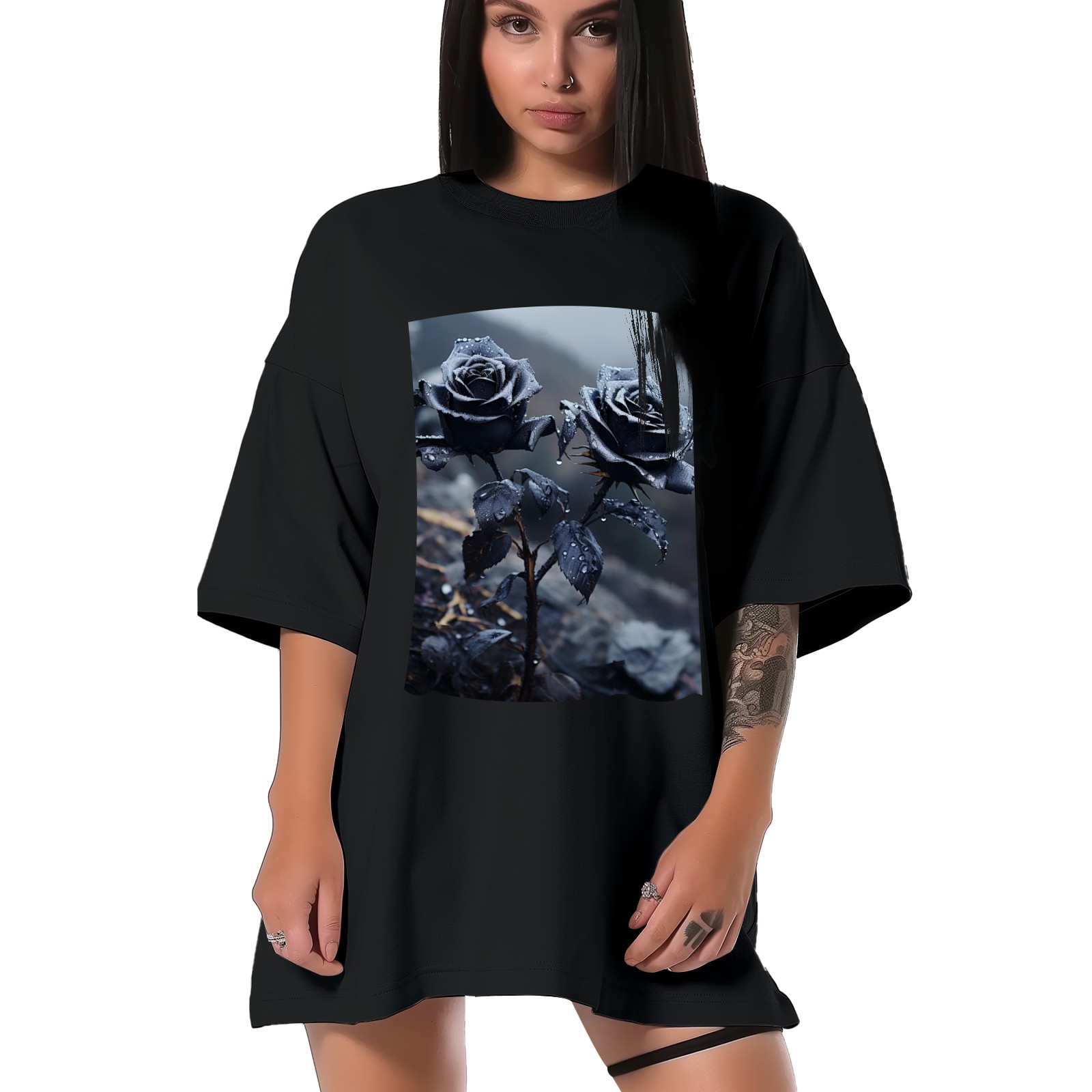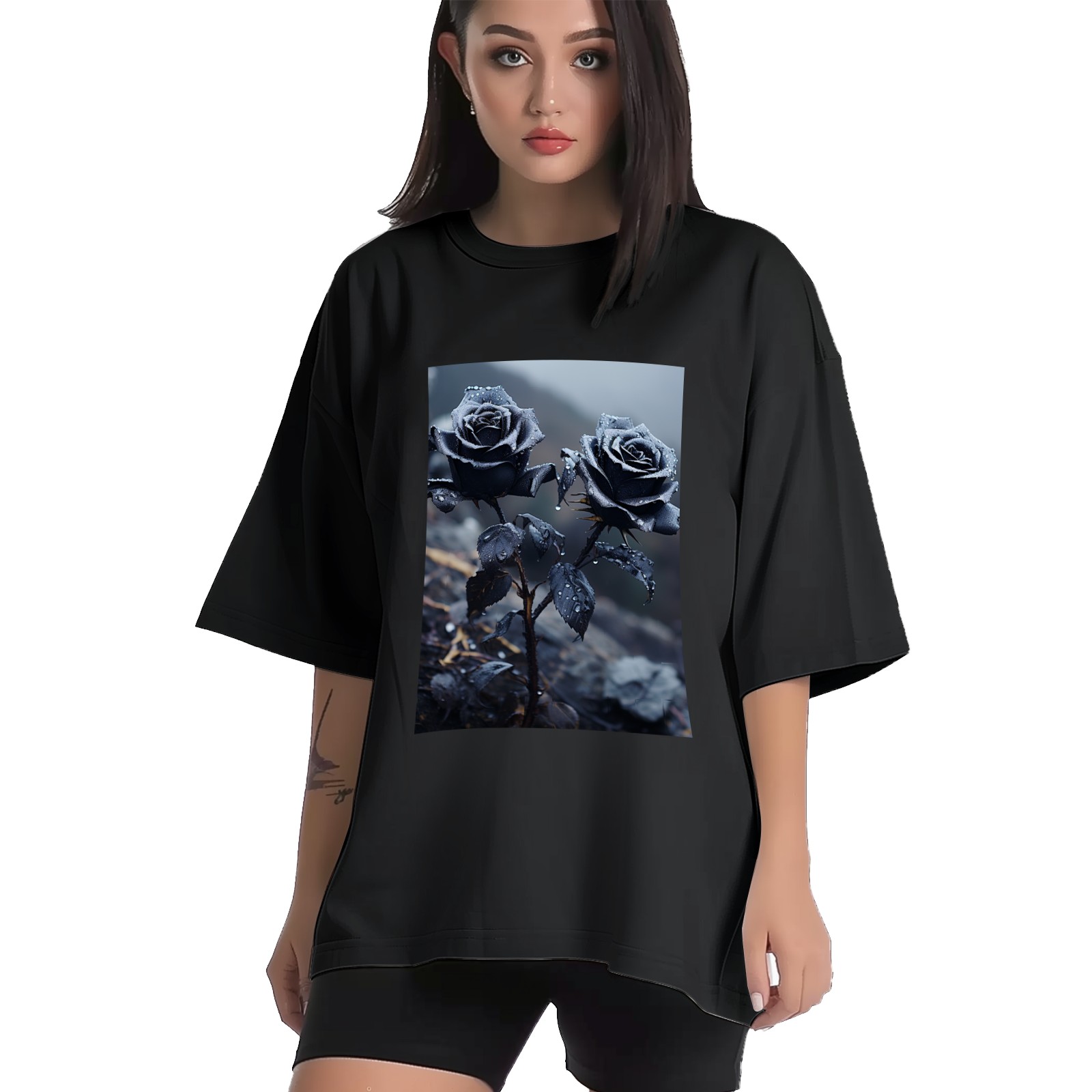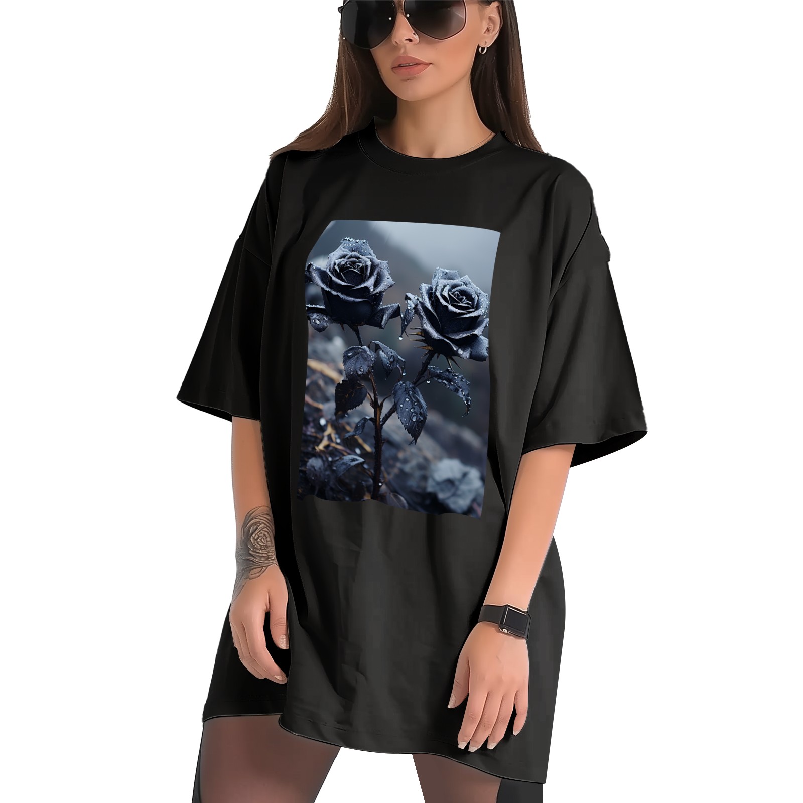 Plus Size Shirt for Women Black Tops for Women Short Sleeves Shirt for Women Roses (13) T Shirt Crewneck Shirt for Women XS