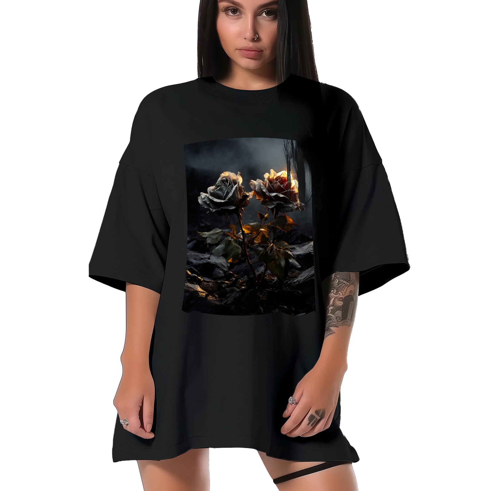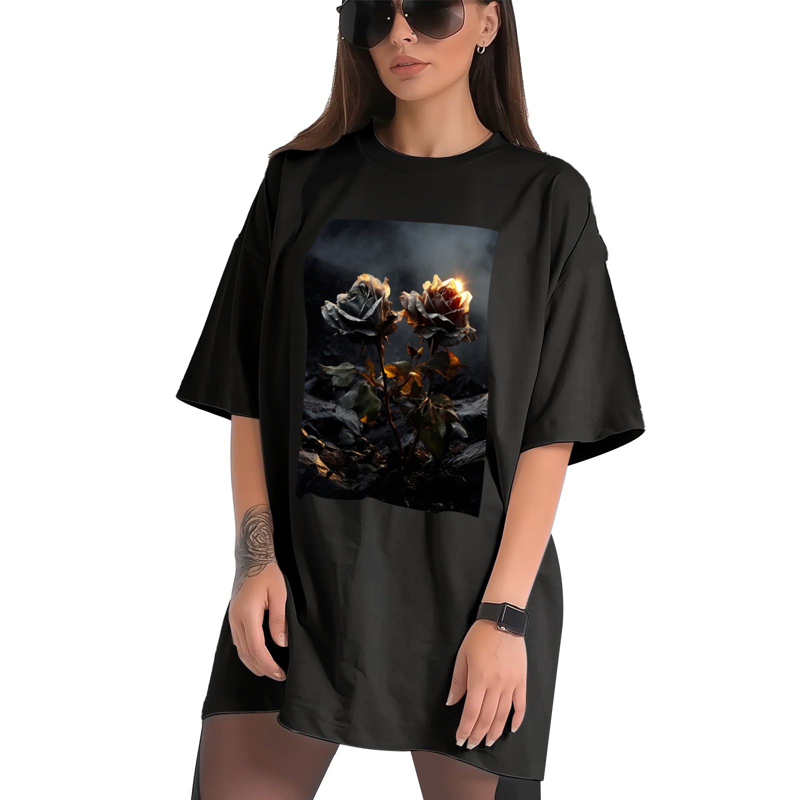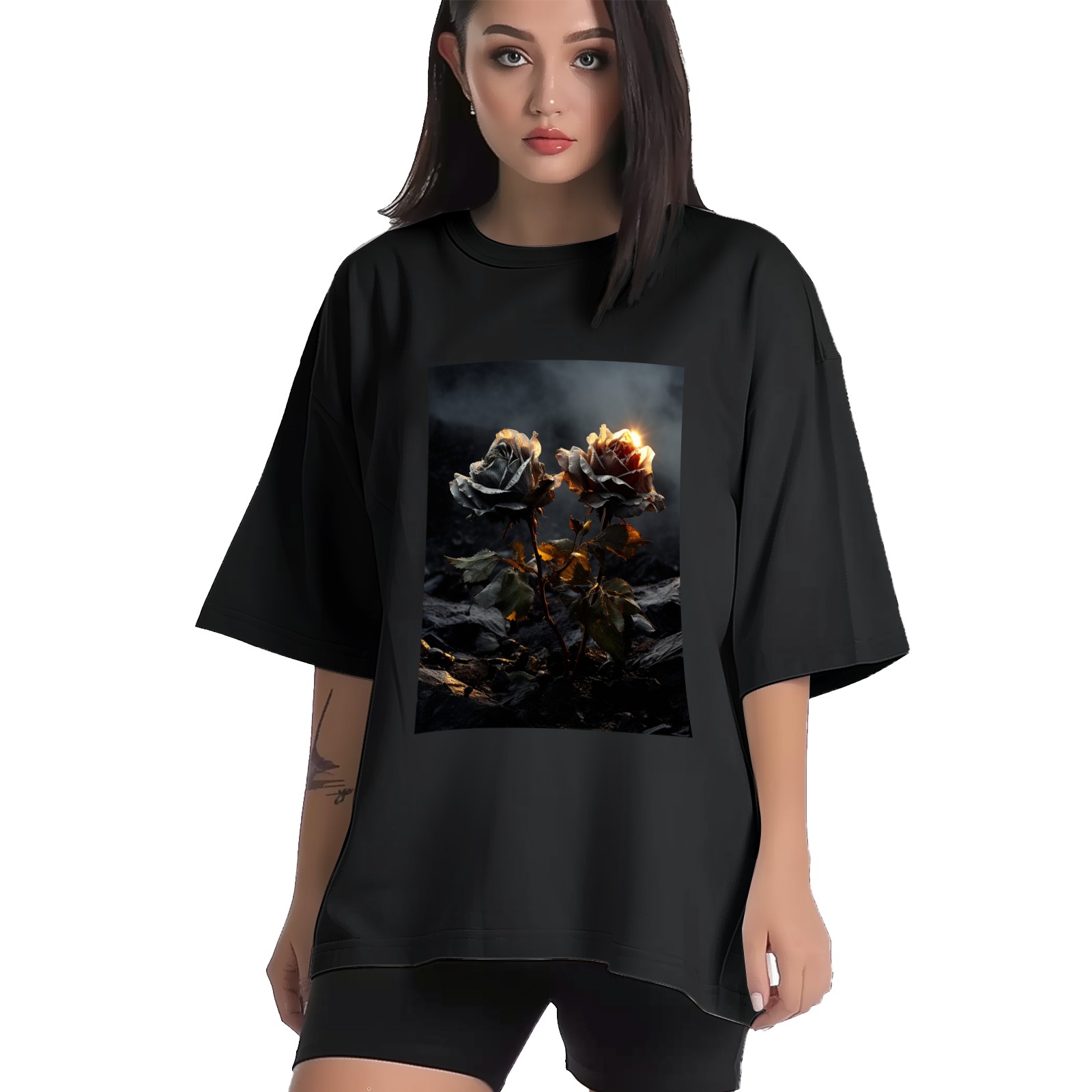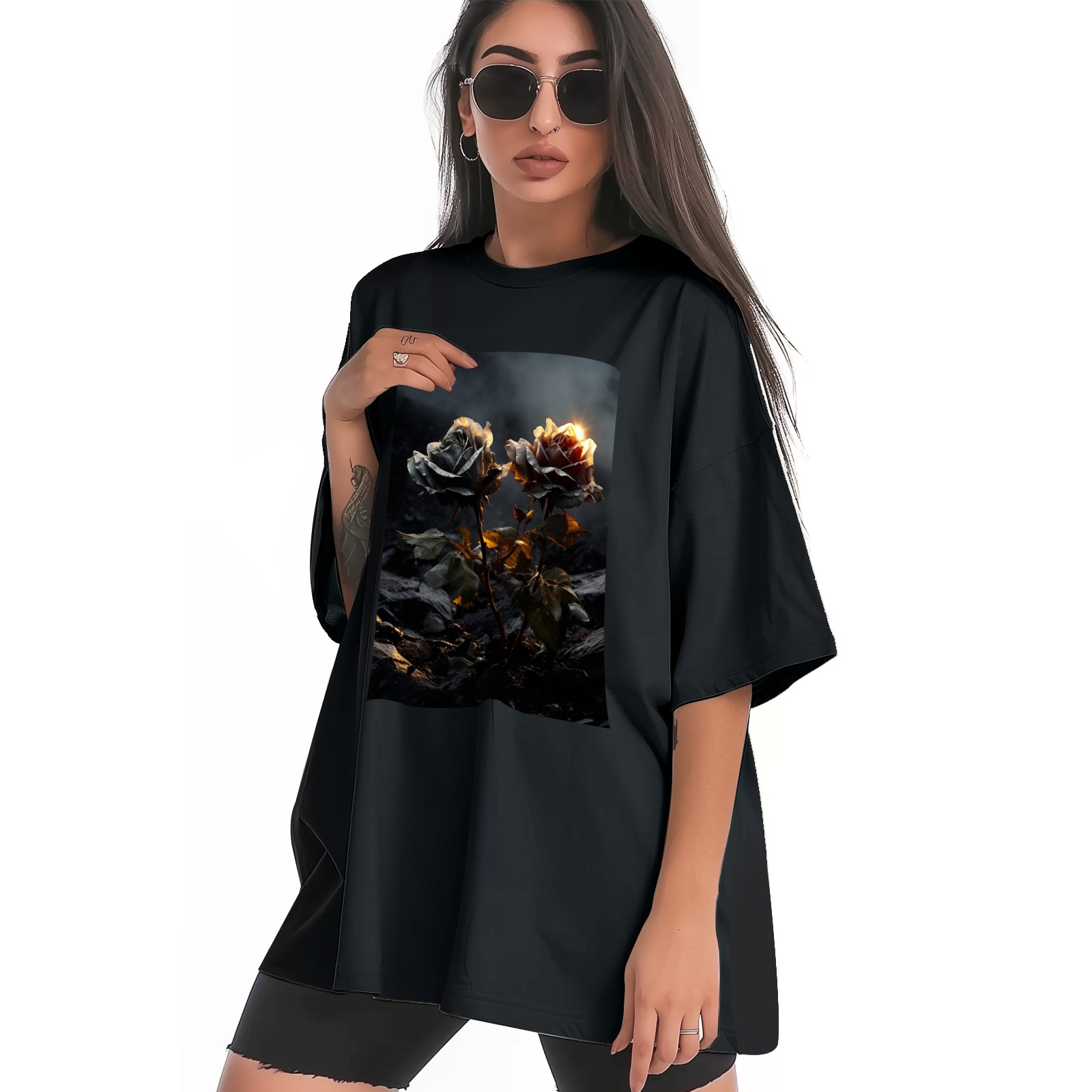Plus Size Shirt for Women Black Tops for Women Short Sleeves Shirt for Women Roses (11) T Shirt Crewneck Shirt for Women XS