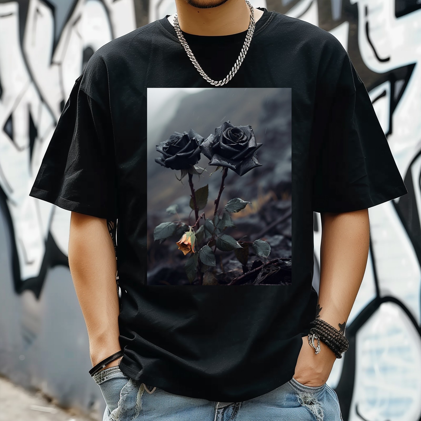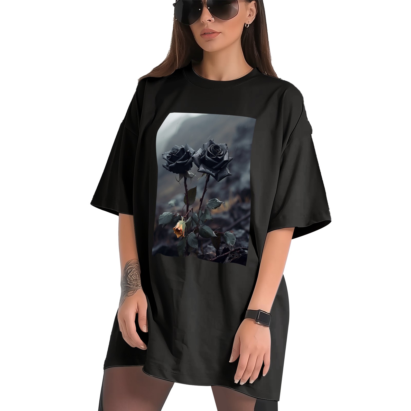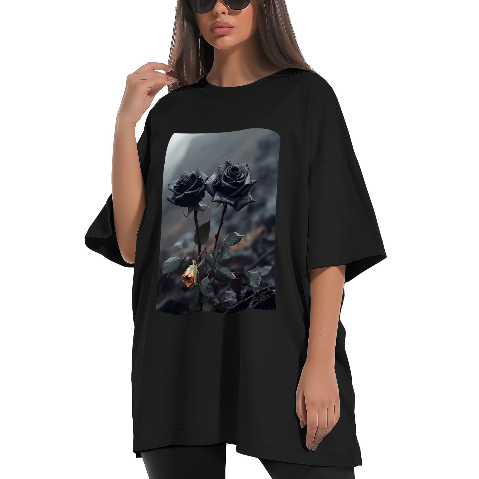 Plus Size Shirt for Women Black Tops for Women Short Sleeves Shirt for Women Roses (9) T Shirt Crewneck Shirt for Women XS
