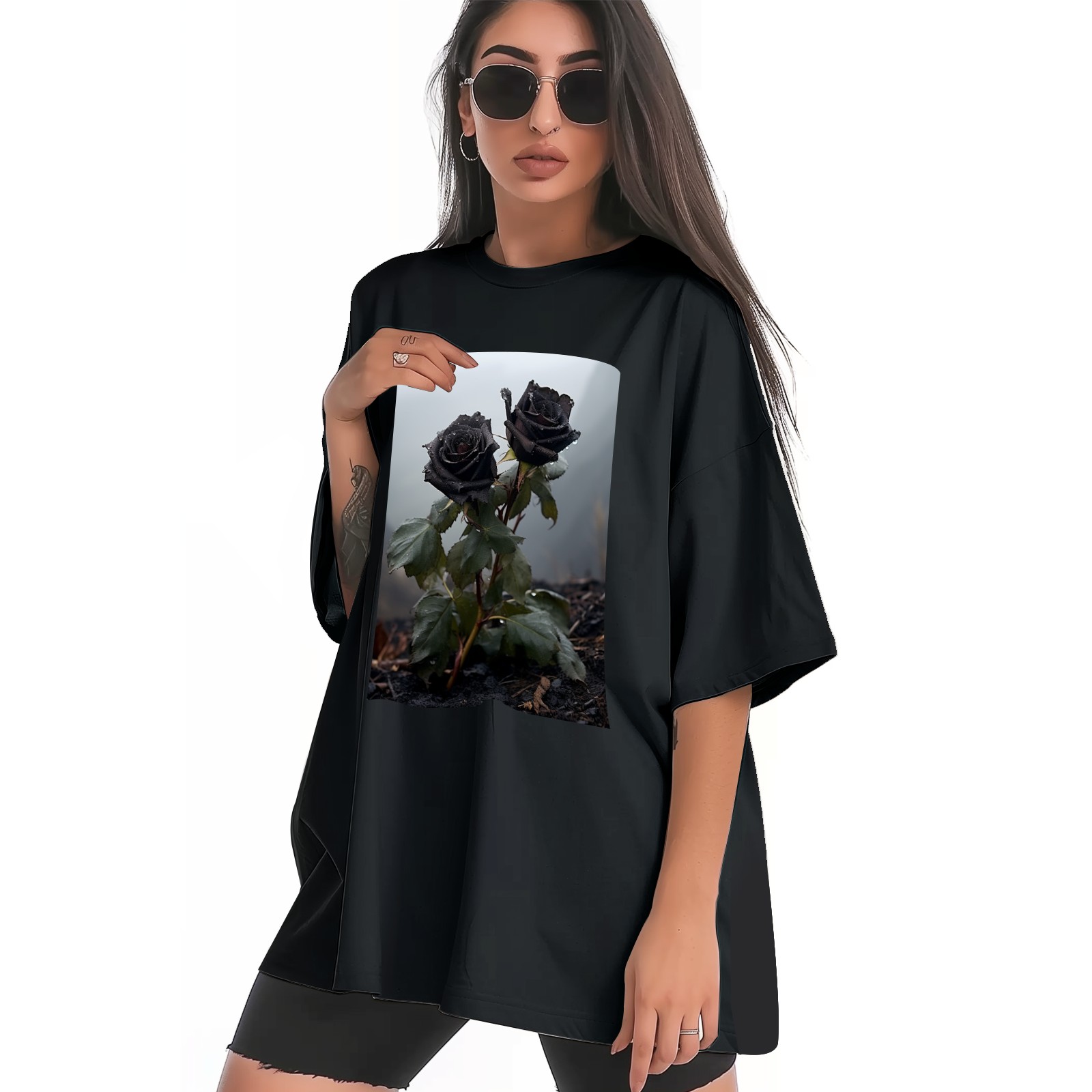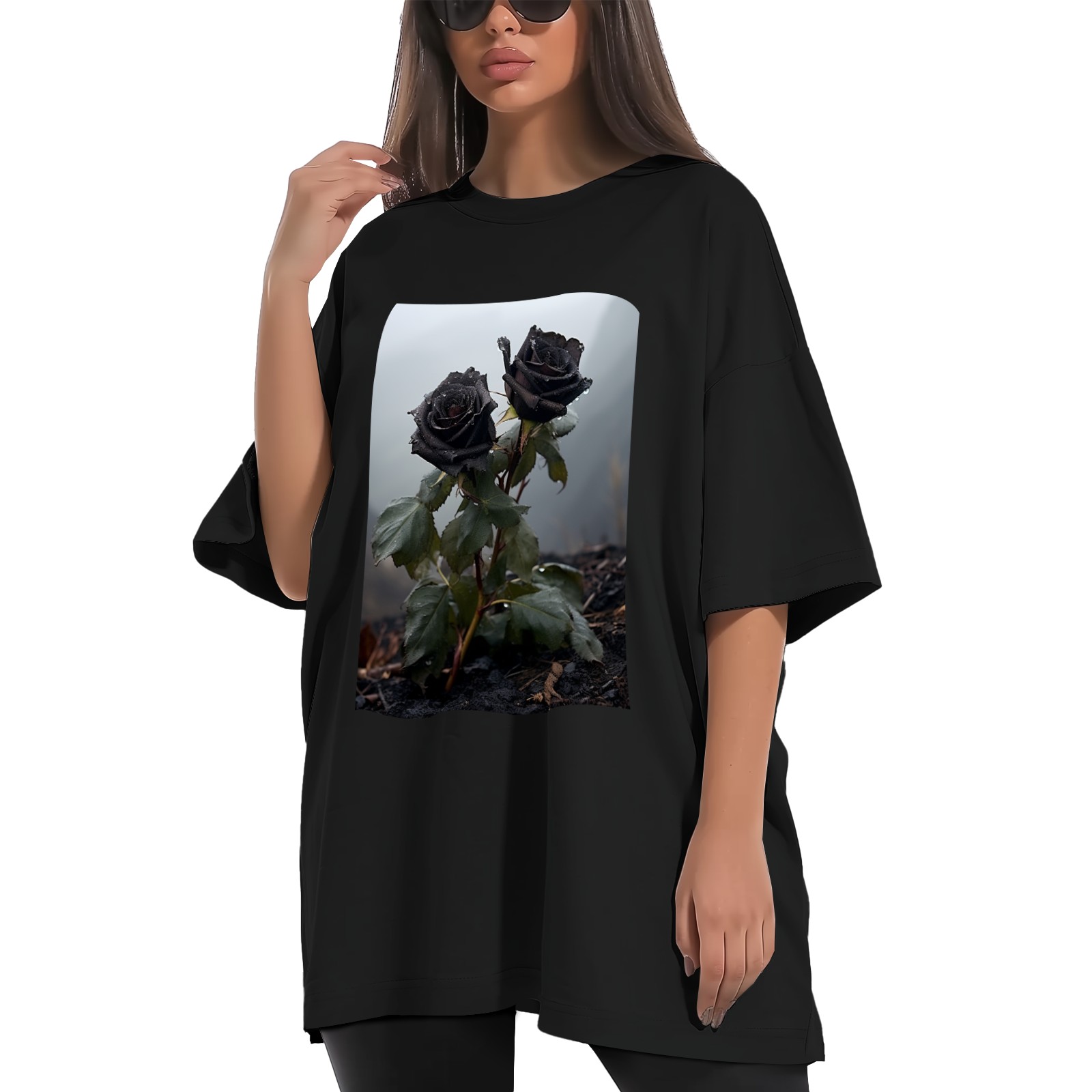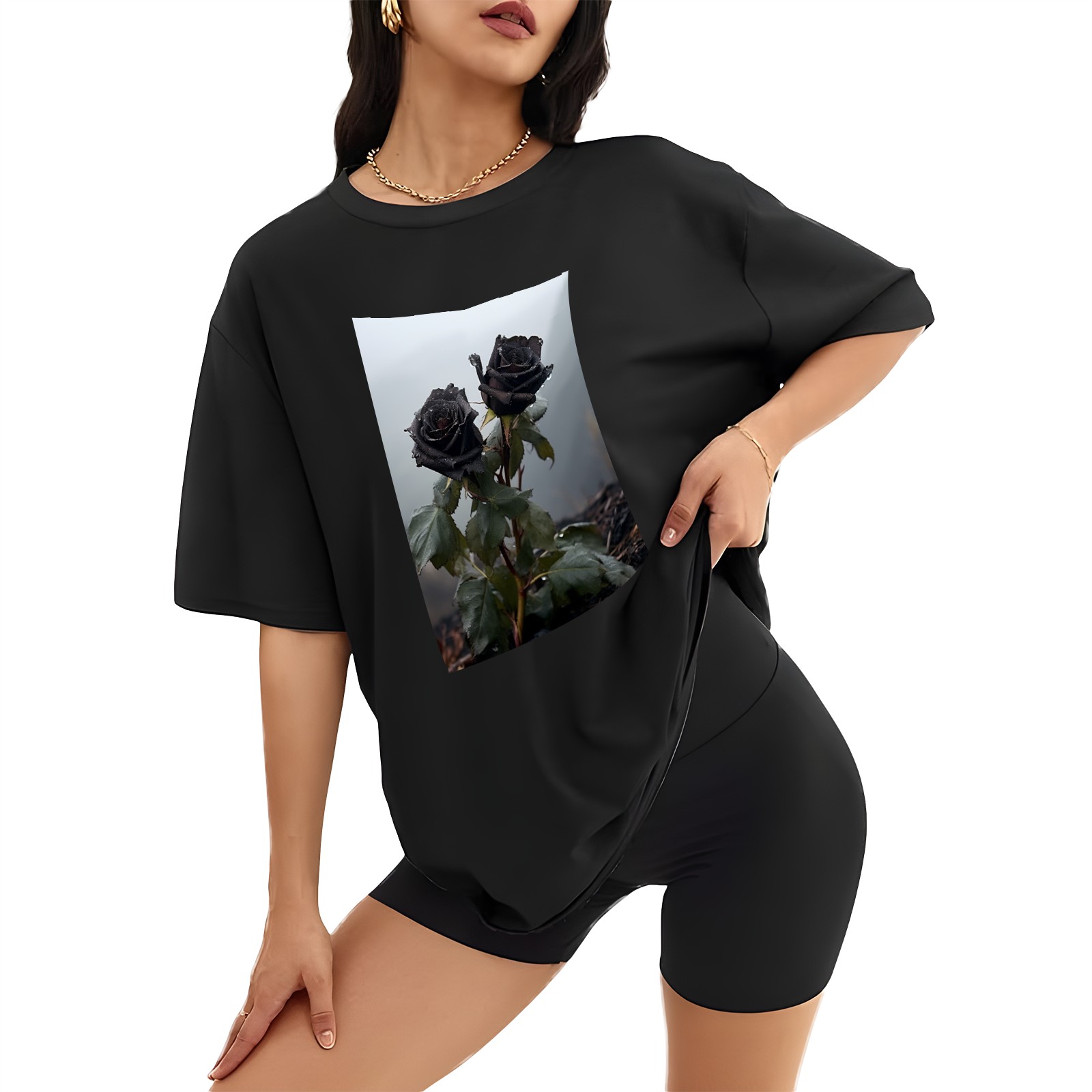 Plus Size Shirt for Women Black Tops for Women Short Sleeves Shirt for Women Roses (8) T Shirt Crewneck Shirt for Women XS