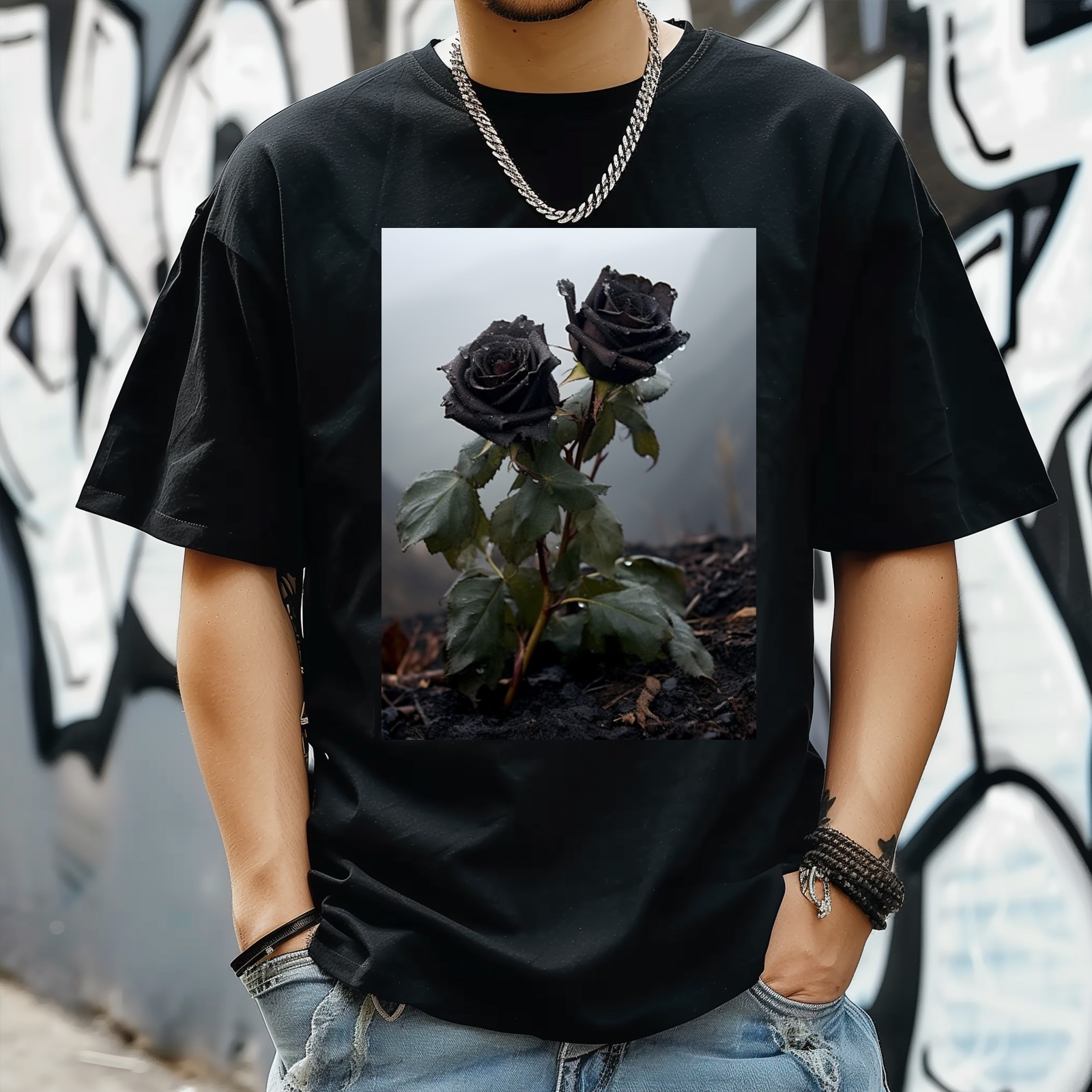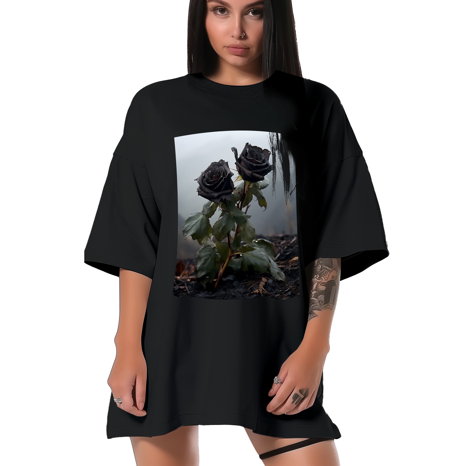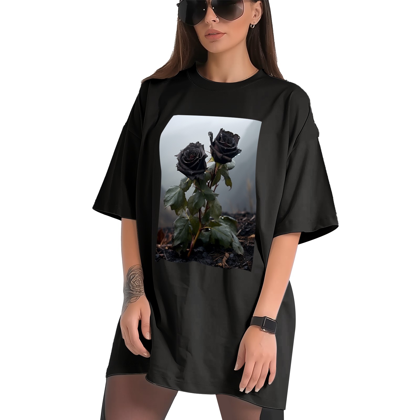 Plus Size Shirt for Women Black Tops for Women Short Sleeves Shirt for Women Roses (8) T Shirt Crewneck Shirt for Women XS