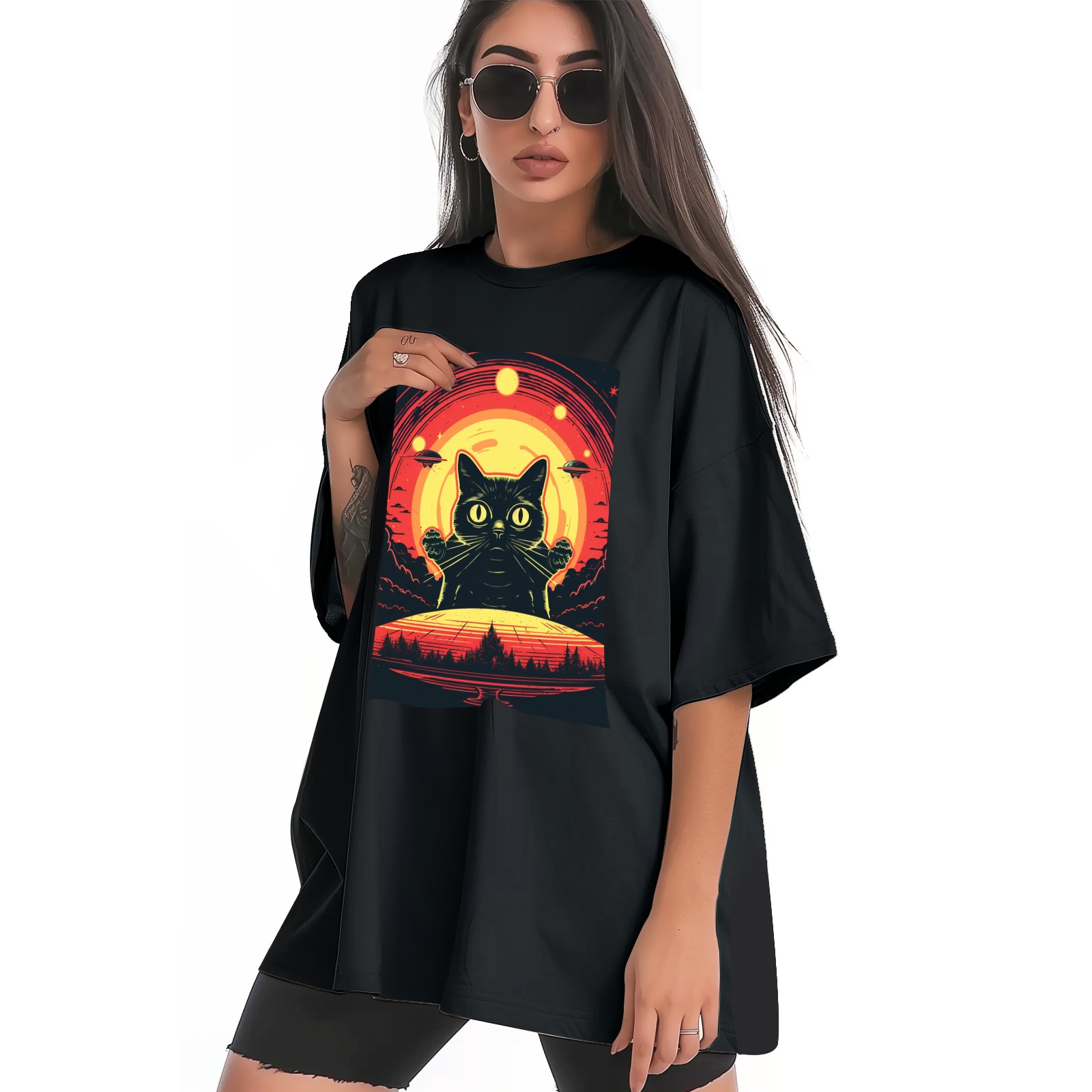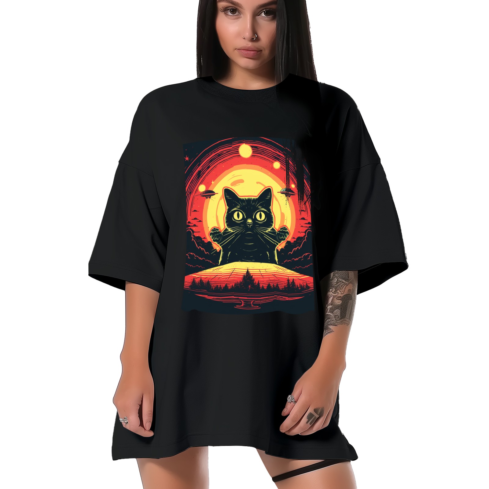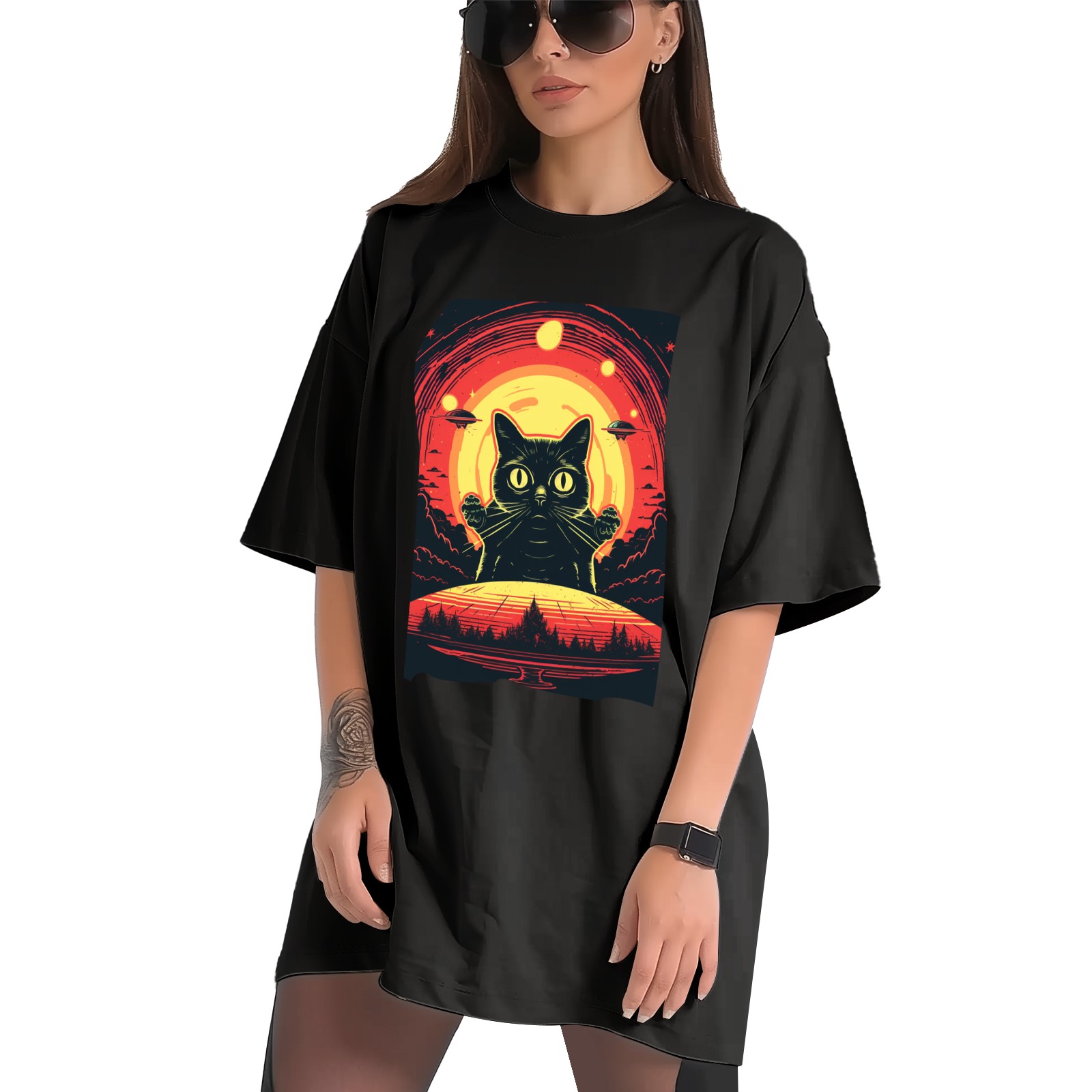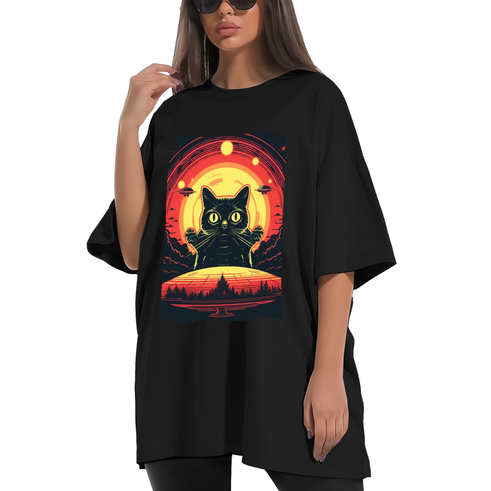 Plus Size Shirt for Women Black Tops for Women Short Sleeves Shirt for Women Retro Black Cat (31) T Shirt Crewneck Shirt for Women XS