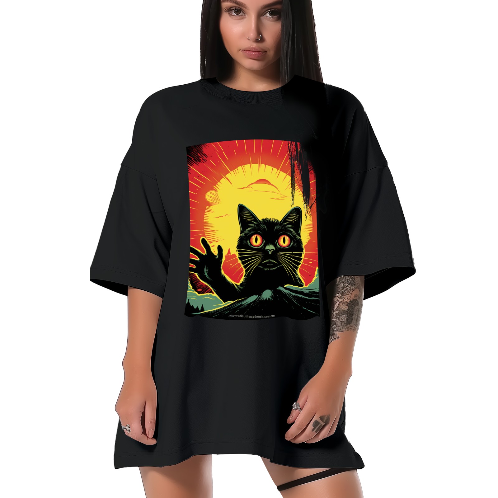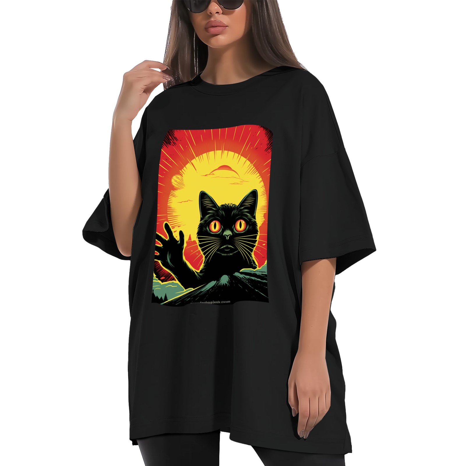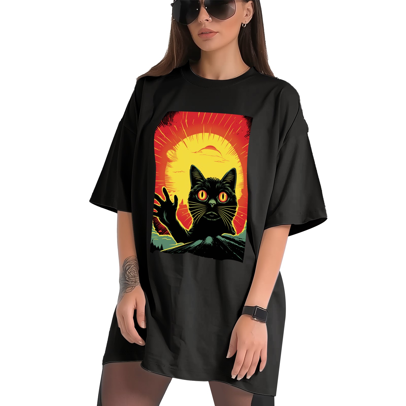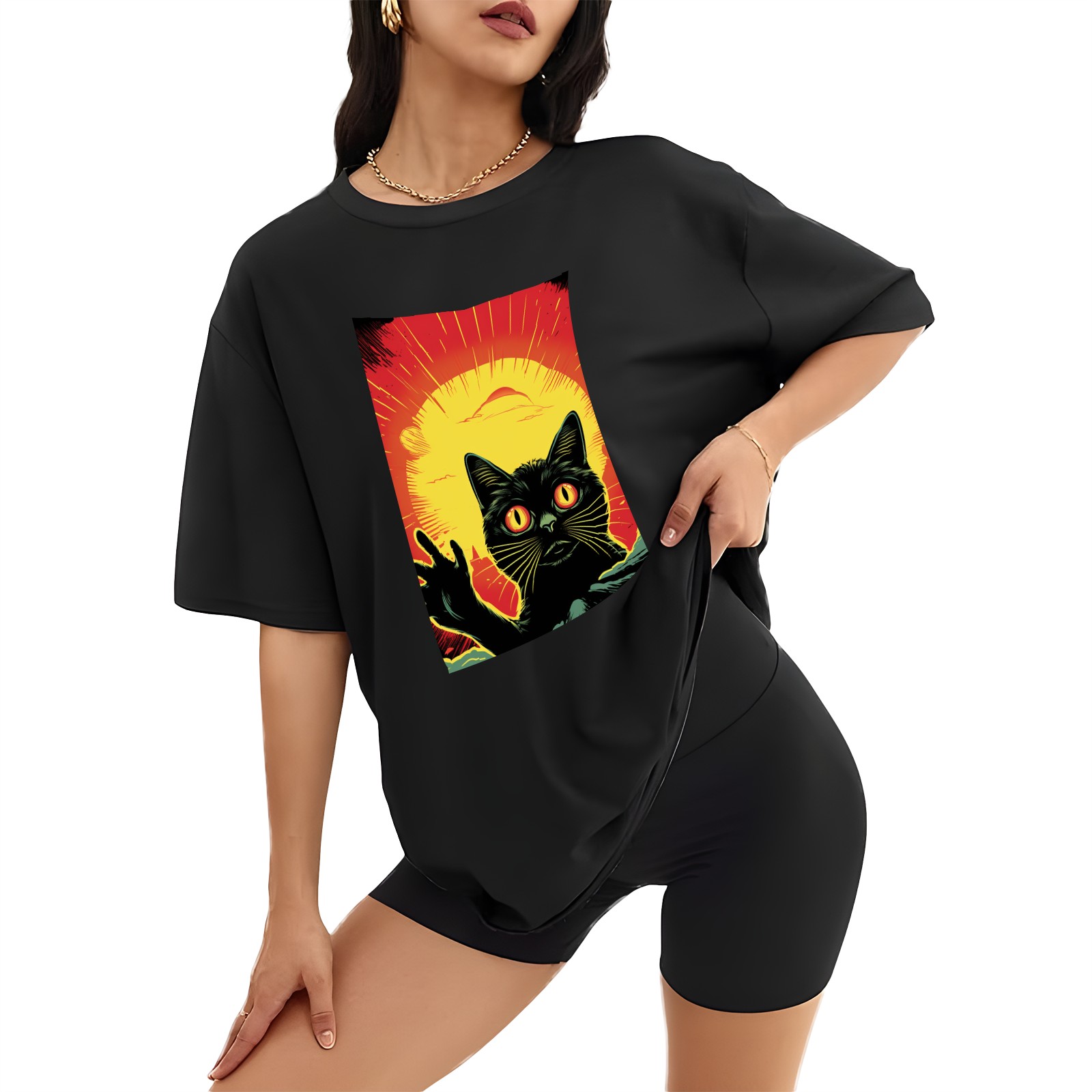 Plus Size Shirt for Women Black Tops for Women Short Sleeves Shirt for Women Retro Black Cat (32) T Shirt Crewneck Shirt for Women XS