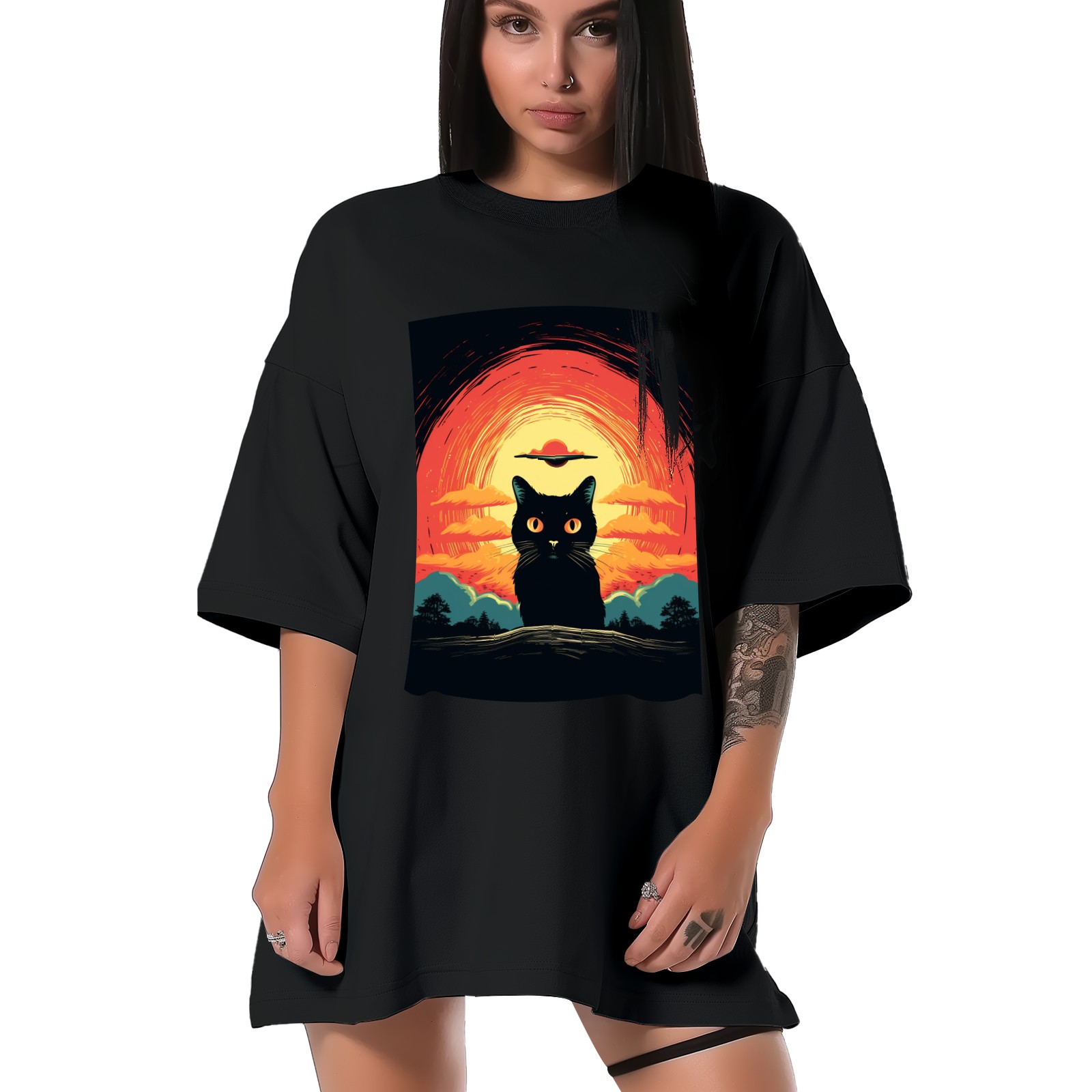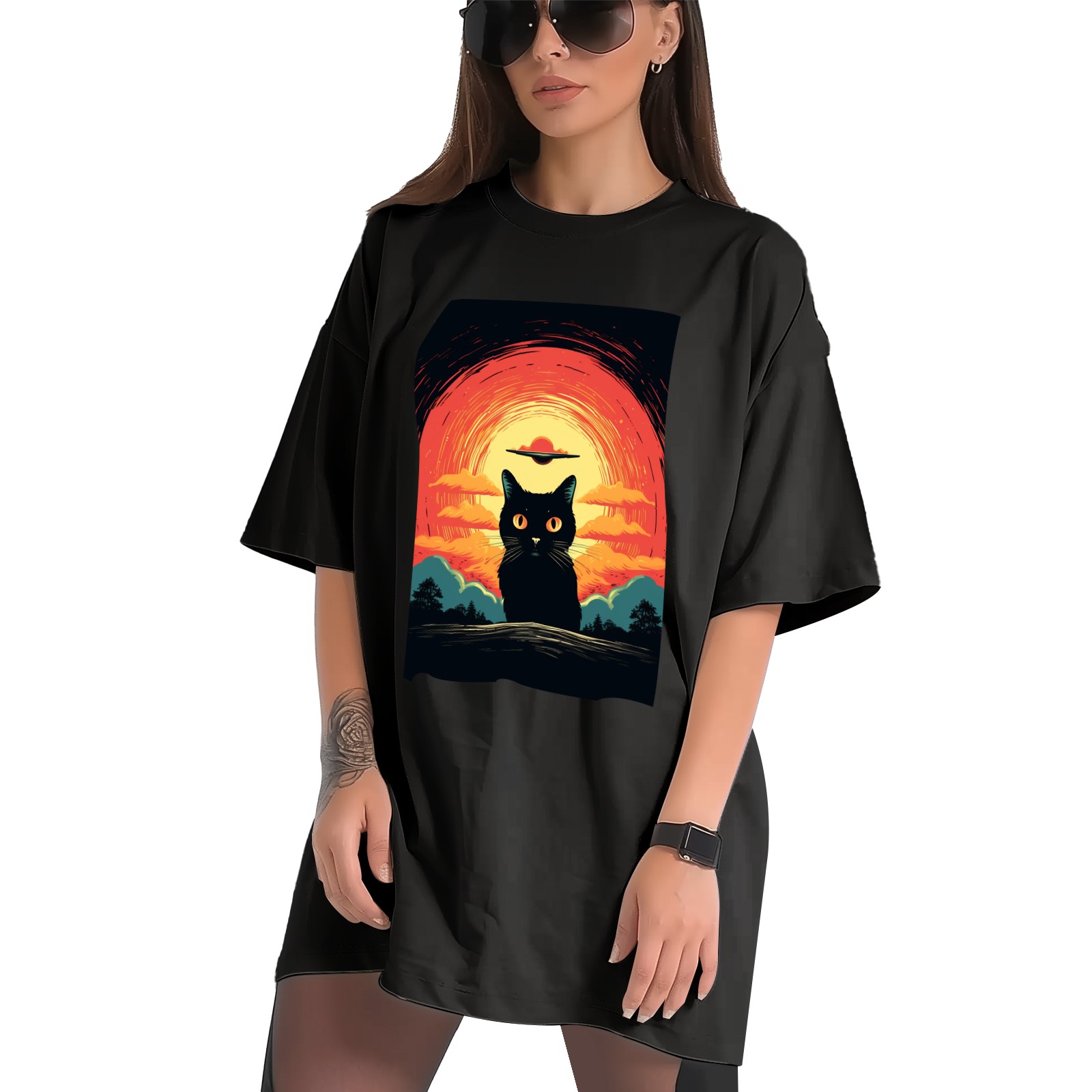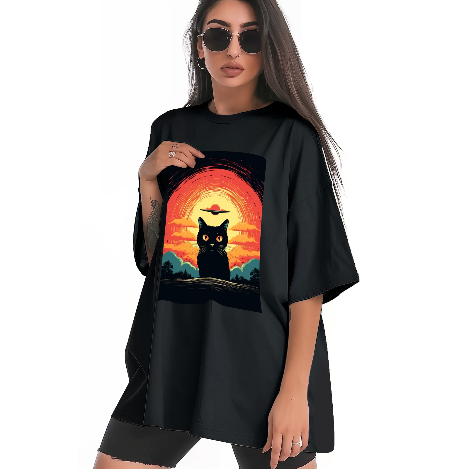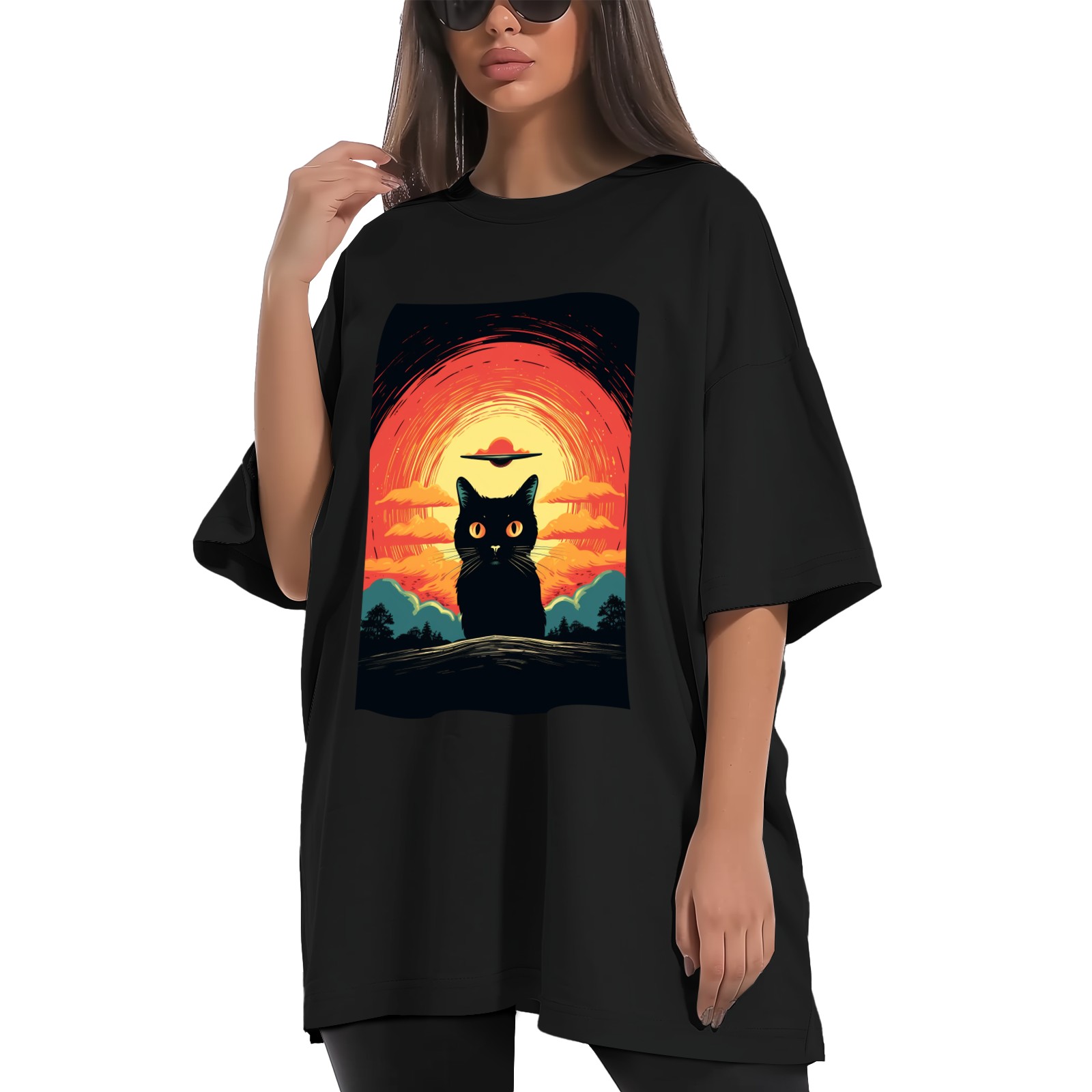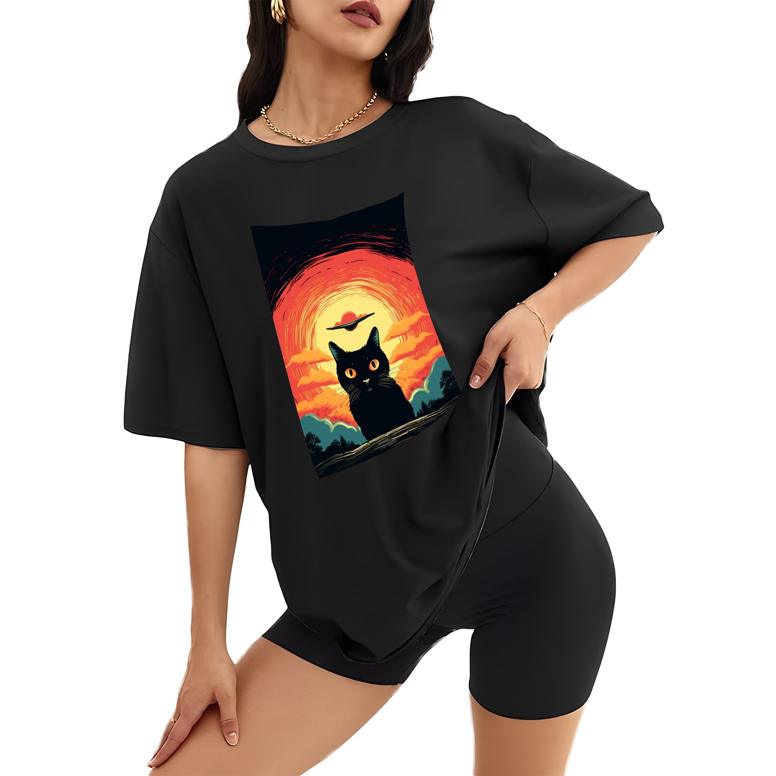 Plus Size Shirt for Women Black Tops for Women Short Sleeves Shirt for Women Retro Black Cat (28) T Shirt Crewneck Shirt for Women XS