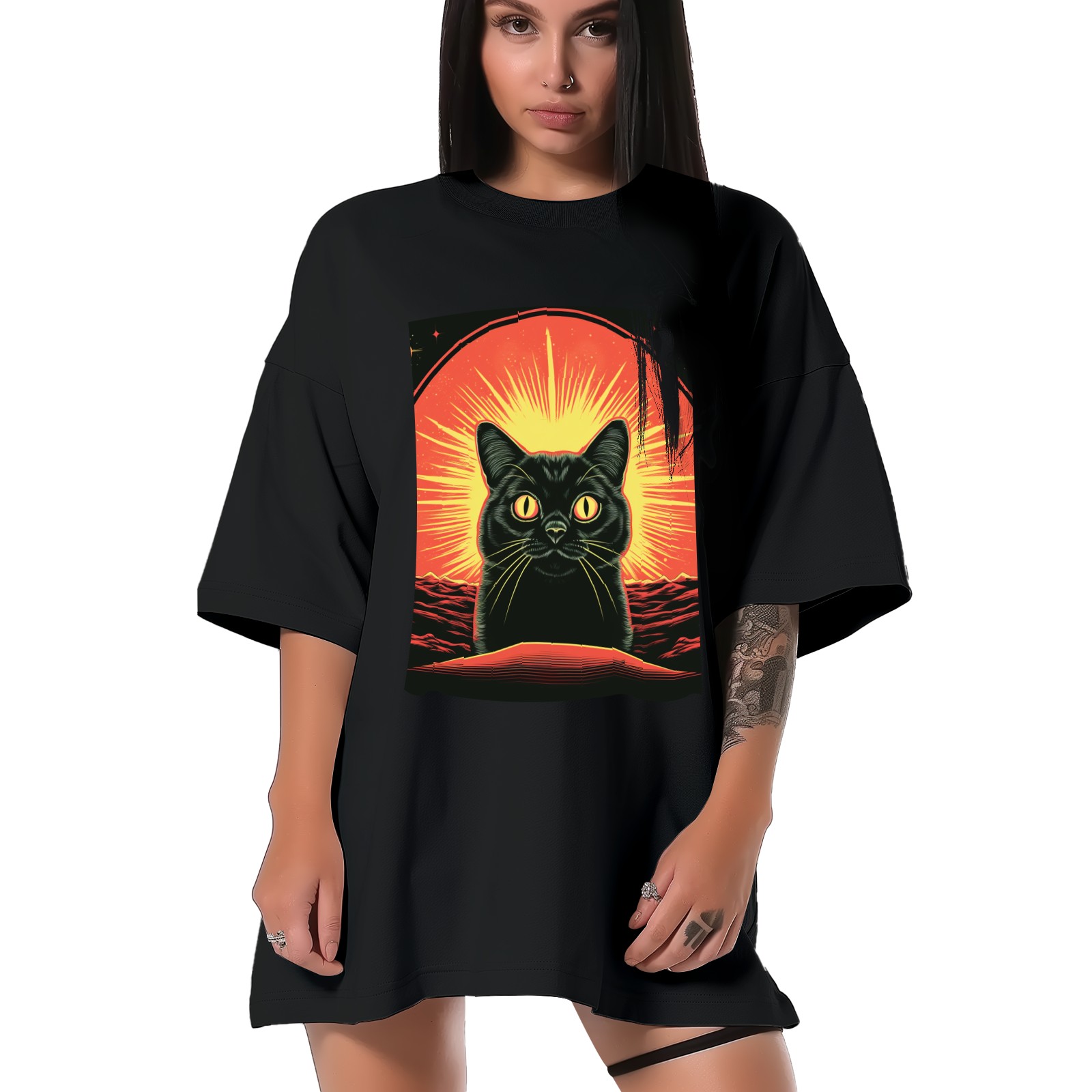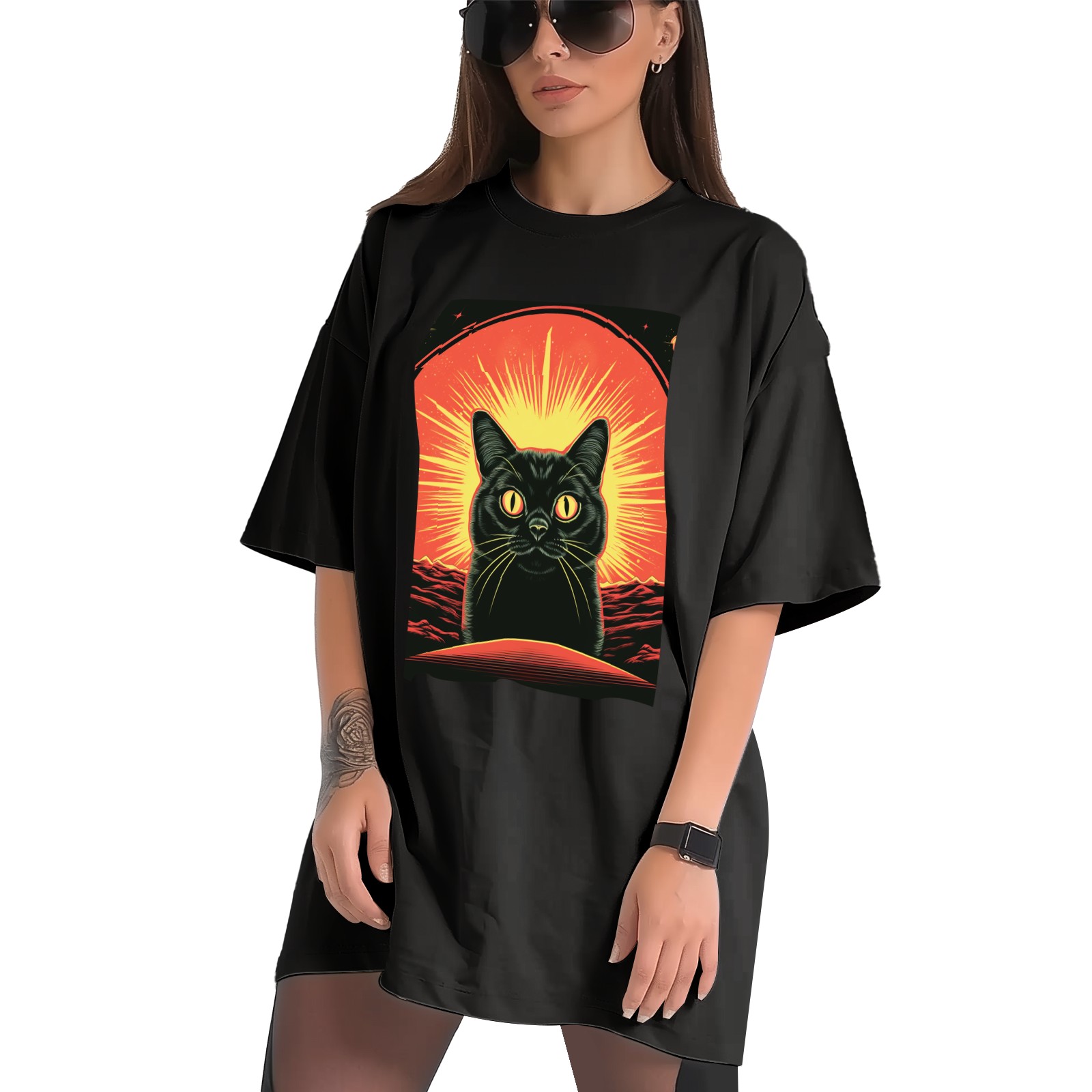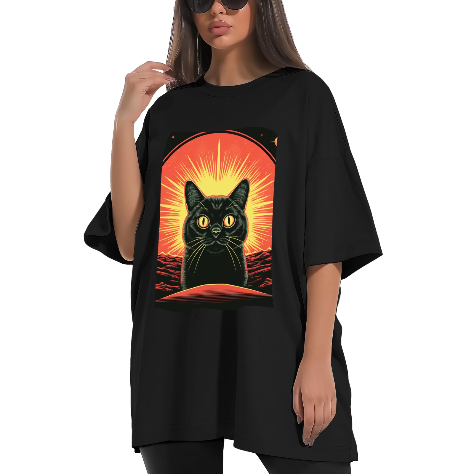 Plus Size Shirt for Women Black Tops for Women Short Sleeves Shirt for Women Retro Black Cat (23) T Shirt Crewneck Shirt for Women XS